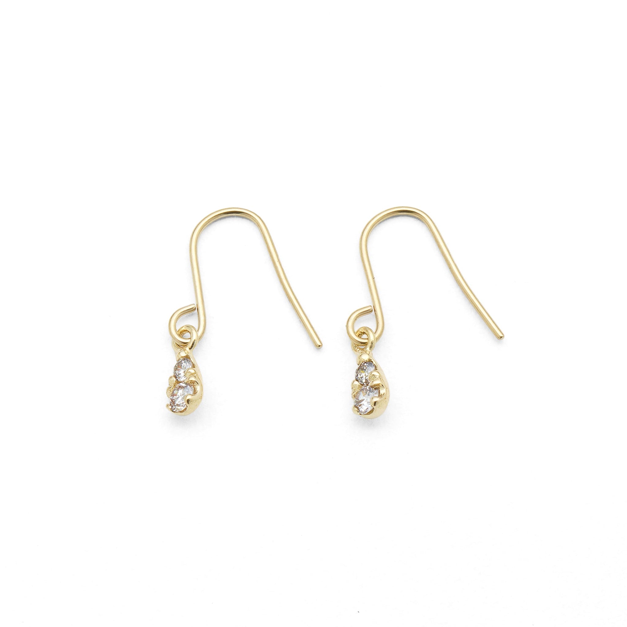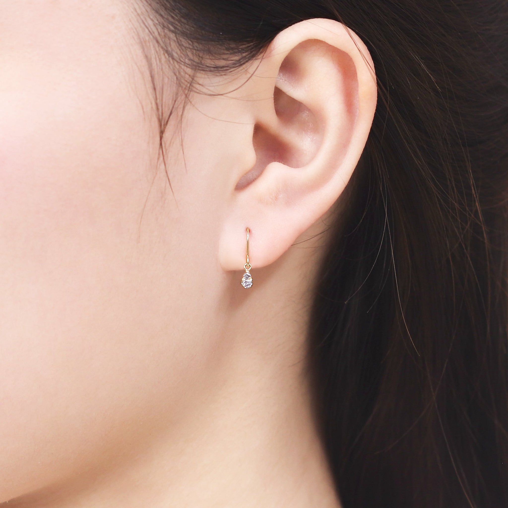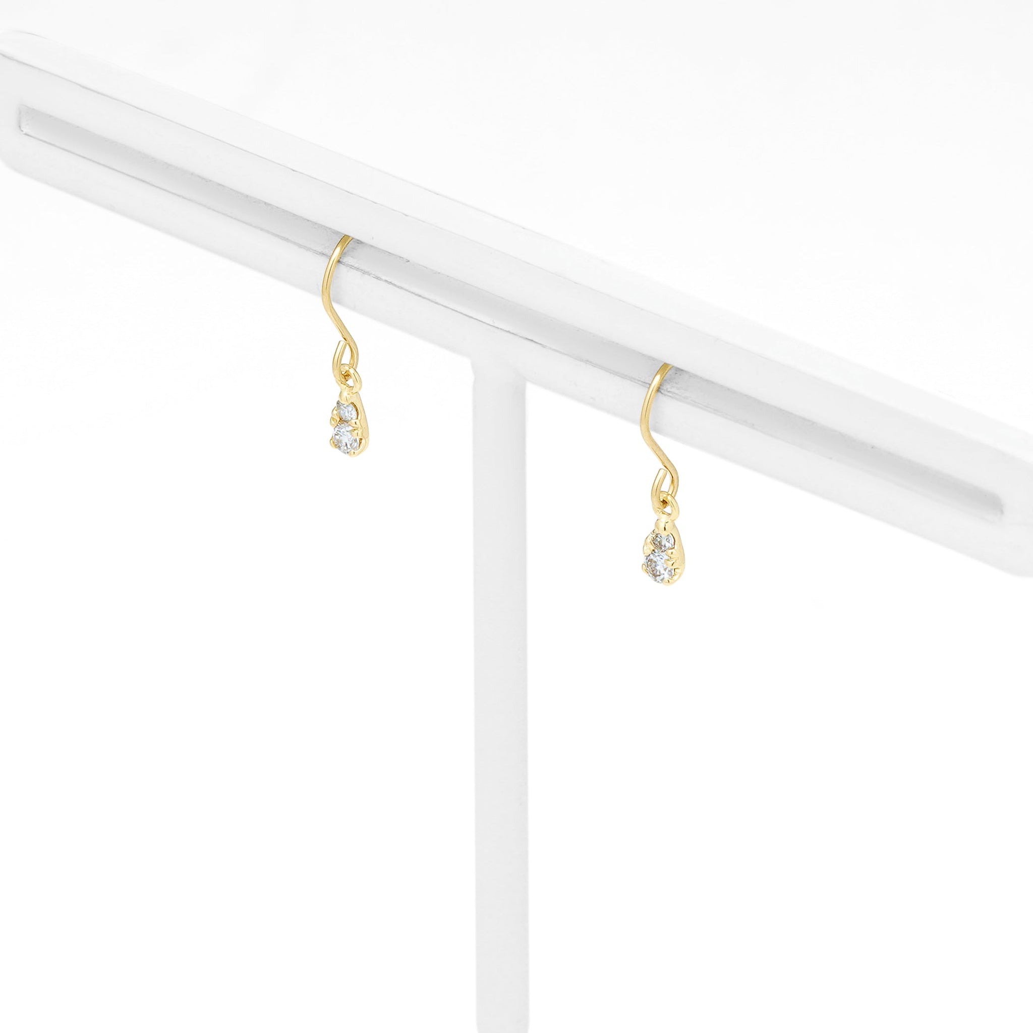 しずくモチーフでダイヤモンドがきらめくイエローゴールドのフックピアス。