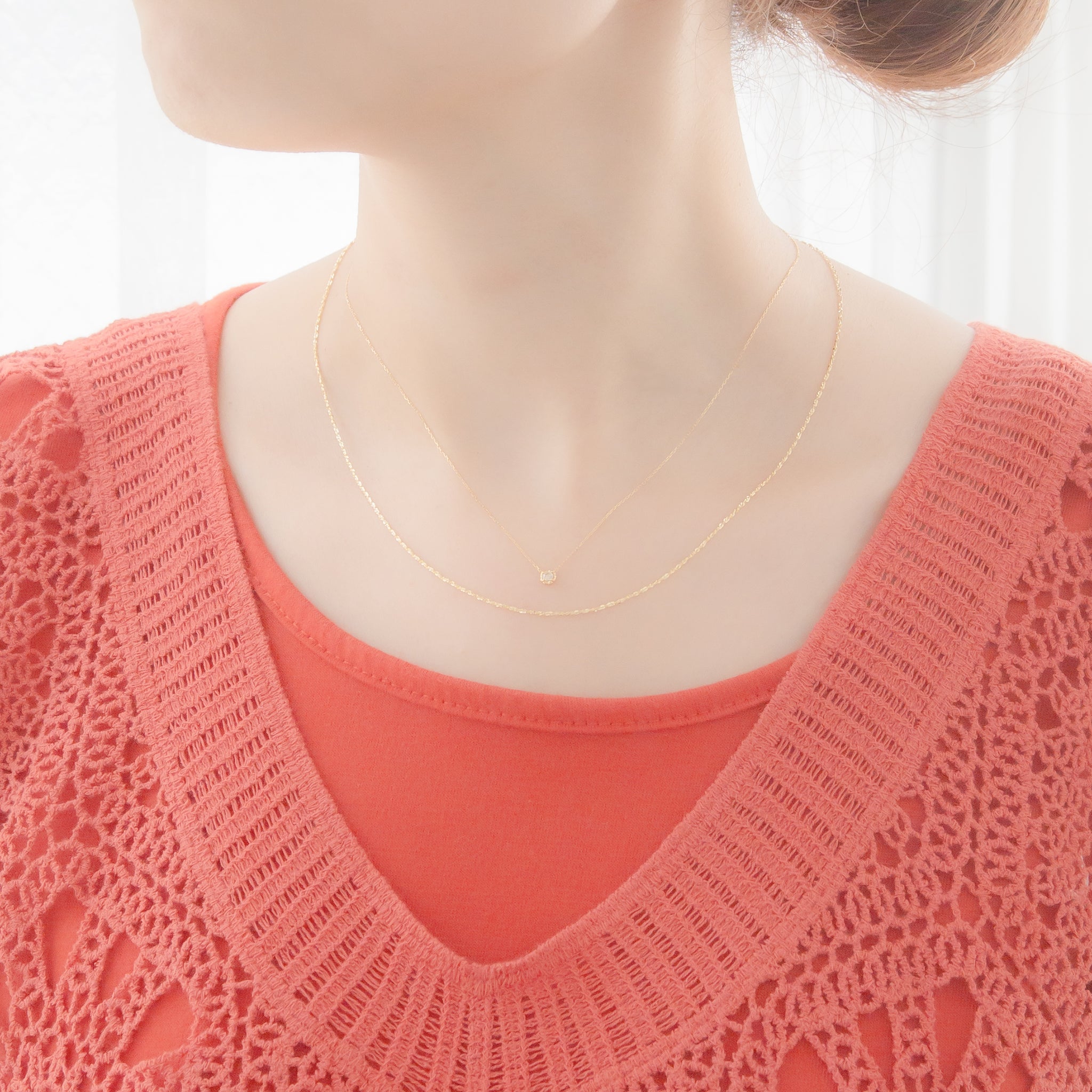 アレンジのしやすいシンプルなイエローゴールドのネックレスは、様々なシーンで活躍してくれそうです。