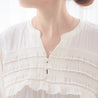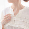 イエローゴールドのクラリスチェーンが華やかなアクセントになり、お顔周りを明るい印象に。