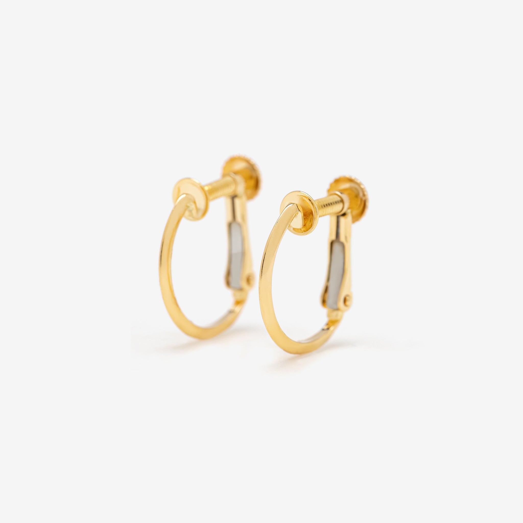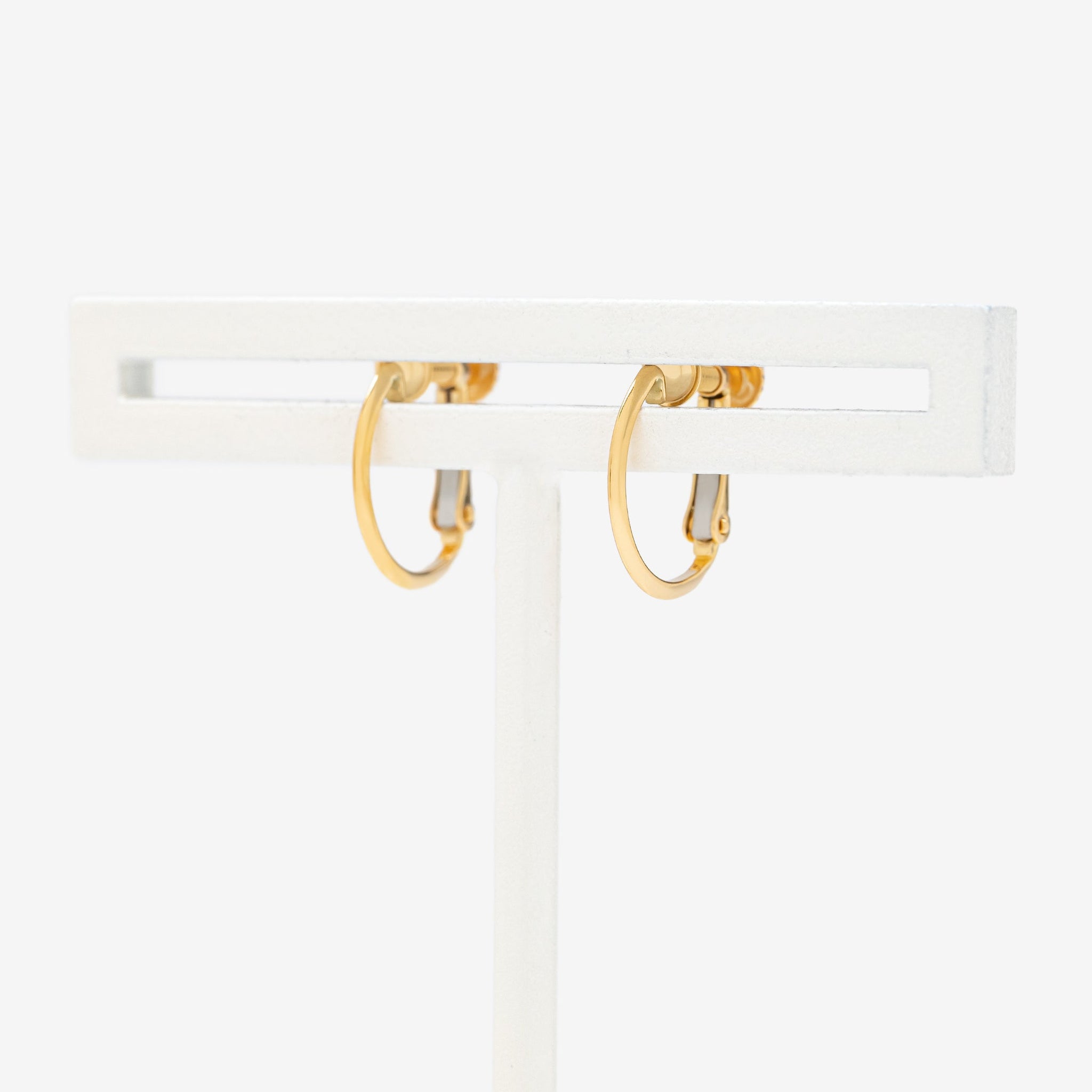 艶やかなイエローゴールドが輝く、シンプルなフープイヤリング。