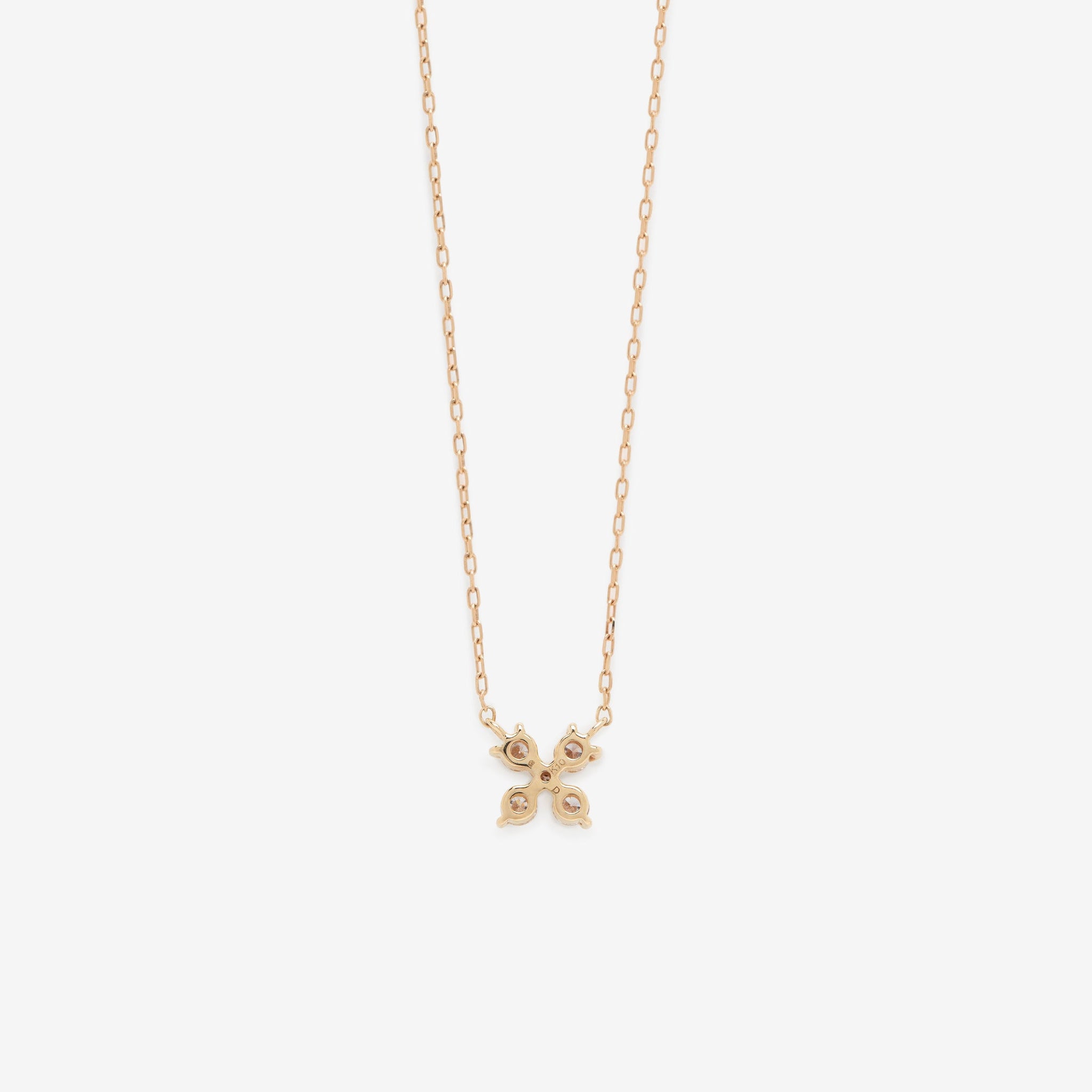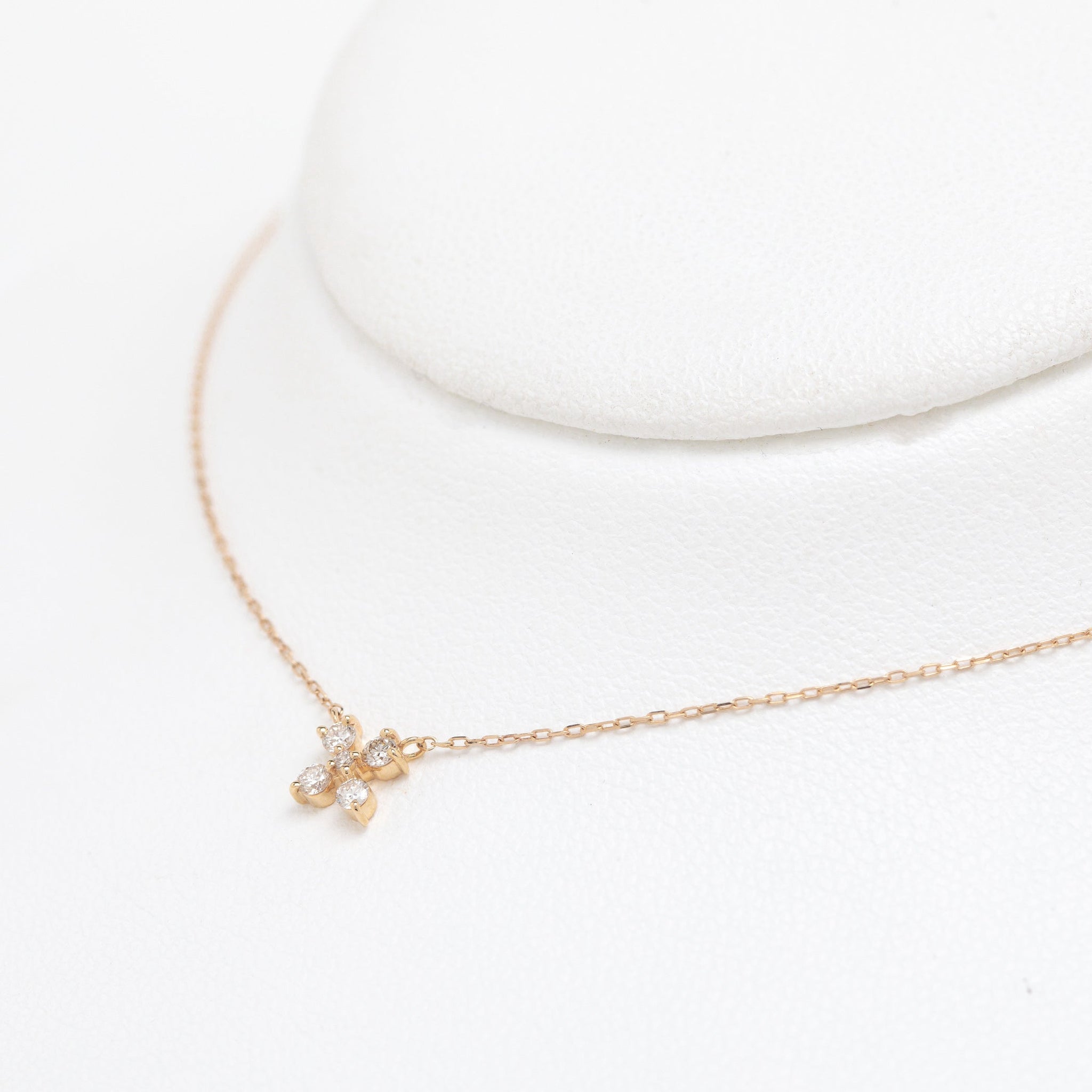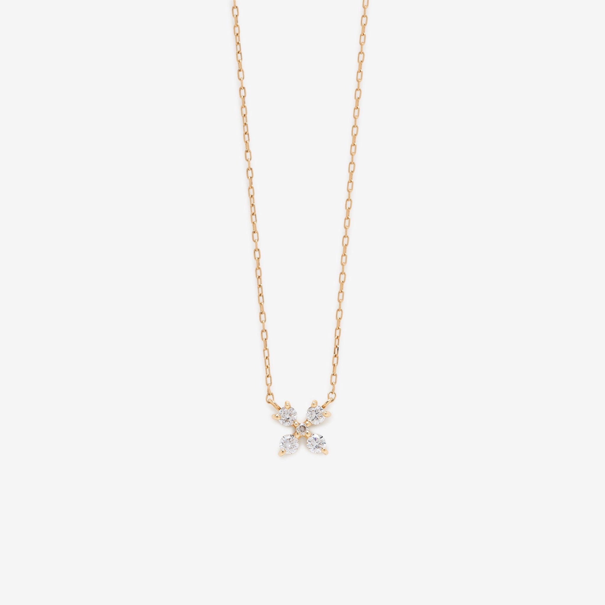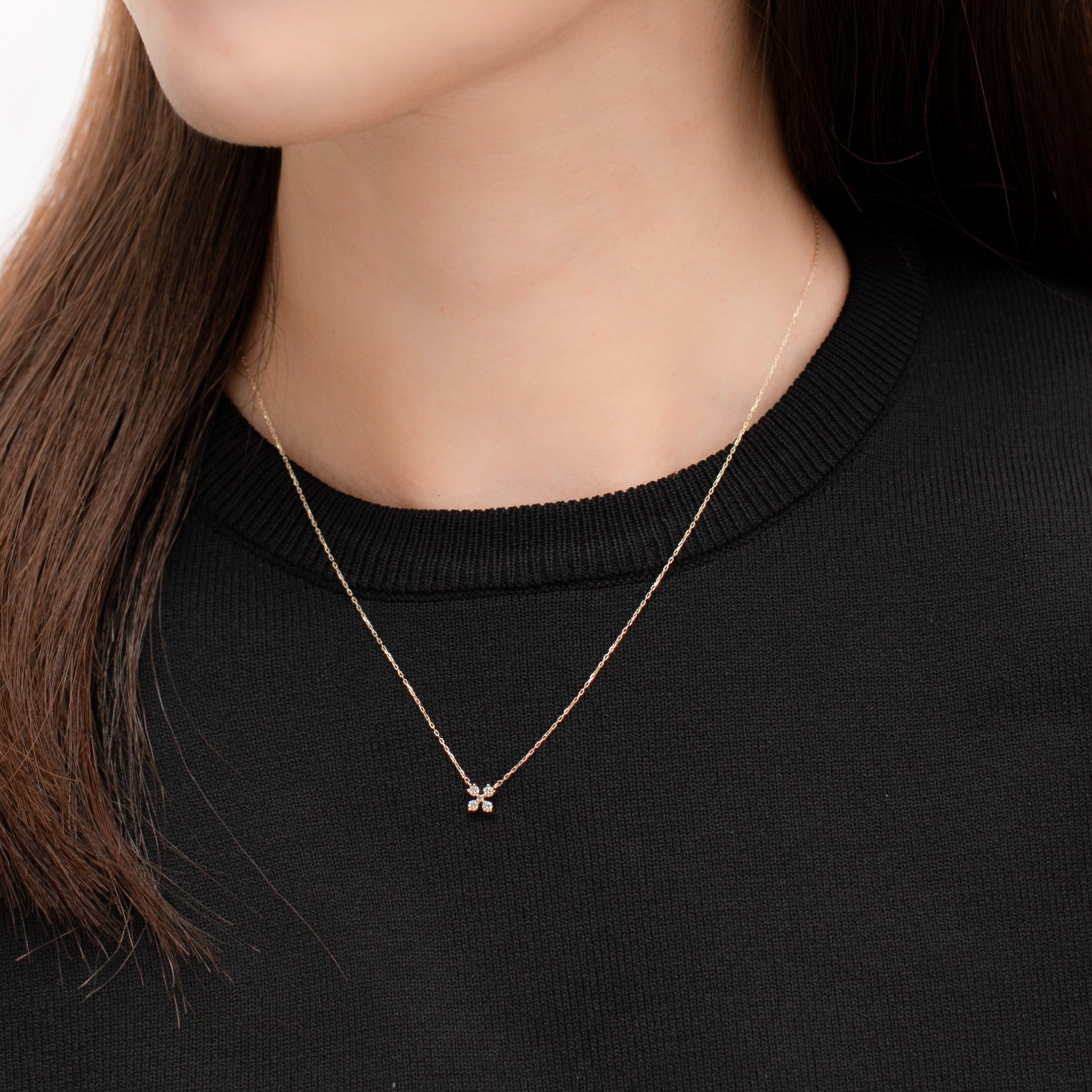 モチーフの中で静かに輝くダイヤモンドが、胸元に上品で繊細な存在感を添えます。
