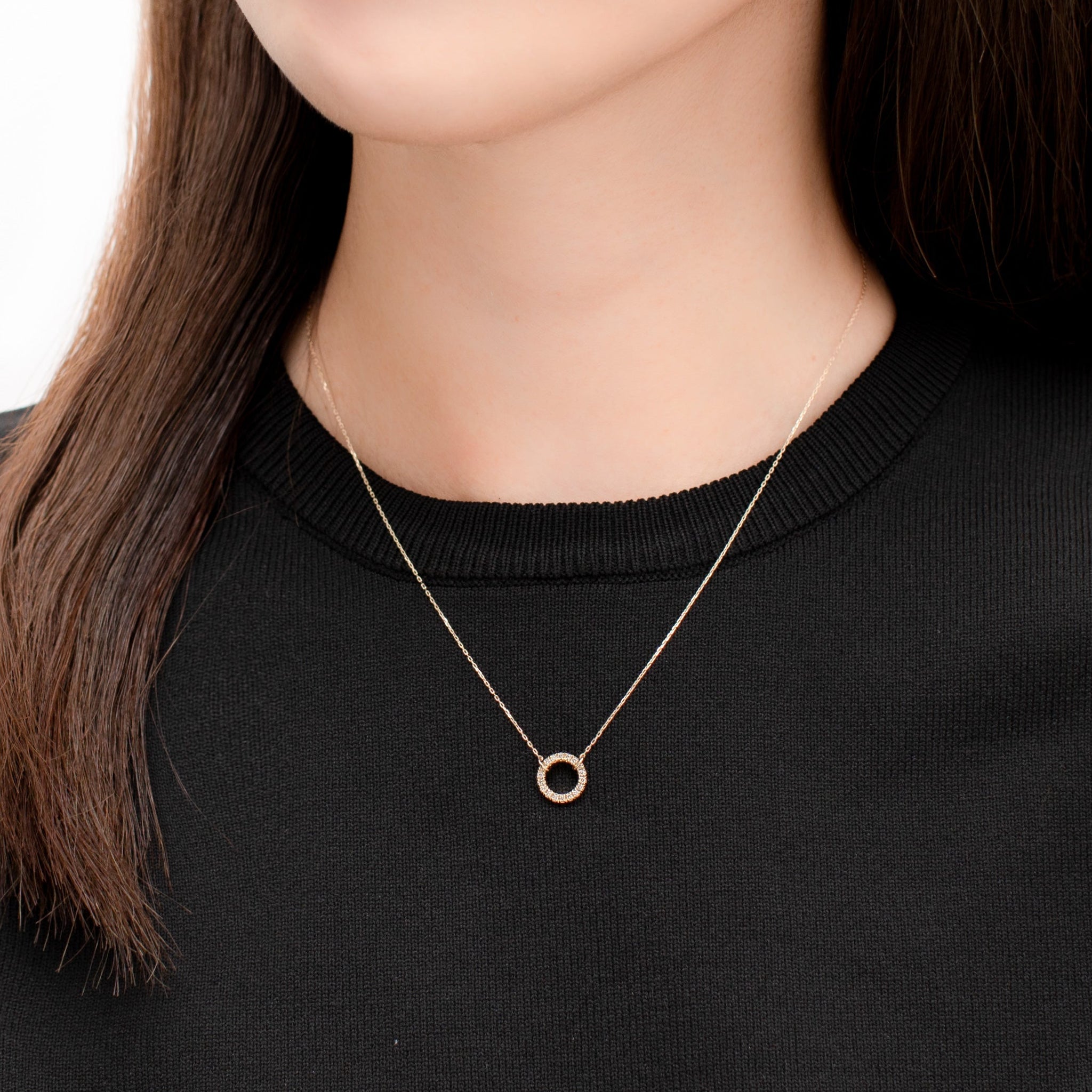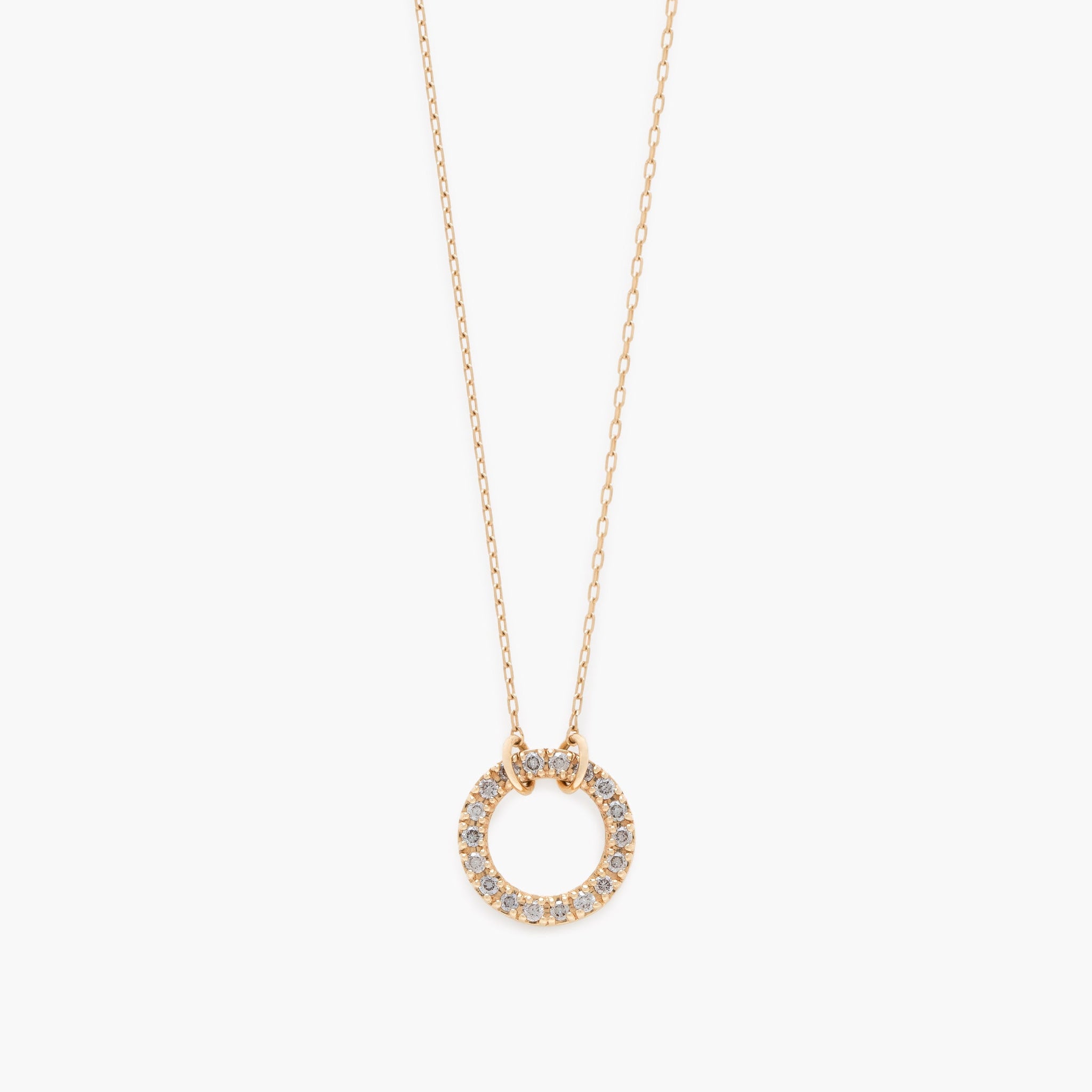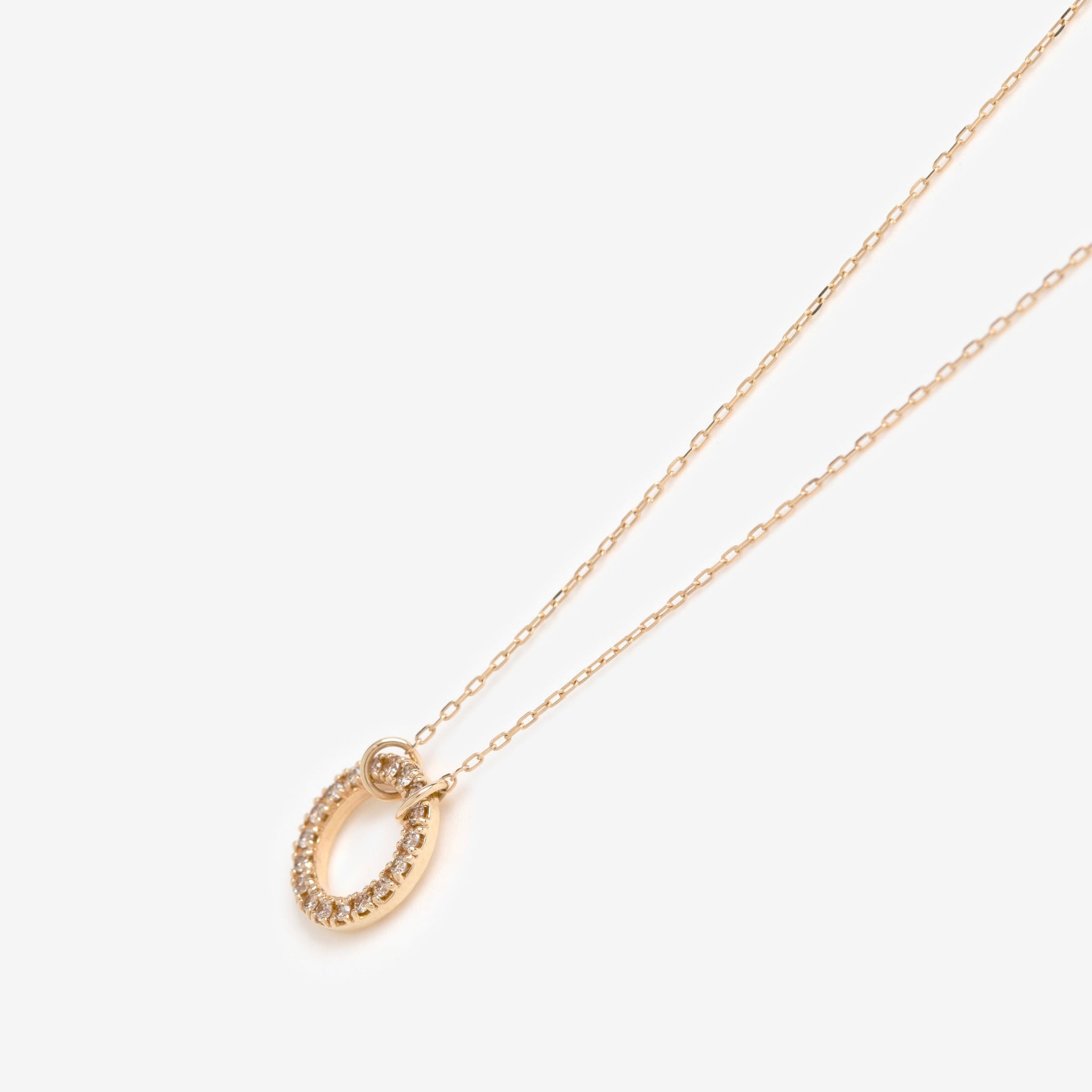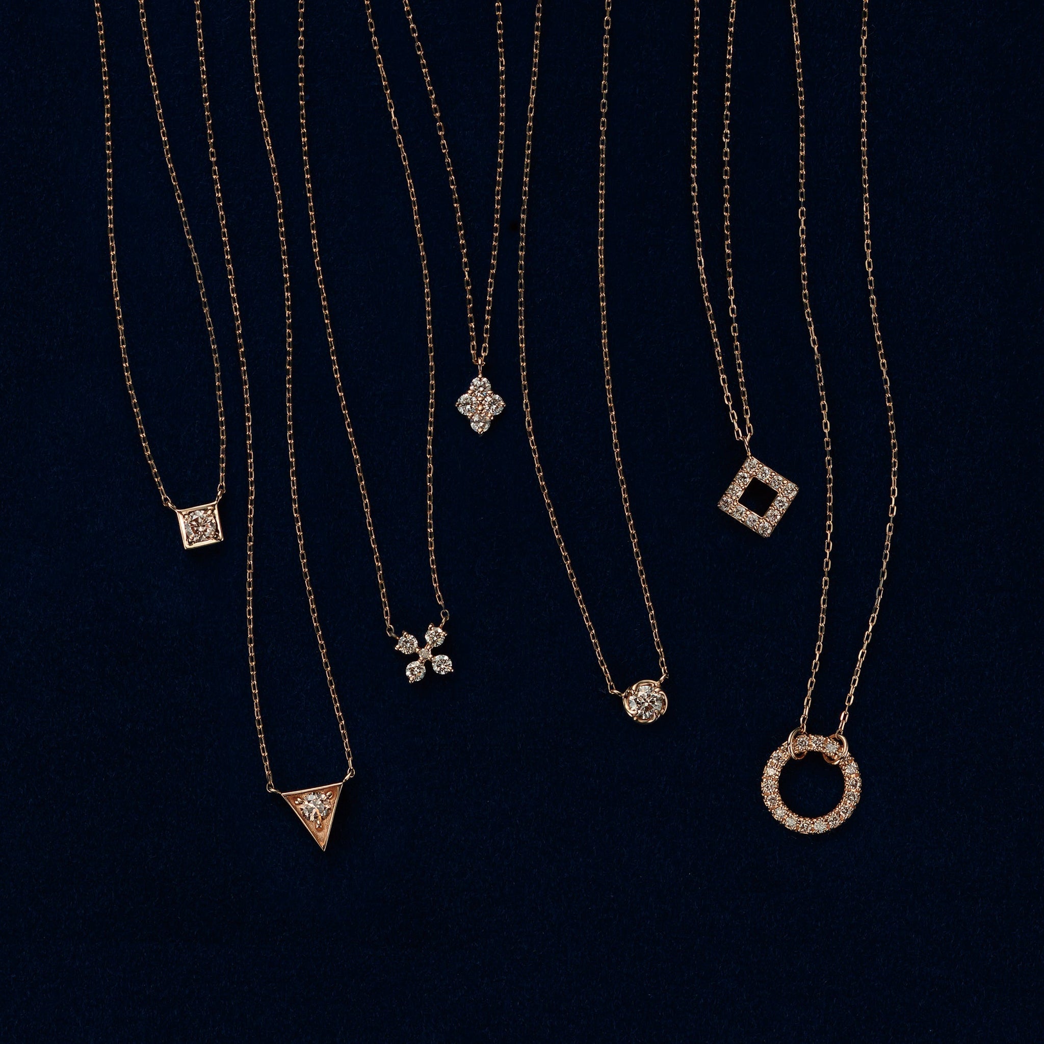 モチーフの中で静かに輝くダイヤモンドが、胸元に上品で繊細な存在感を添えます。