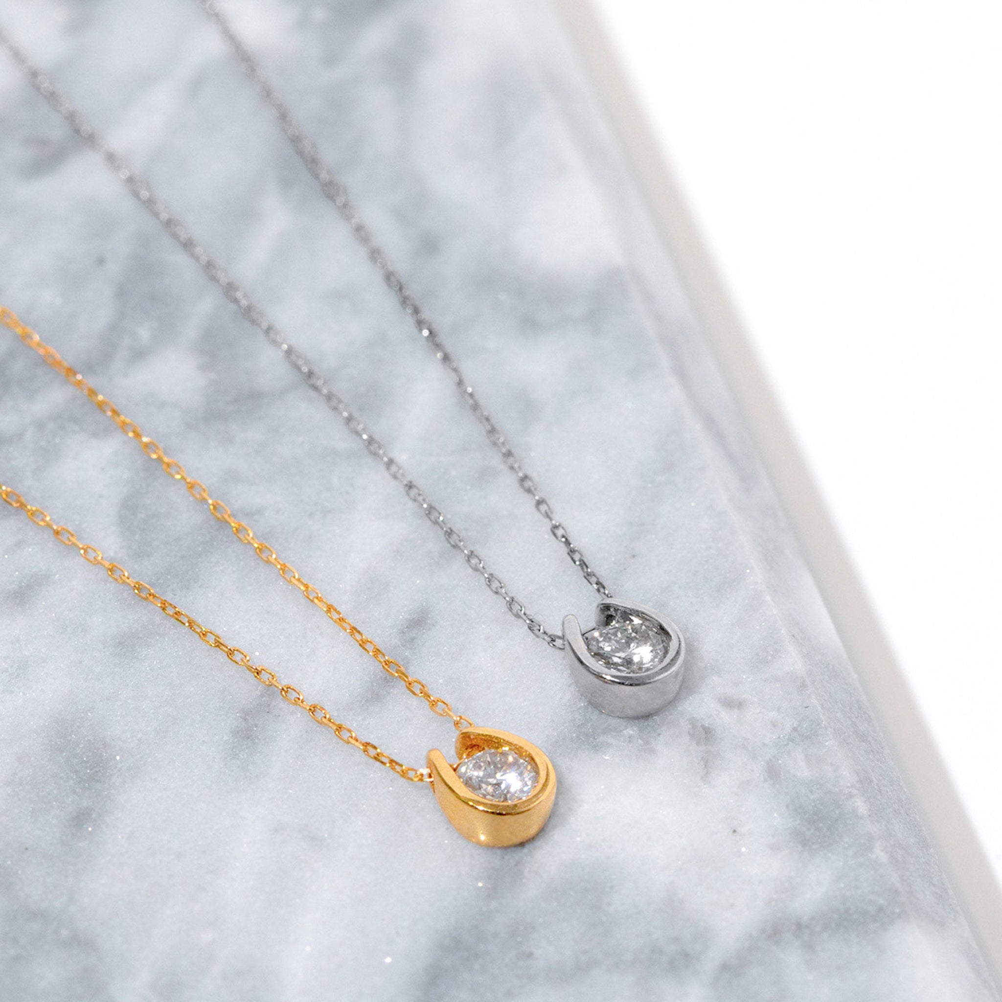 馬蹄モチーフでダイヤモンドが上品に輝くイエローゴールドのネックレス。
