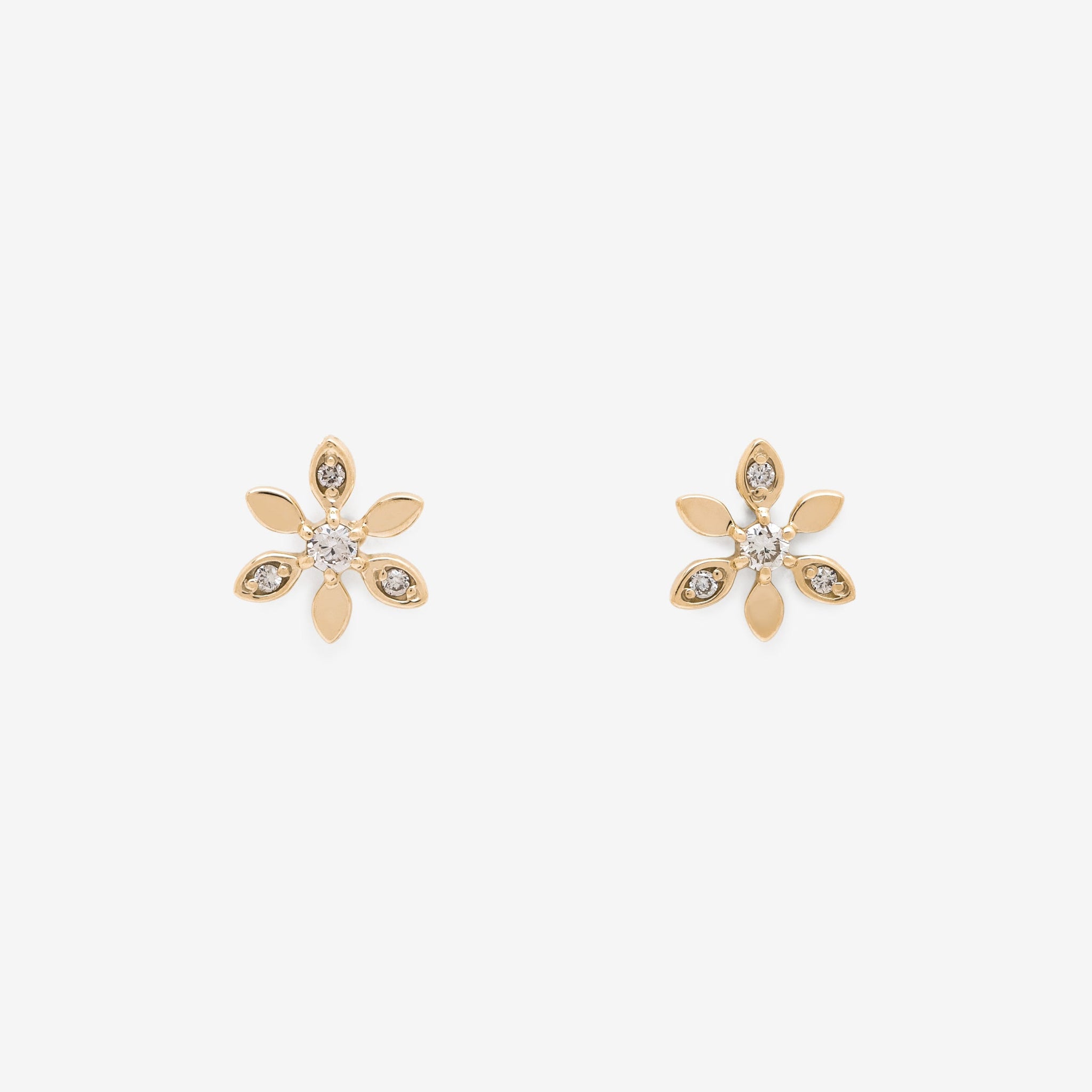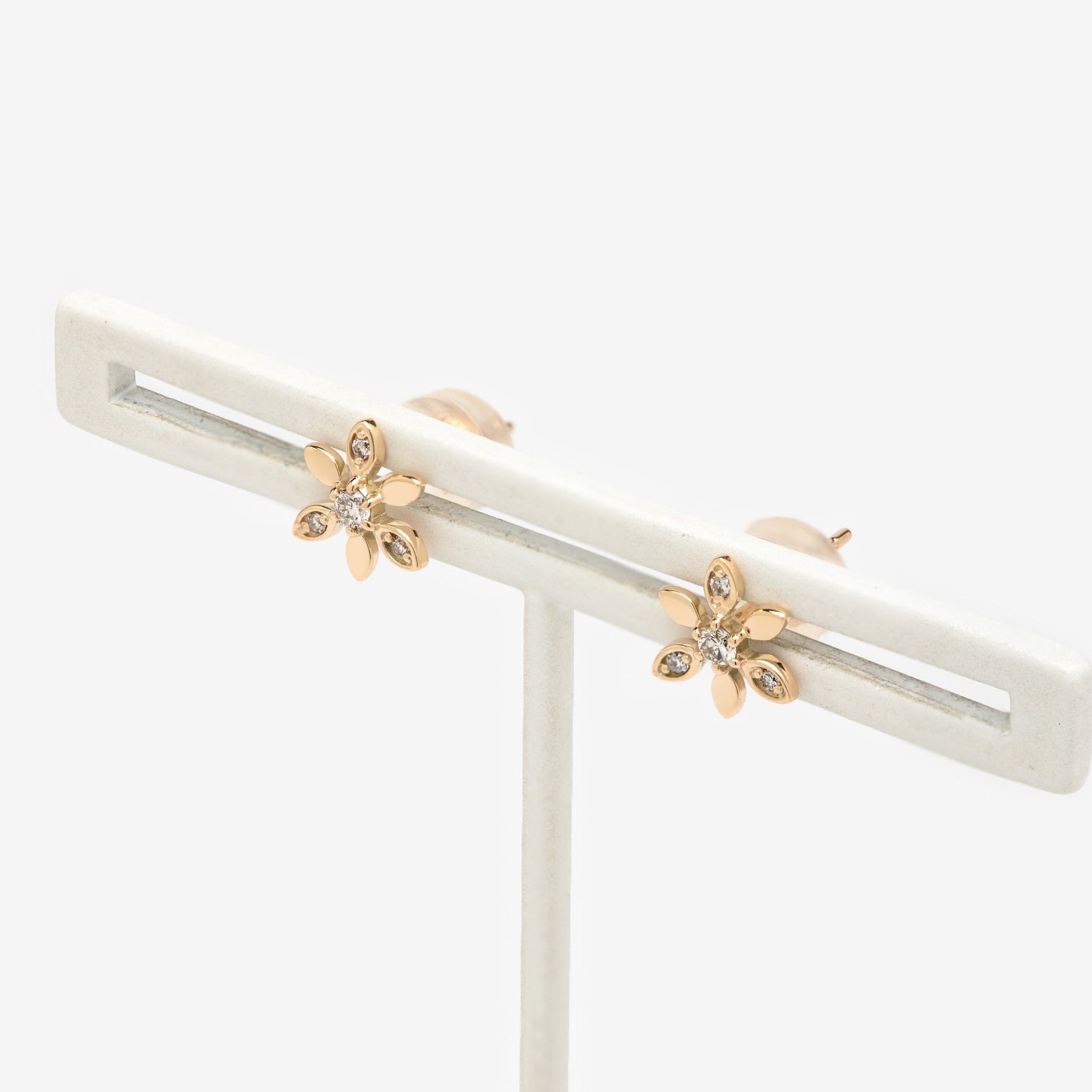 柔らかな光を放つダイヤモンドが印象的な、イエローゴールドのピアス。