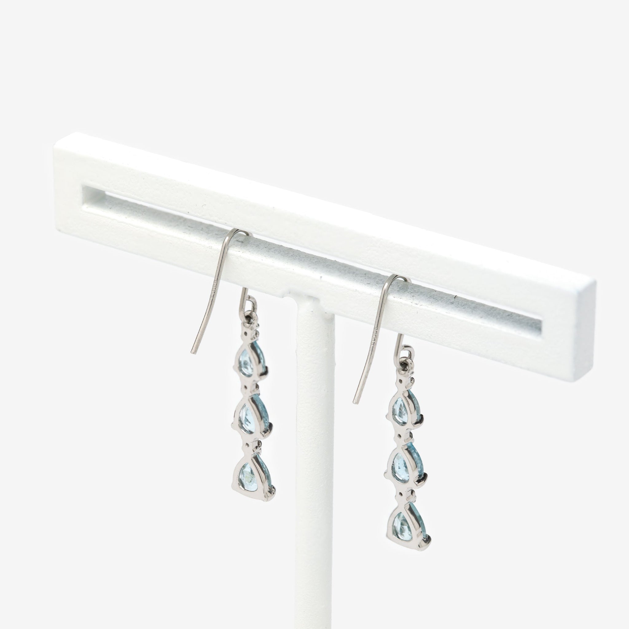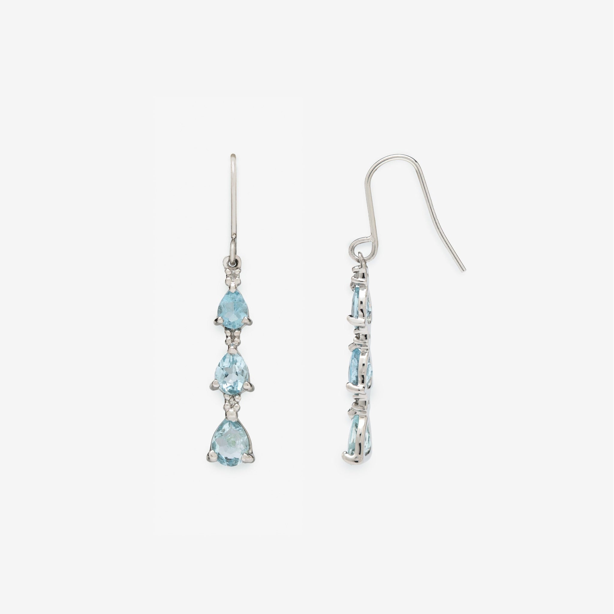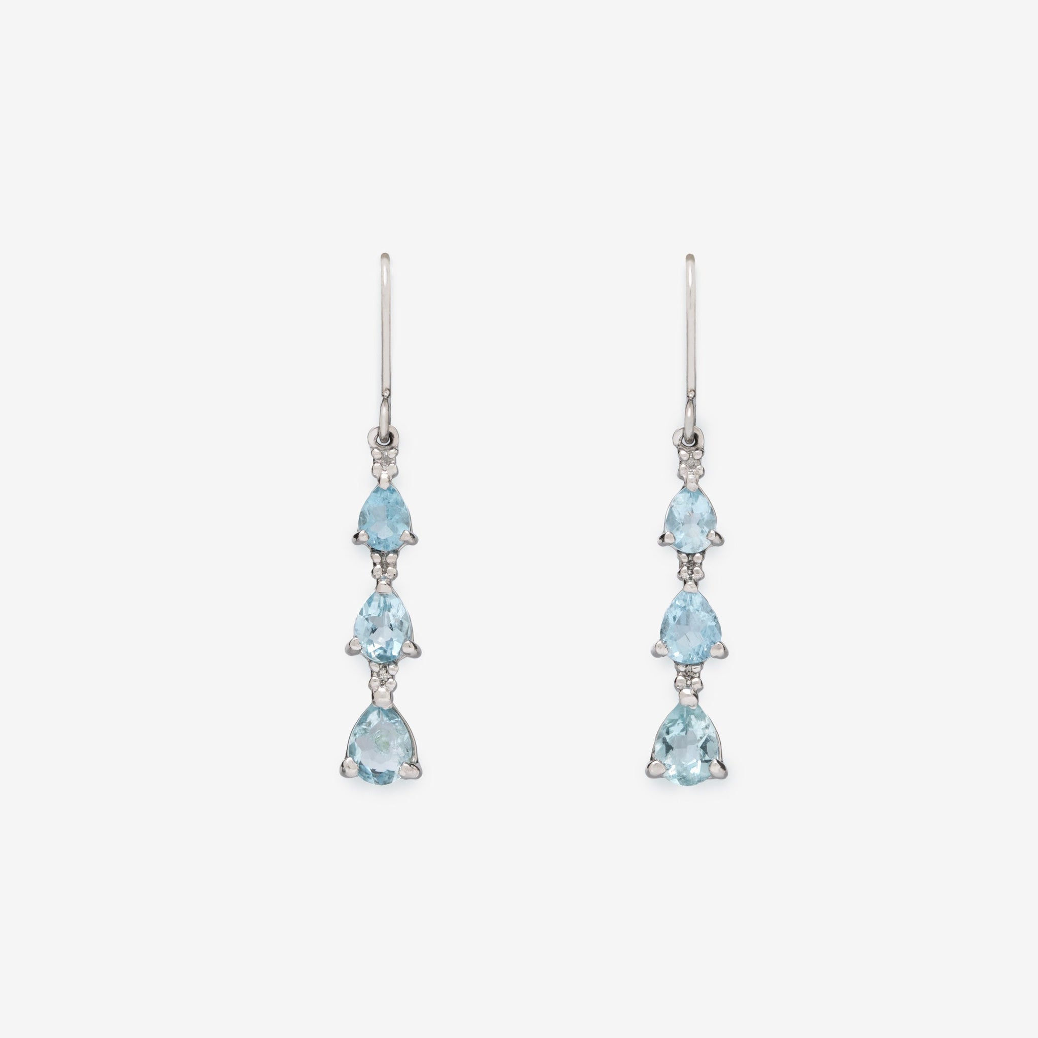 透明感のあるアクアマリンを連ねた、プラチナのエレガントなピアス。