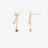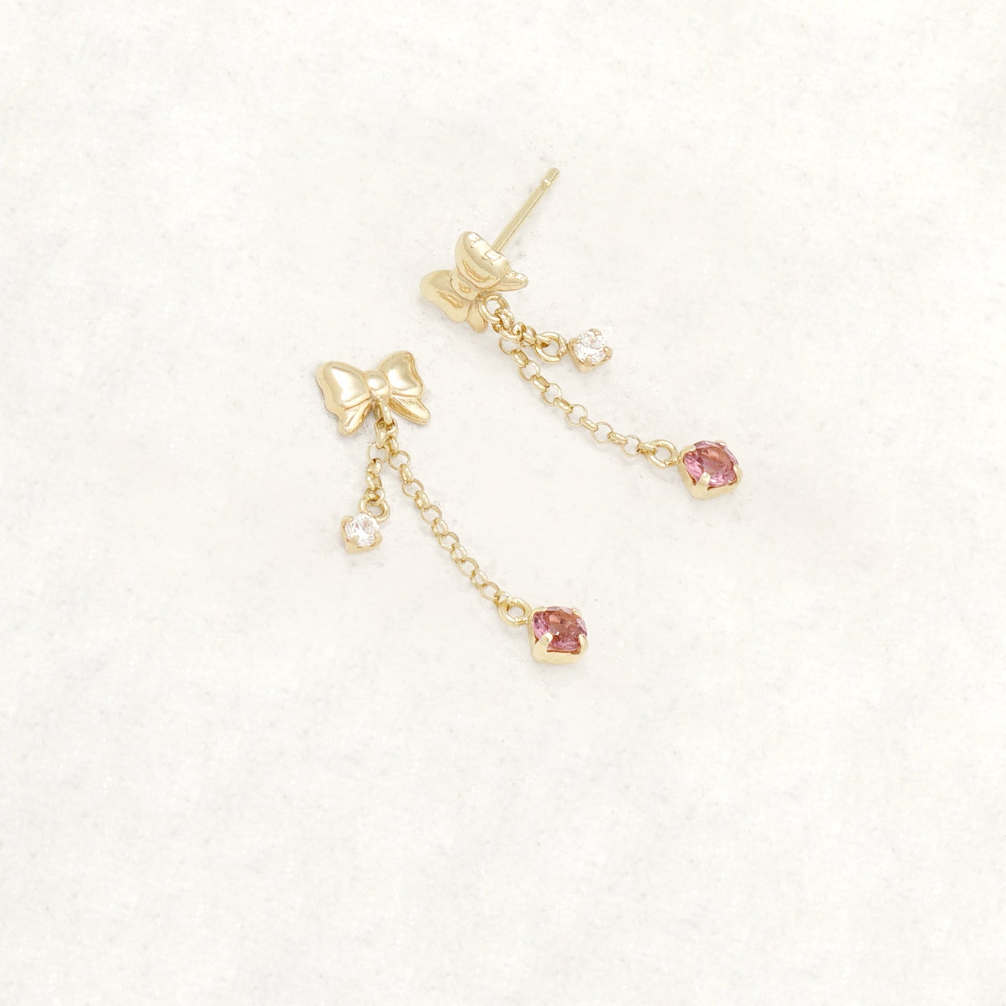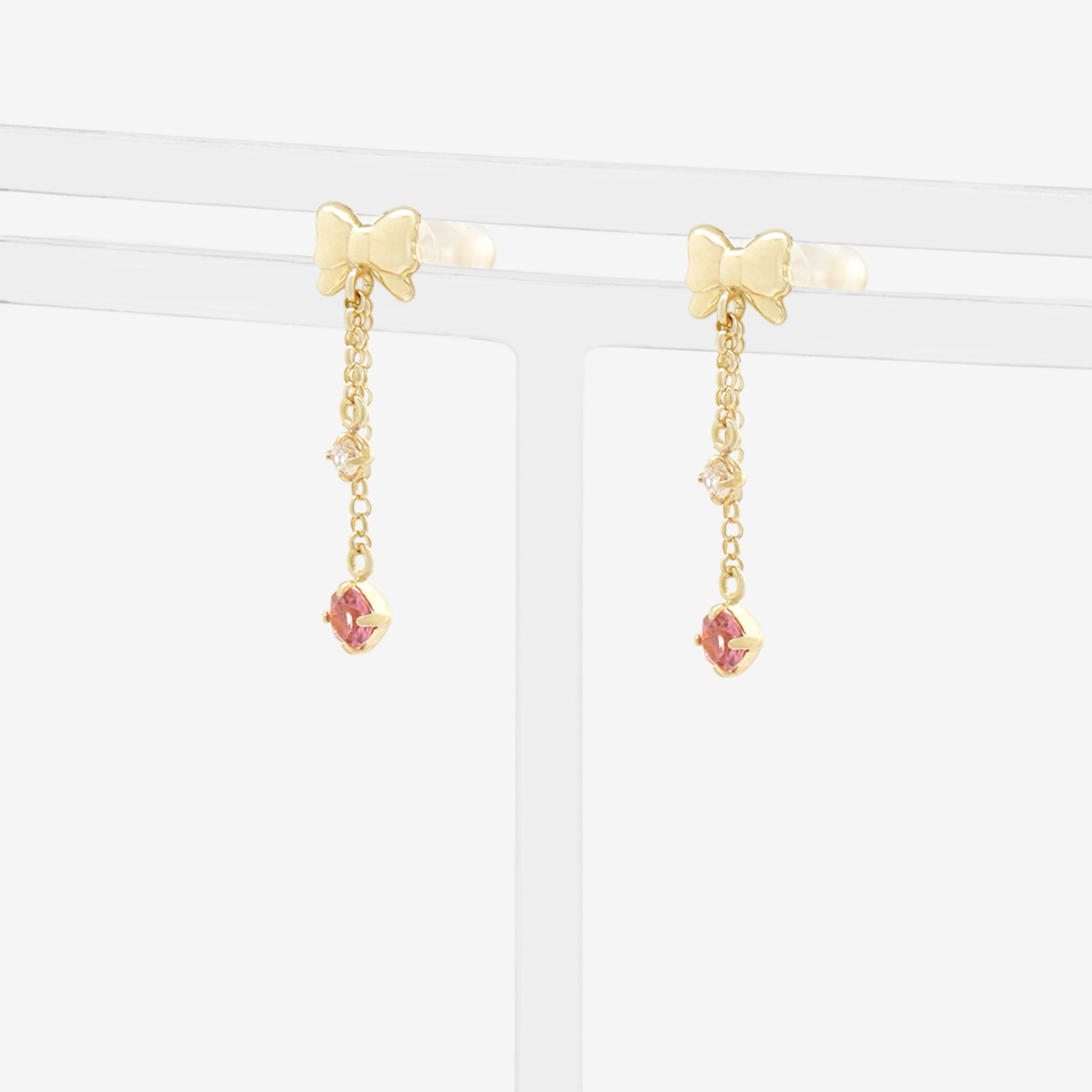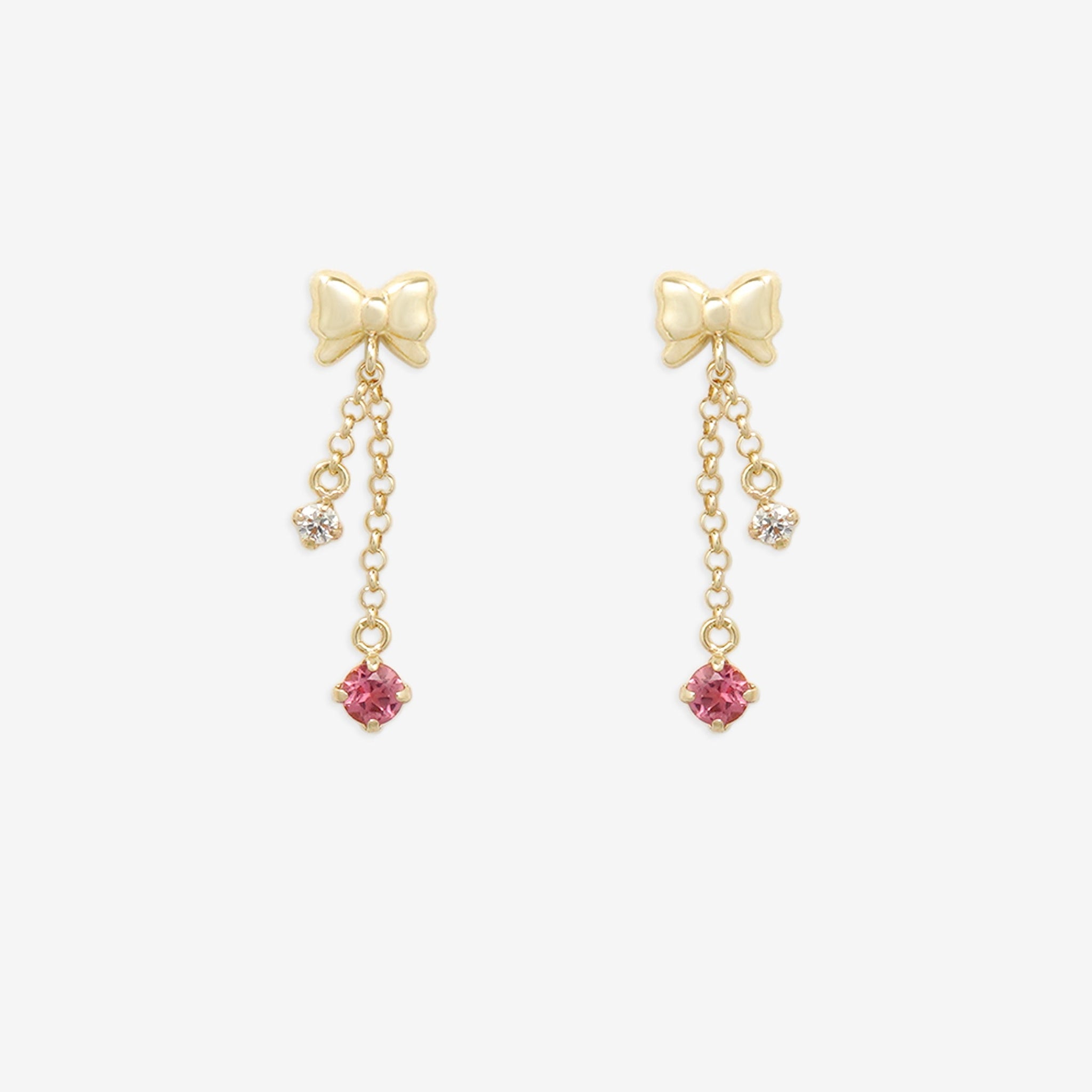 10月誕生石 K10 イエローゴールド ピンクトルマリン リボン ピアス