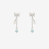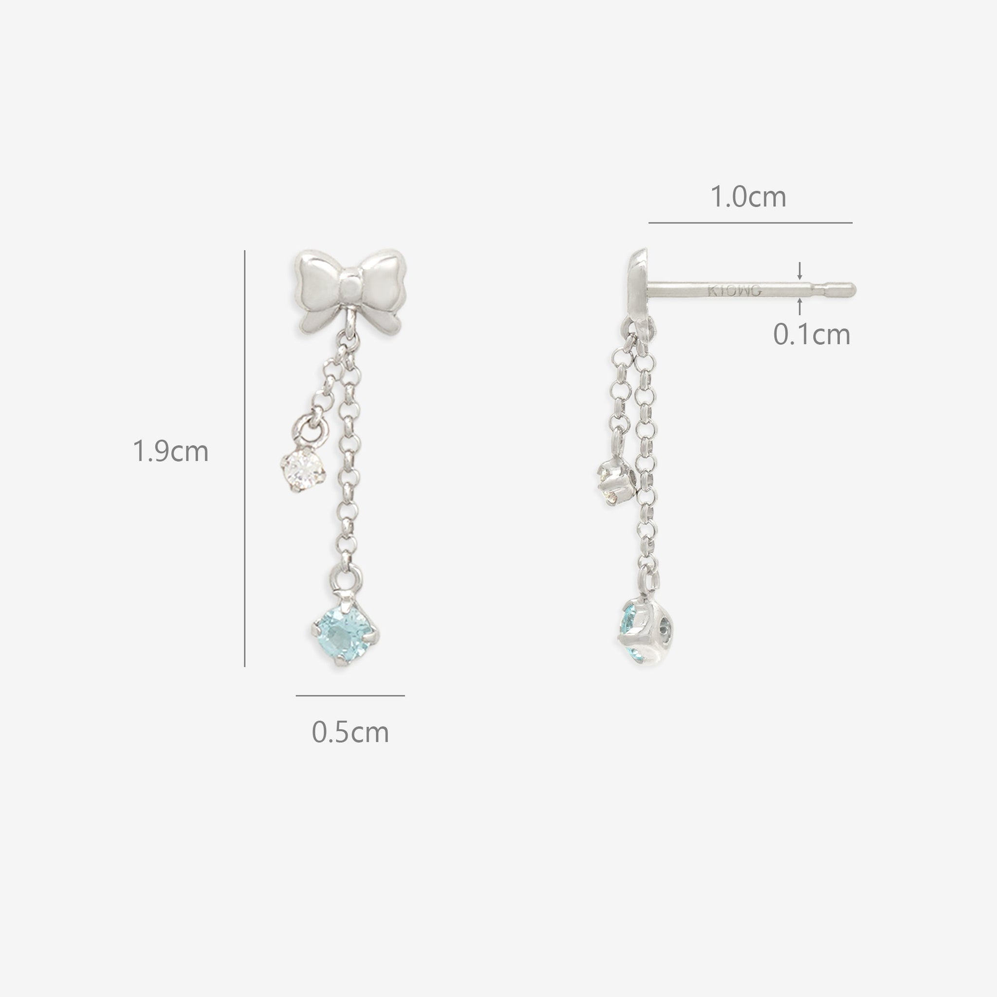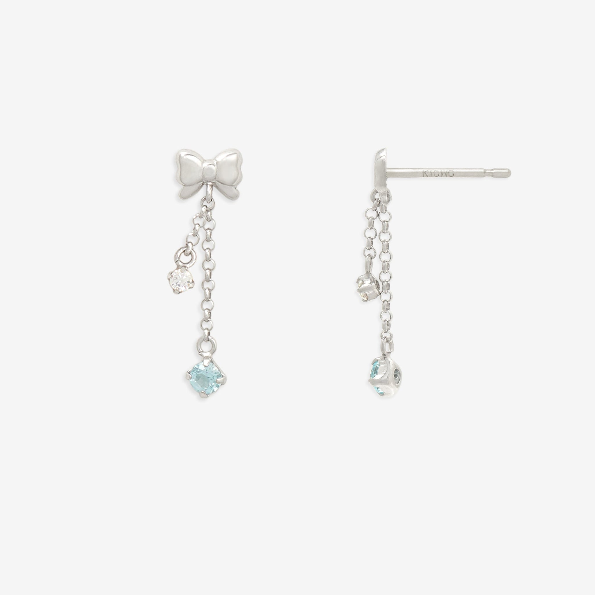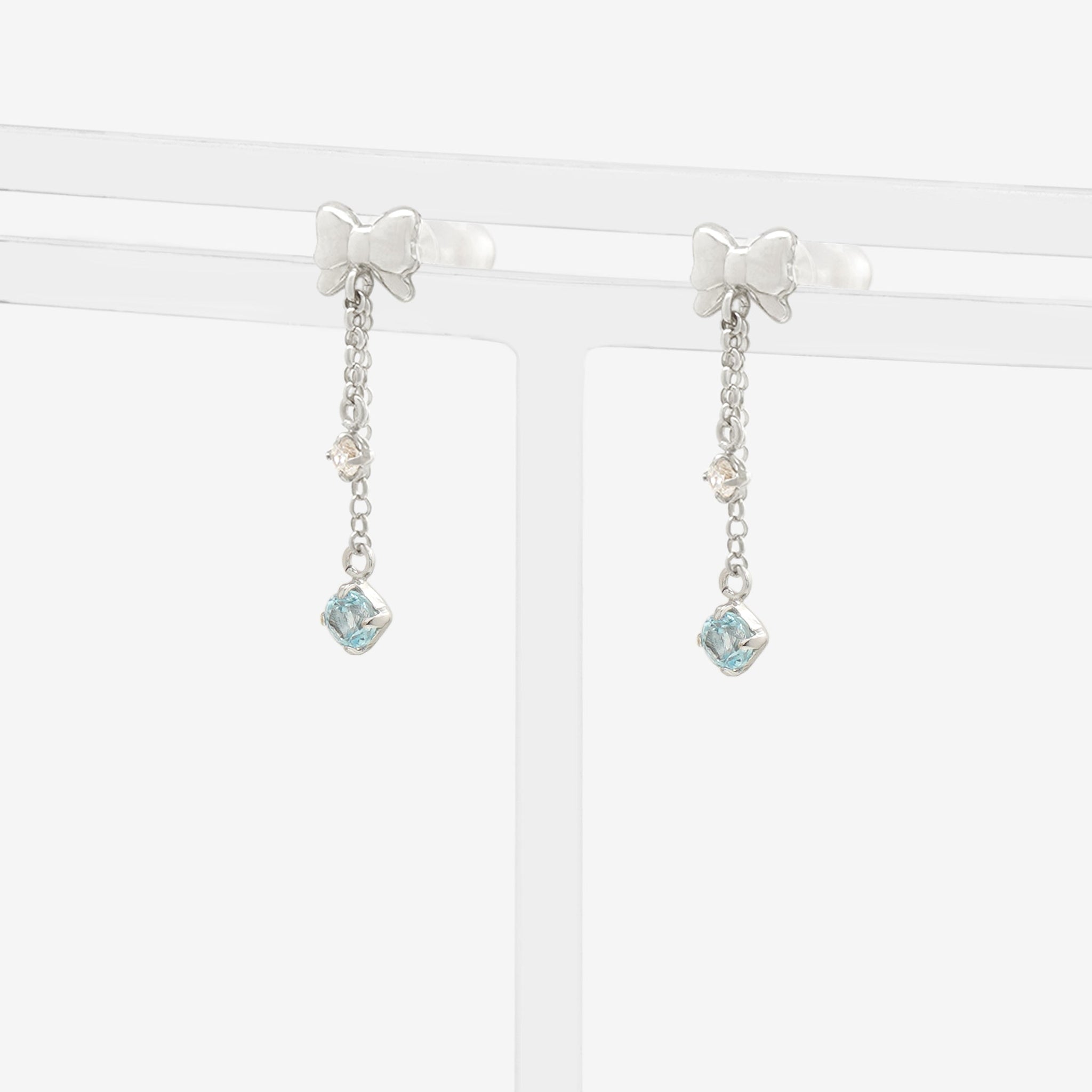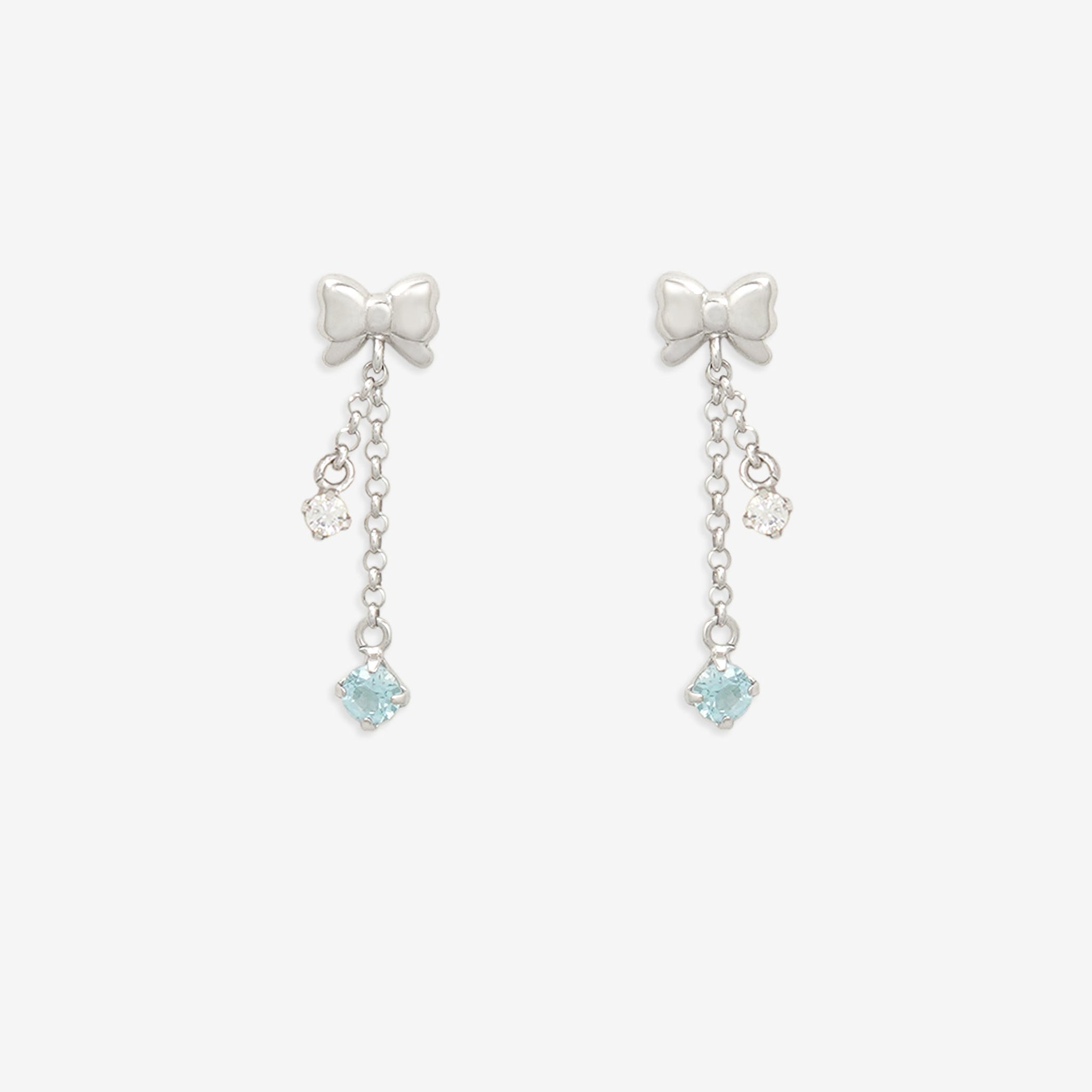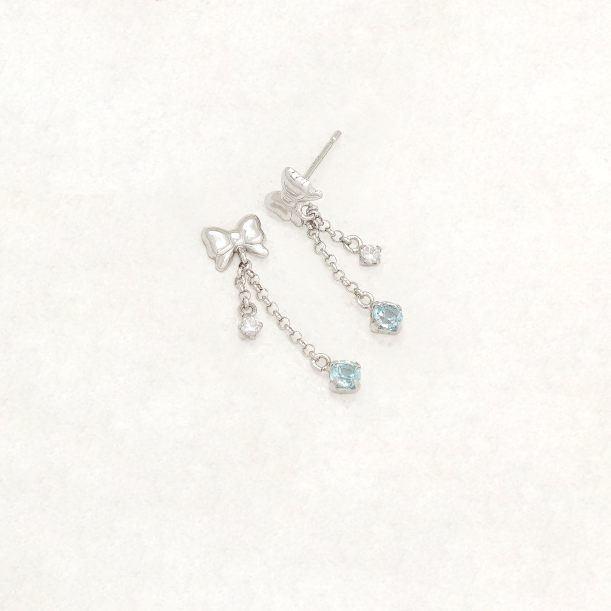 柔らかな曲線で描かれたリボンに、澄んだブルートパーズとキュービックジルコニアが揺れ動き、凛とした女性らしさを演出します。