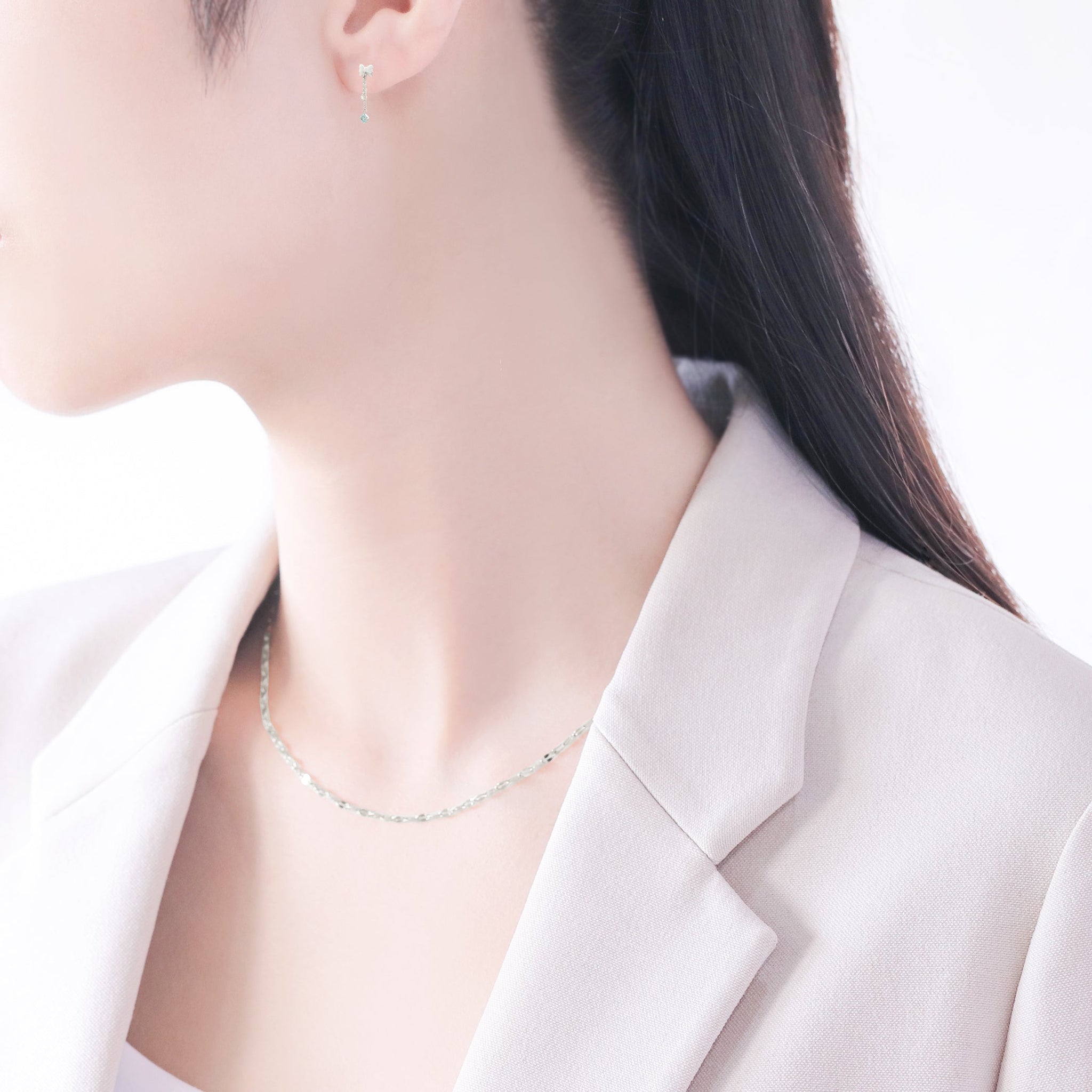 ホワイトゴールドのリボンモチーフが、耳元に清楚な輝きを添えるピアス。