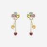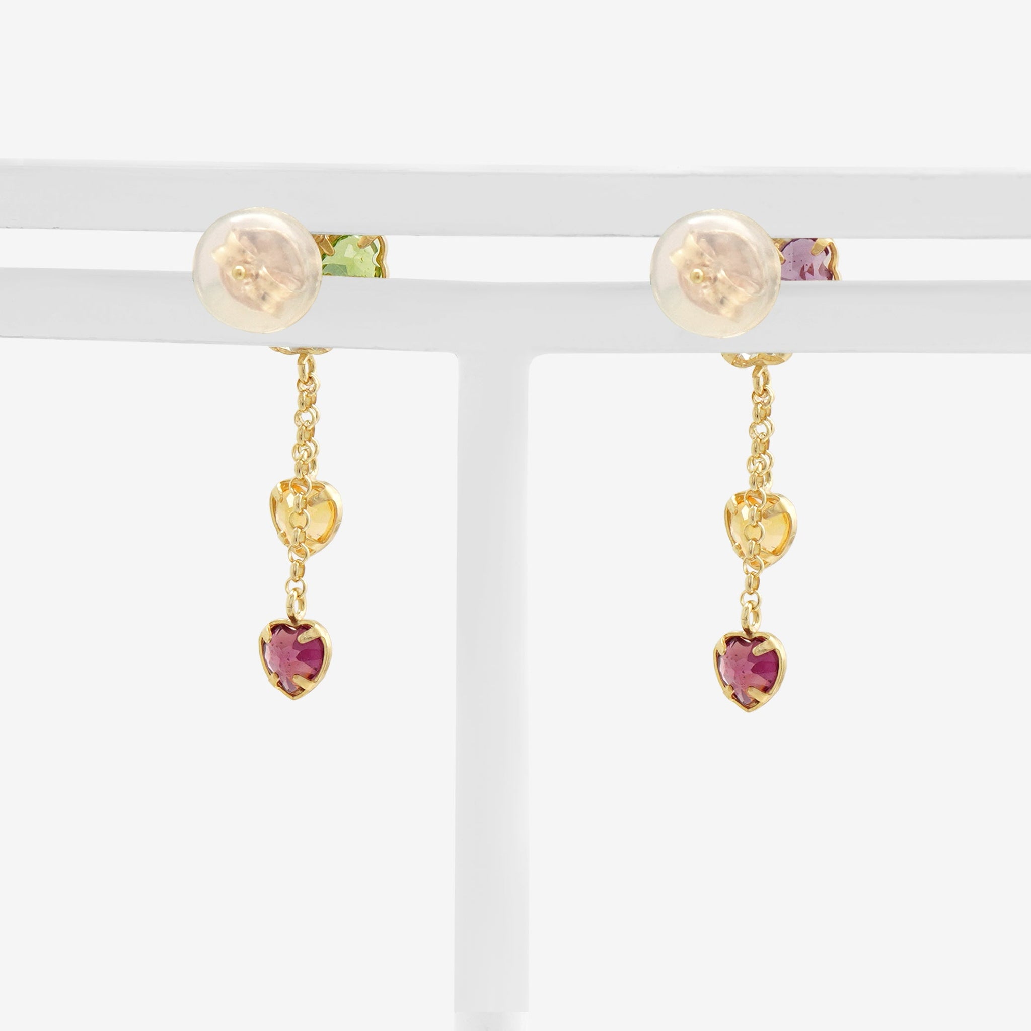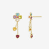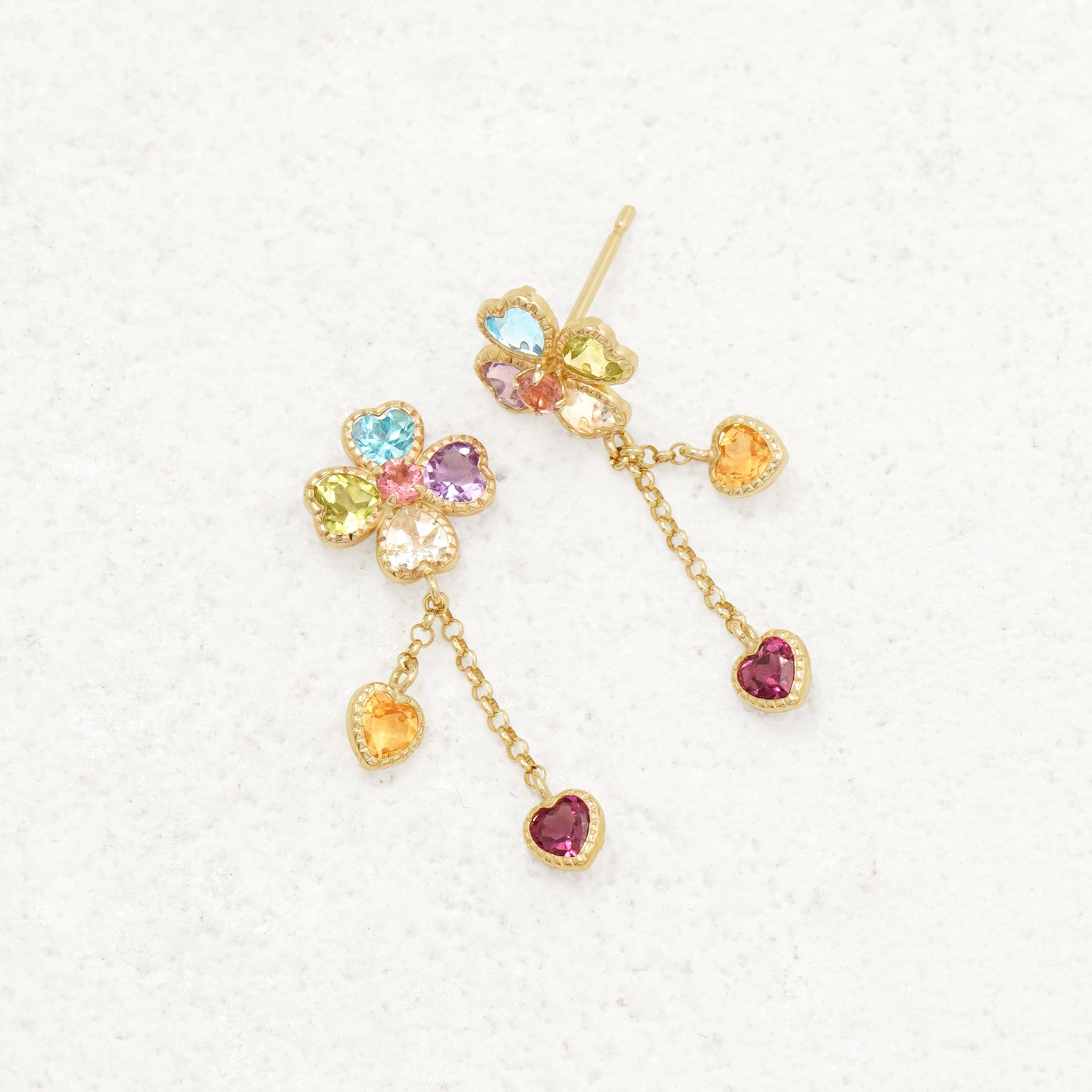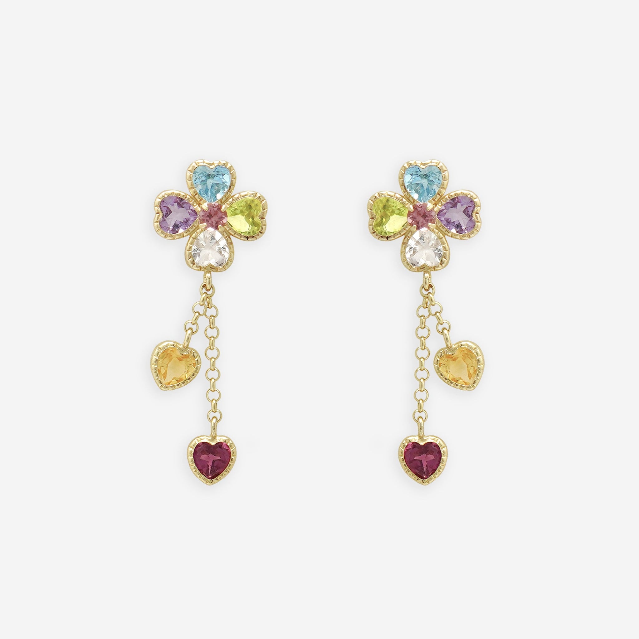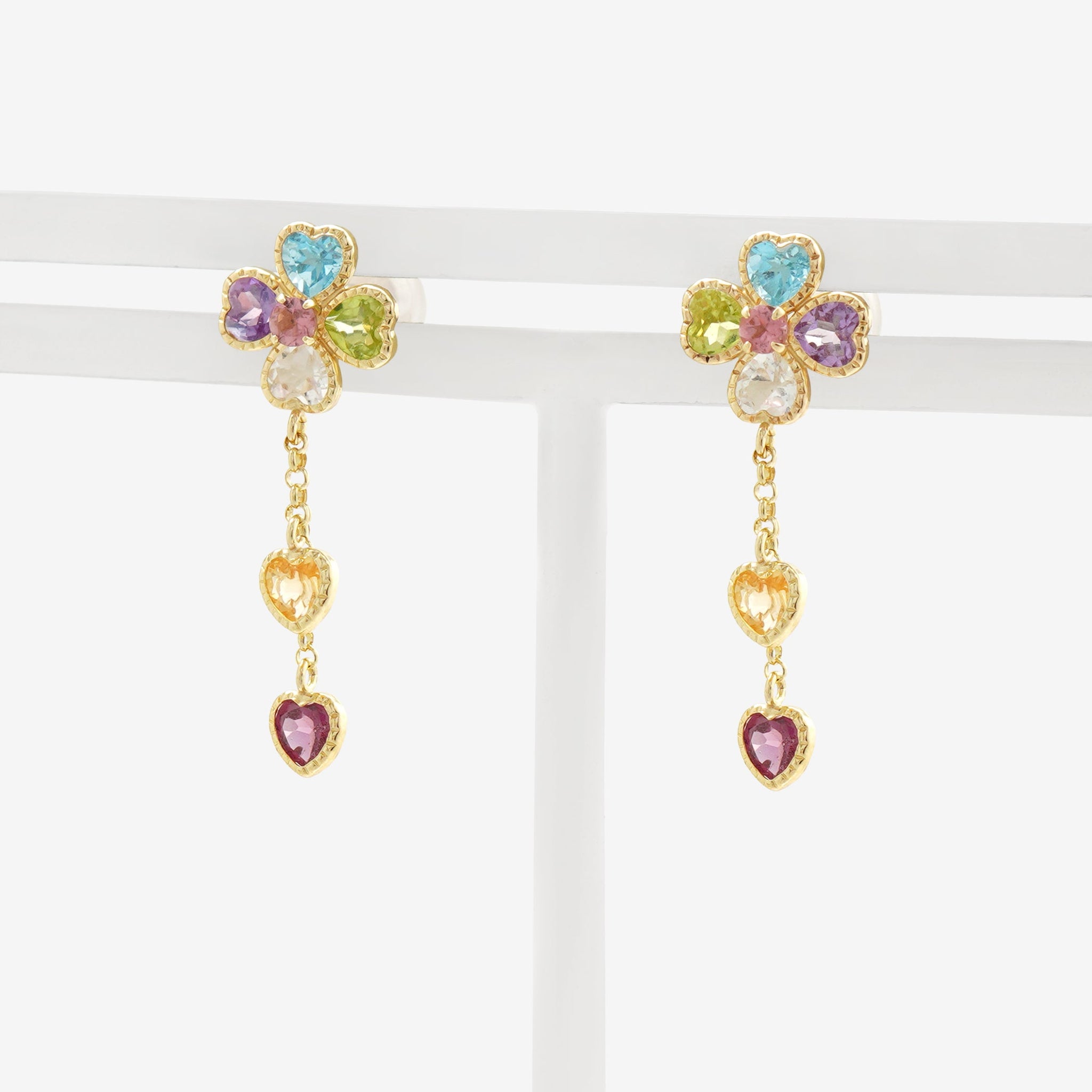 色とりどりの天然石がクローバーモチーフで咲き誇るイエローゴールドピアス。