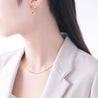 ブルートパーズ、ペリドット、アクアマリン、ライトアメジスト、シトリン、ロードライトガーネット、6種類の天然石が繊細に輝き、耳元に華やかな彩りを添えて、表情を明るく見せてくれます。