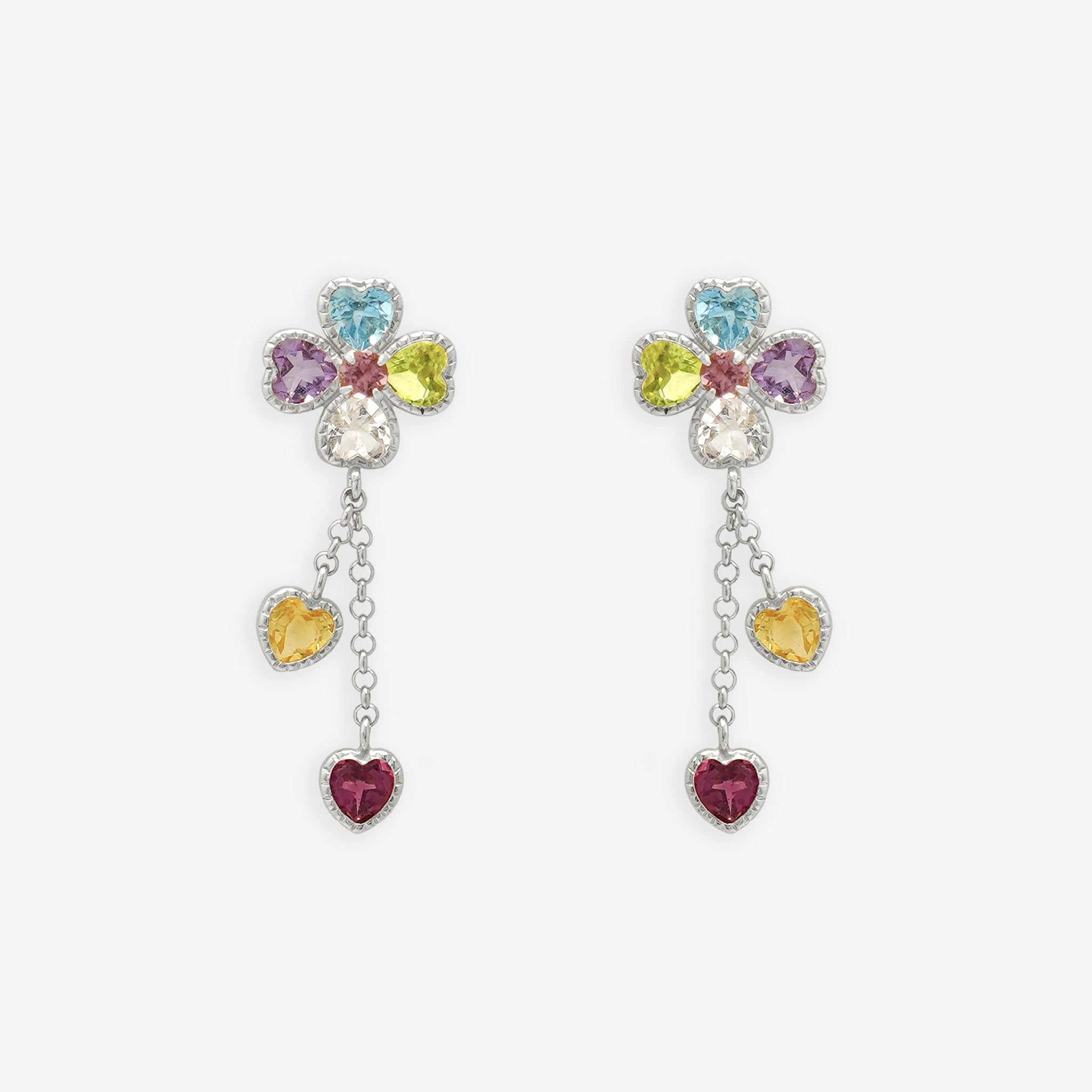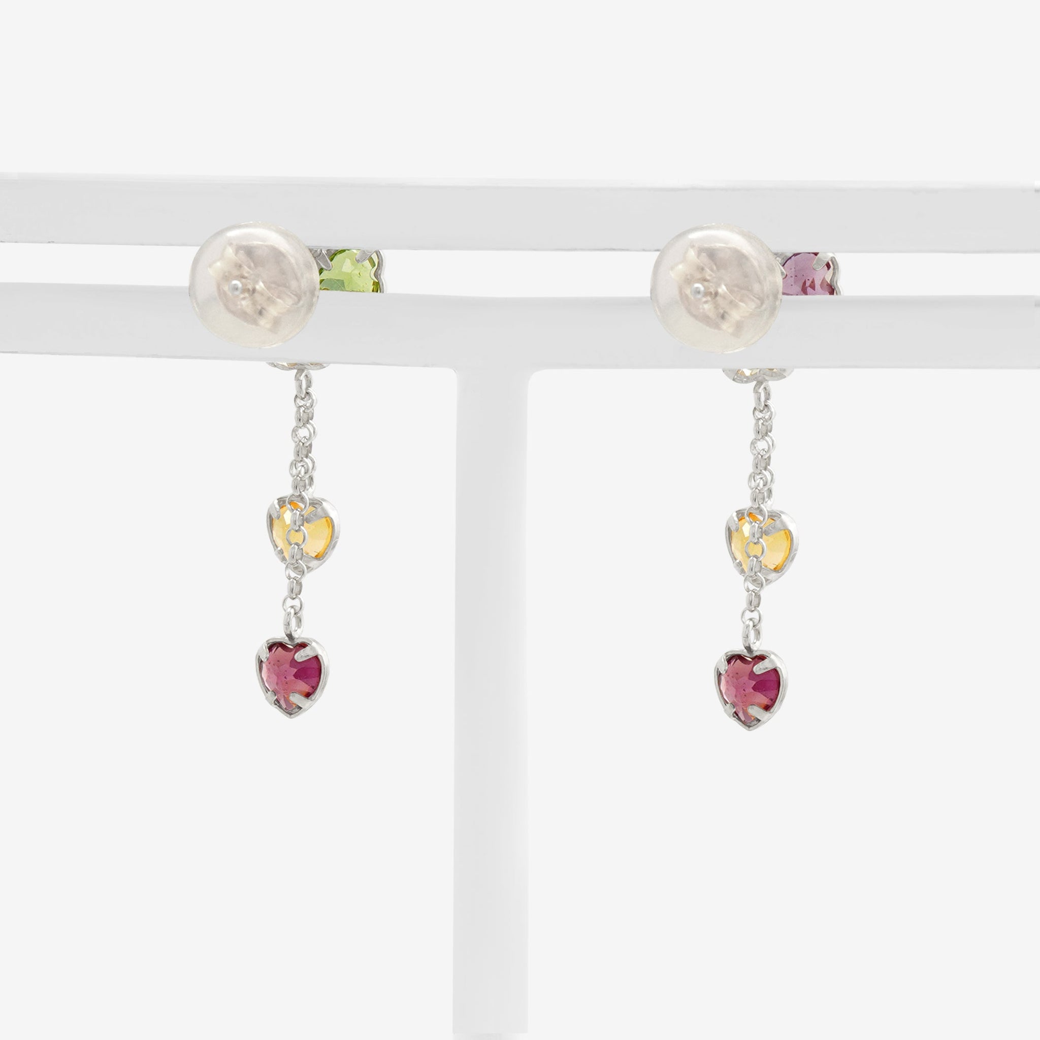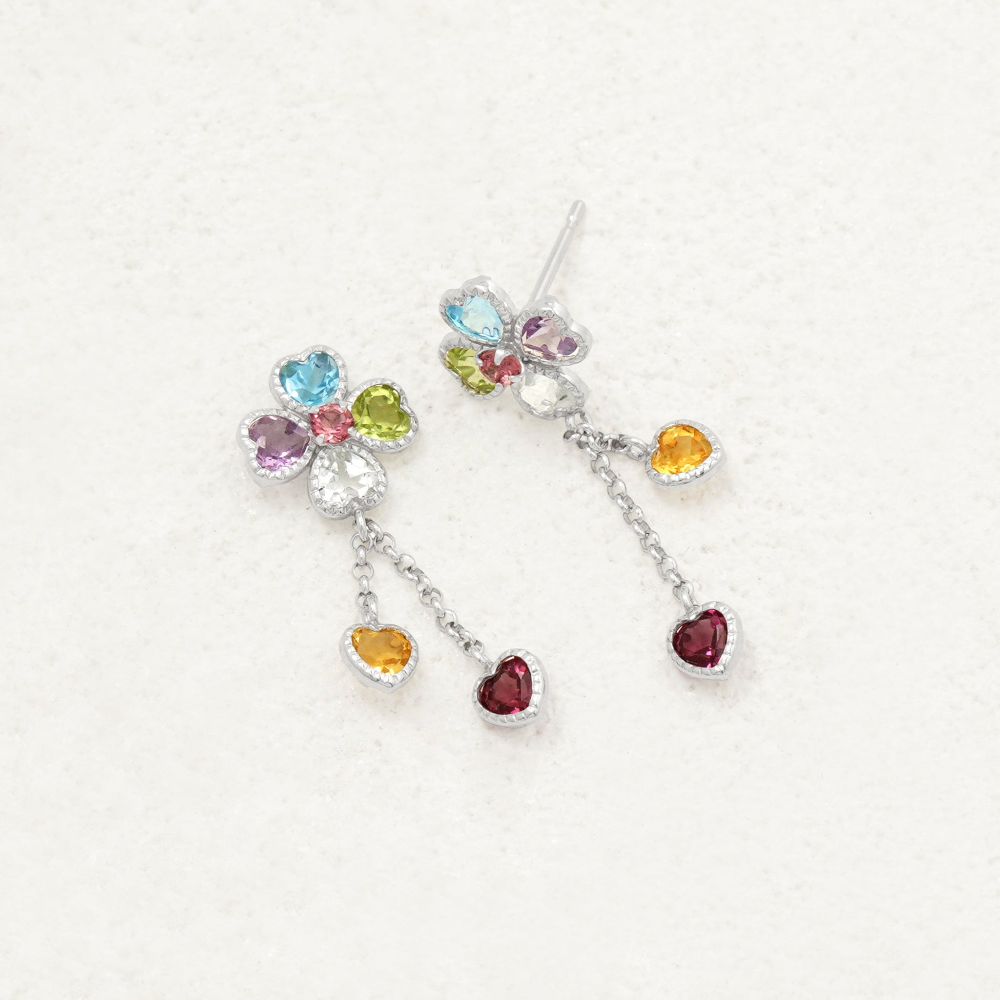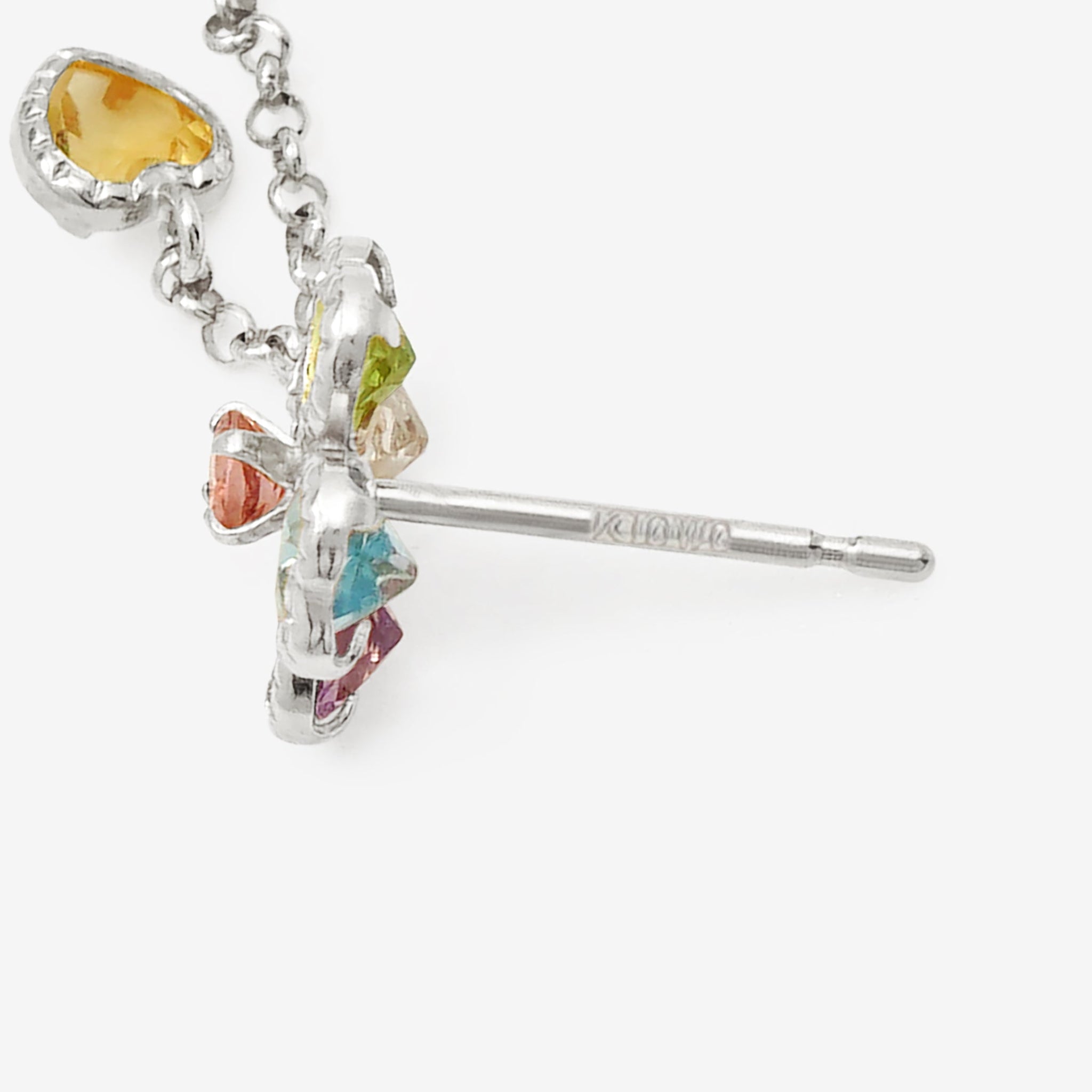 ブルートパーズ、ペリドット、アクアマリン、ライトアメジスト、シトリン、ロードライトガーネット、6種類の天然石が繊細に輝き、それぞれの個性が耳元に爽やかな彩りを添えます。