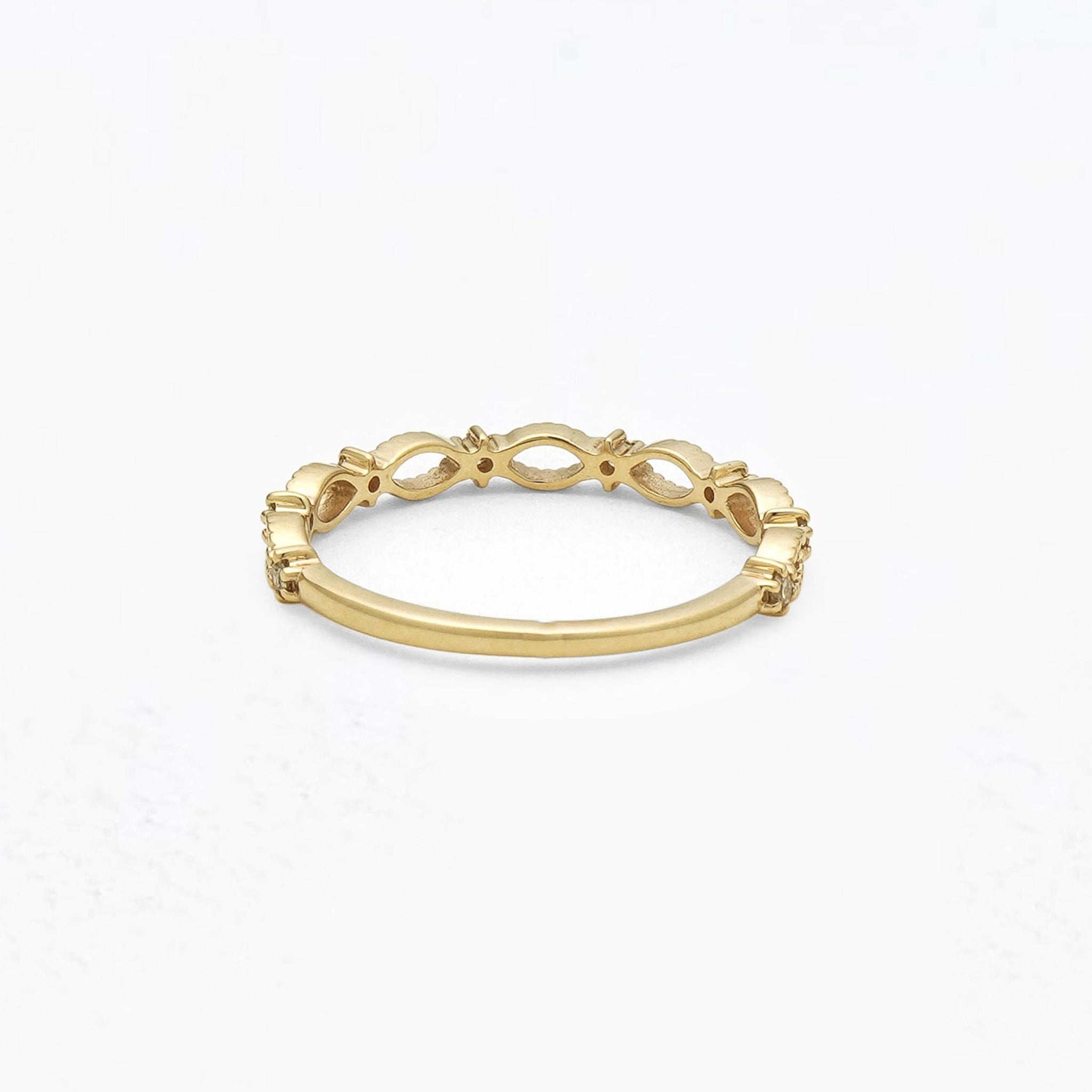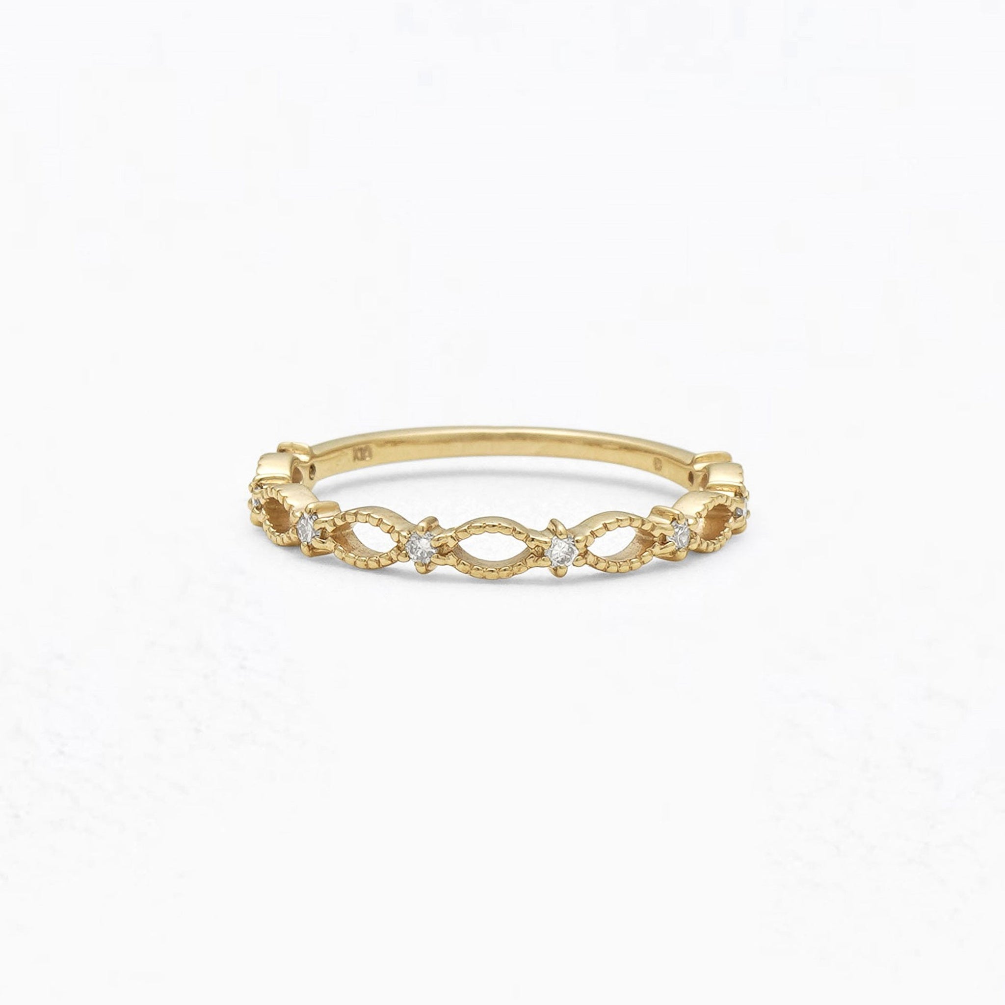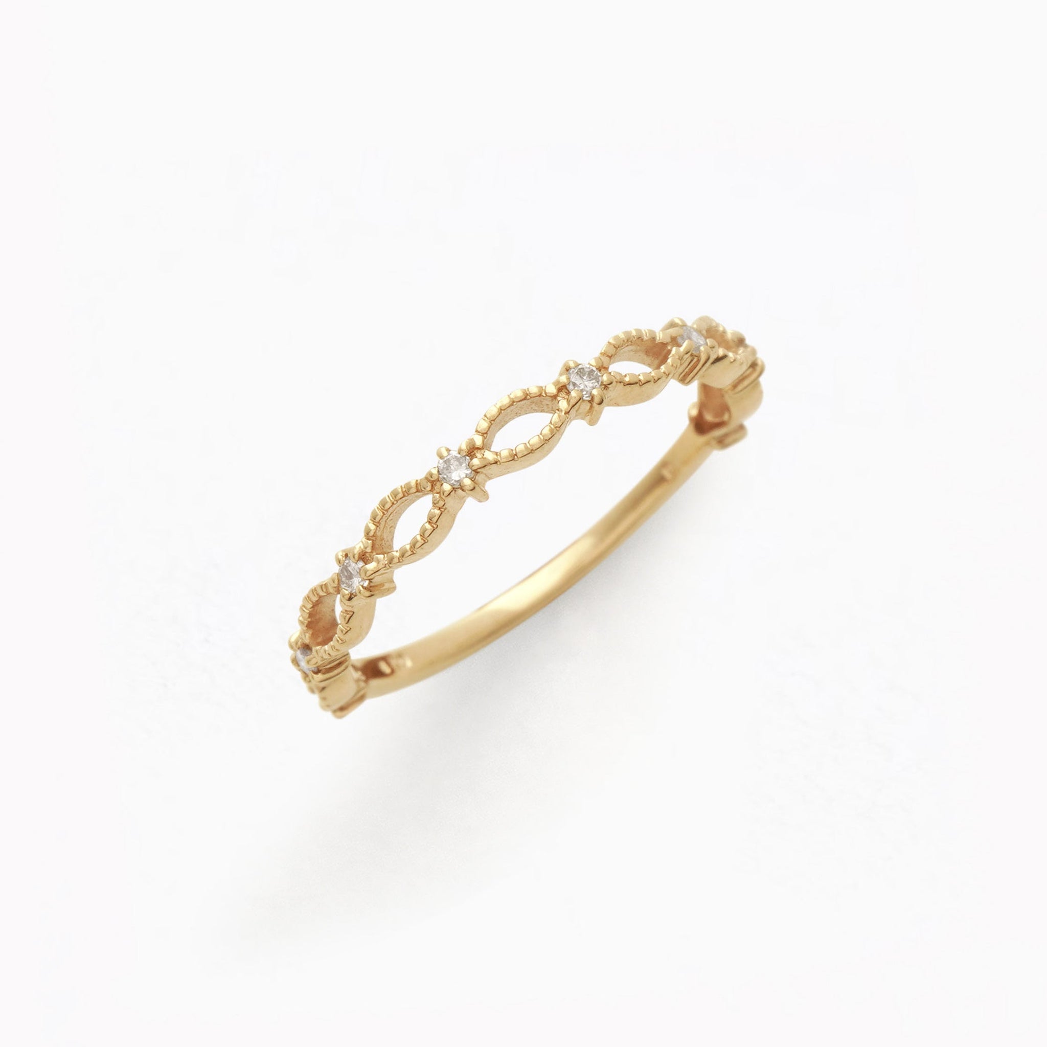 ダイヤモンドが繊細にきらめくイエローゴールドのリング。
