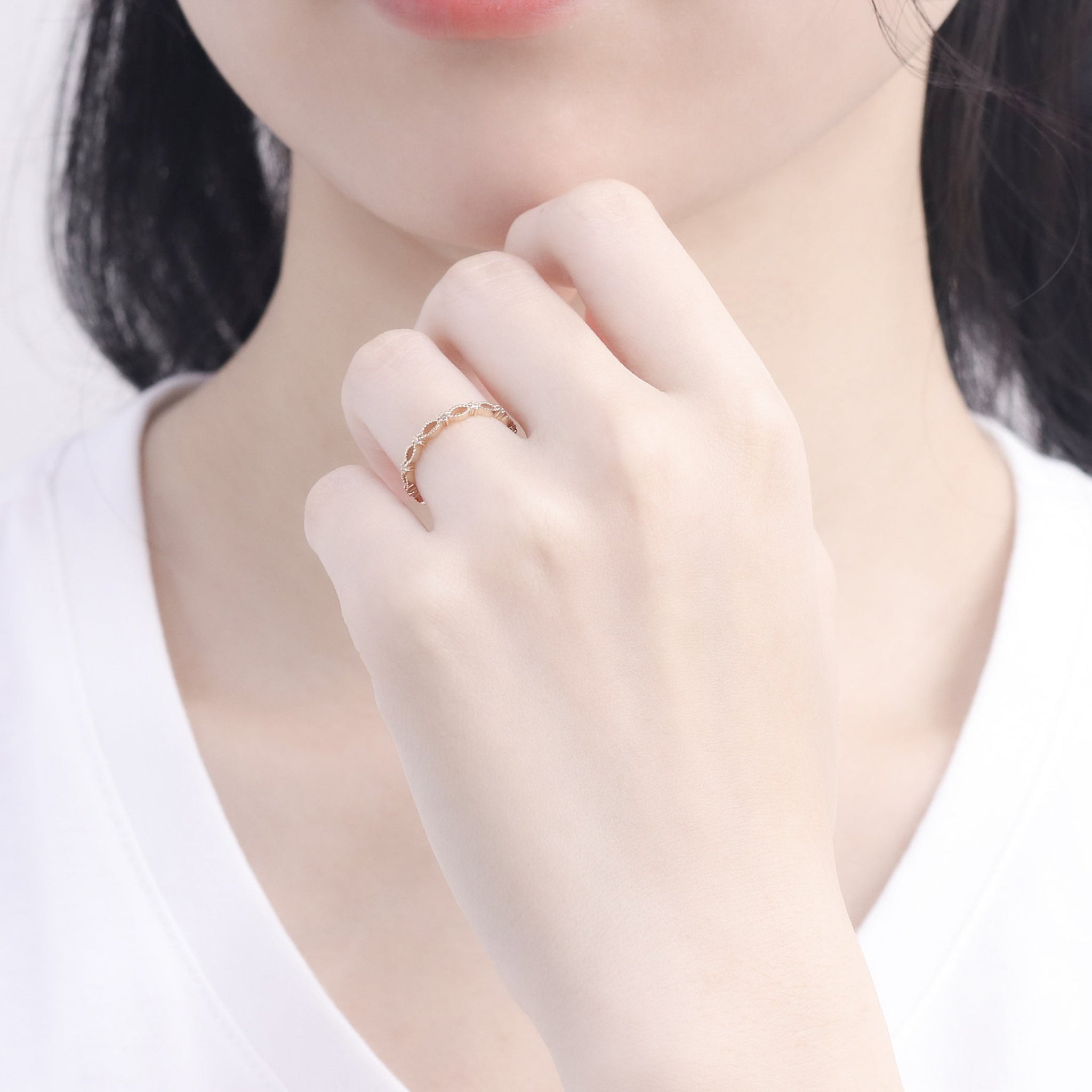 細やかな装飾をほど良いリズムで並べたデザインが、指元に上品なニュアンスを添えます。