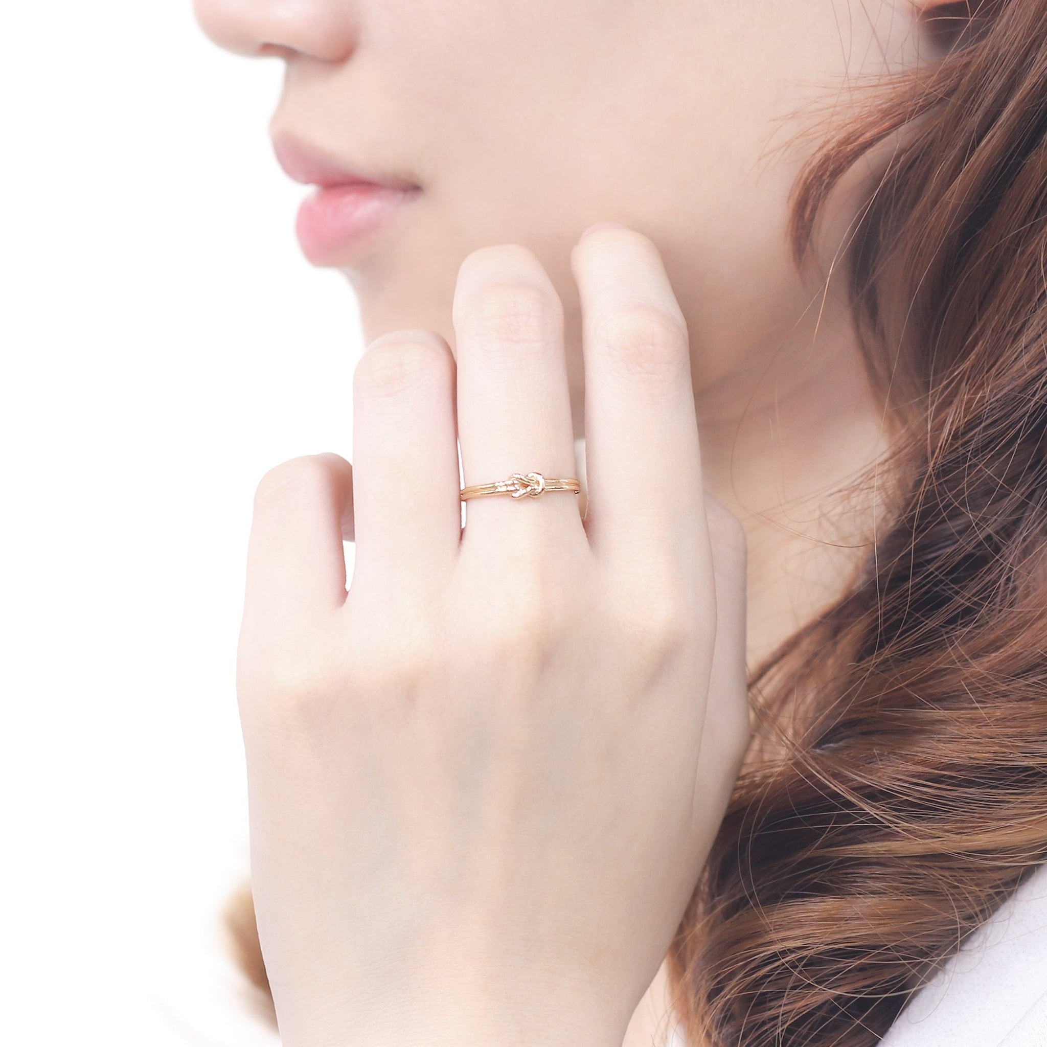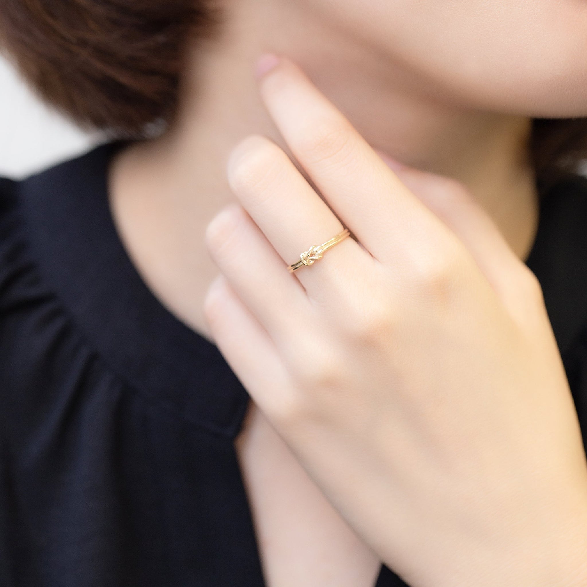 小さな結び目をあしらったデザインが、指元に静かな存在感と洗練されたアクセントを添えます。