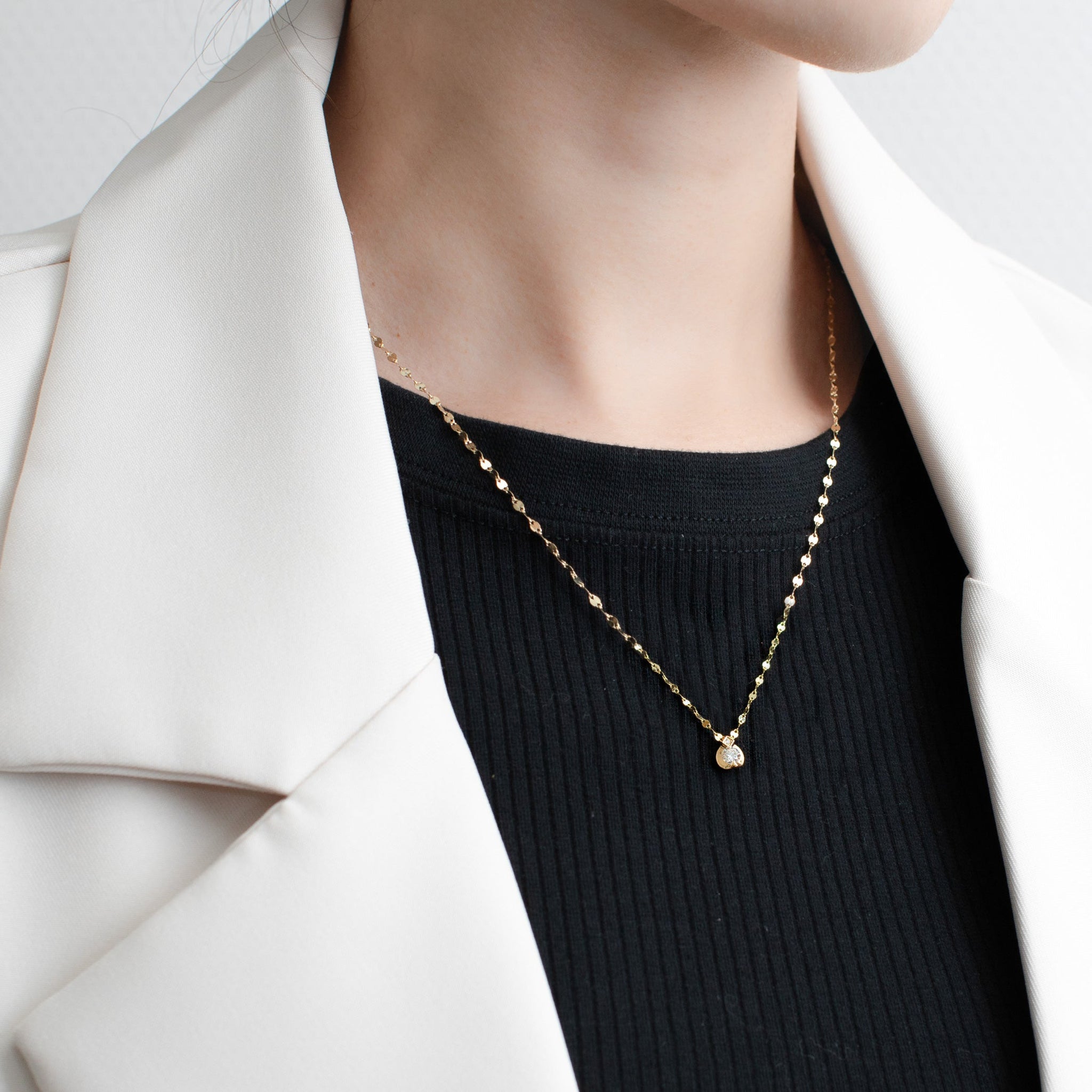 0.3カラットのダイヤモンドをあしらった、上品で洗練されたK18イエローゴールドのネックレス。