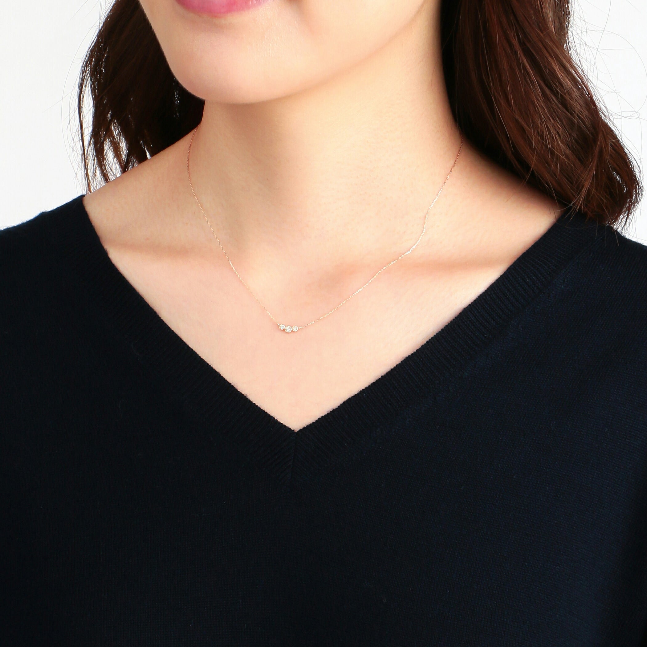 デコルテラインでダイヤモンドがさりげなく輝くので、優しげな雰囲気と女性らしい魅力を引き立ててくれそうです。
