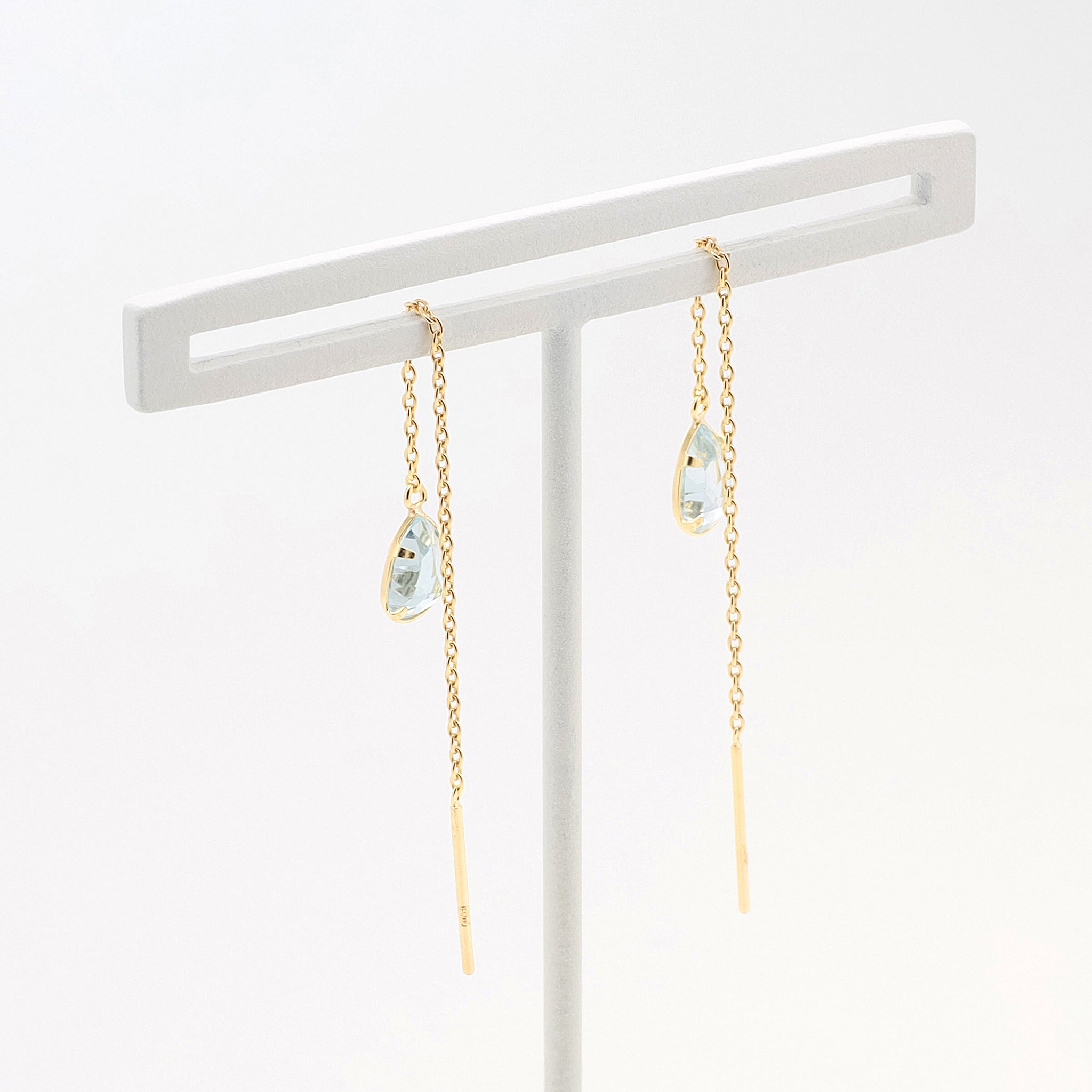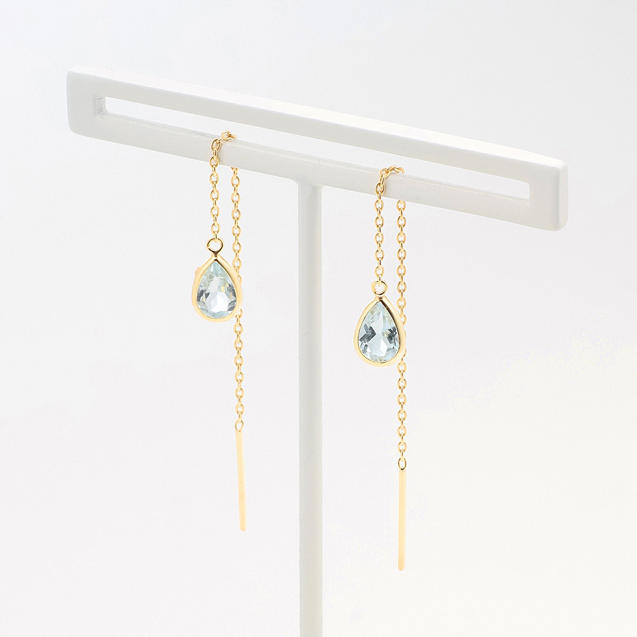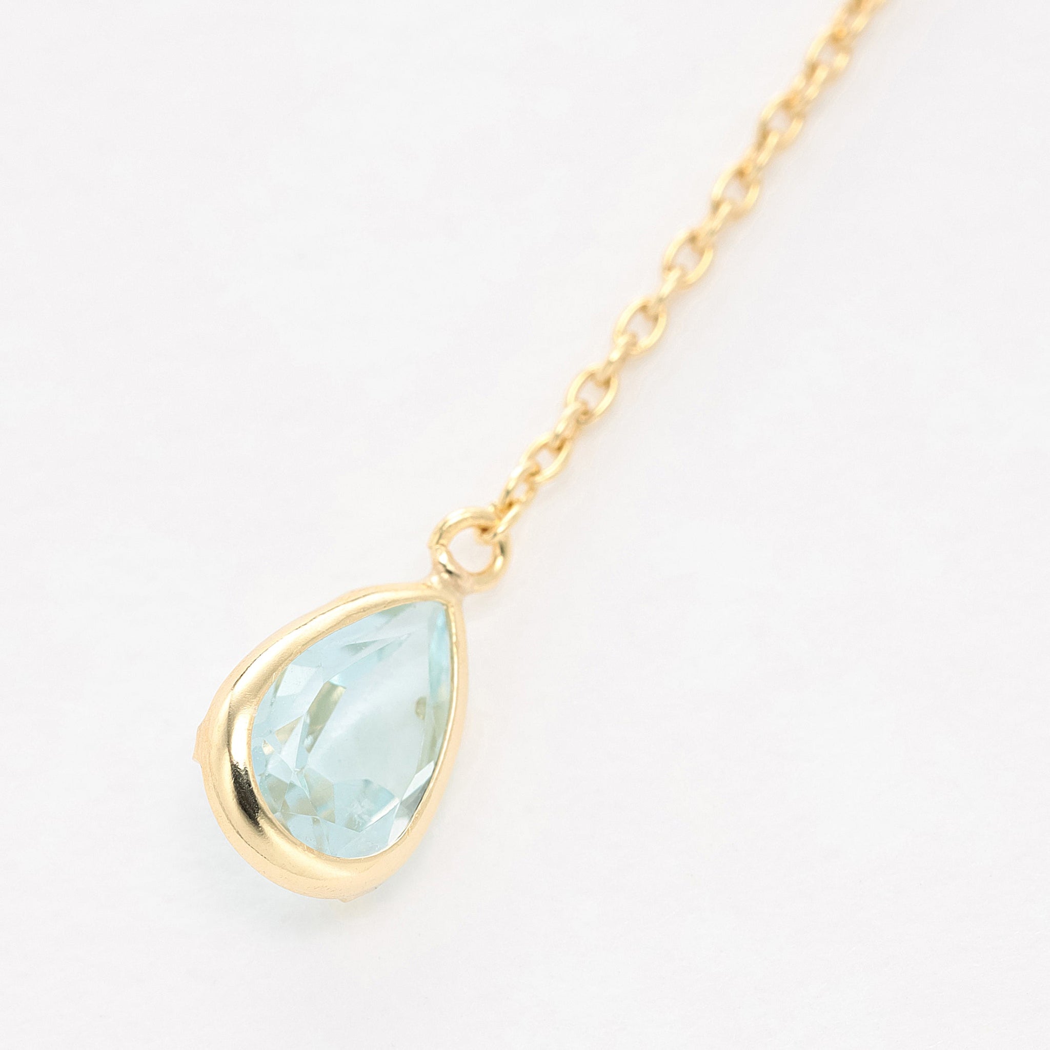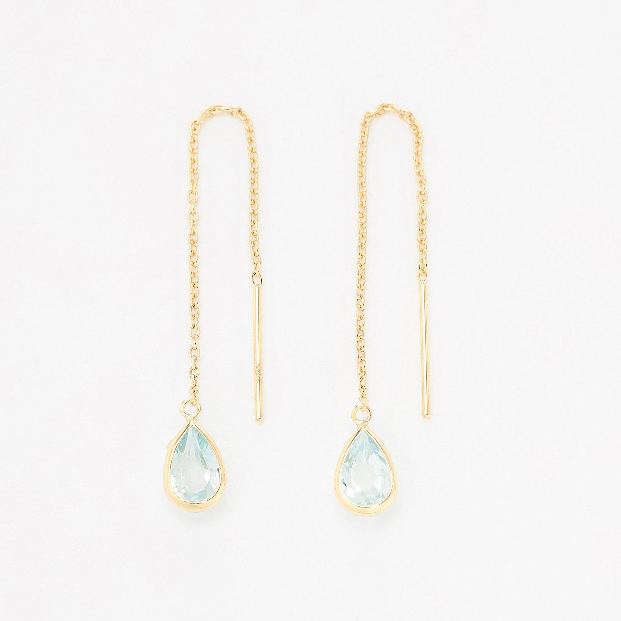 しずくモチーフのブルートパーズがゆれる、イエローゴールドのアメリカンピアス。