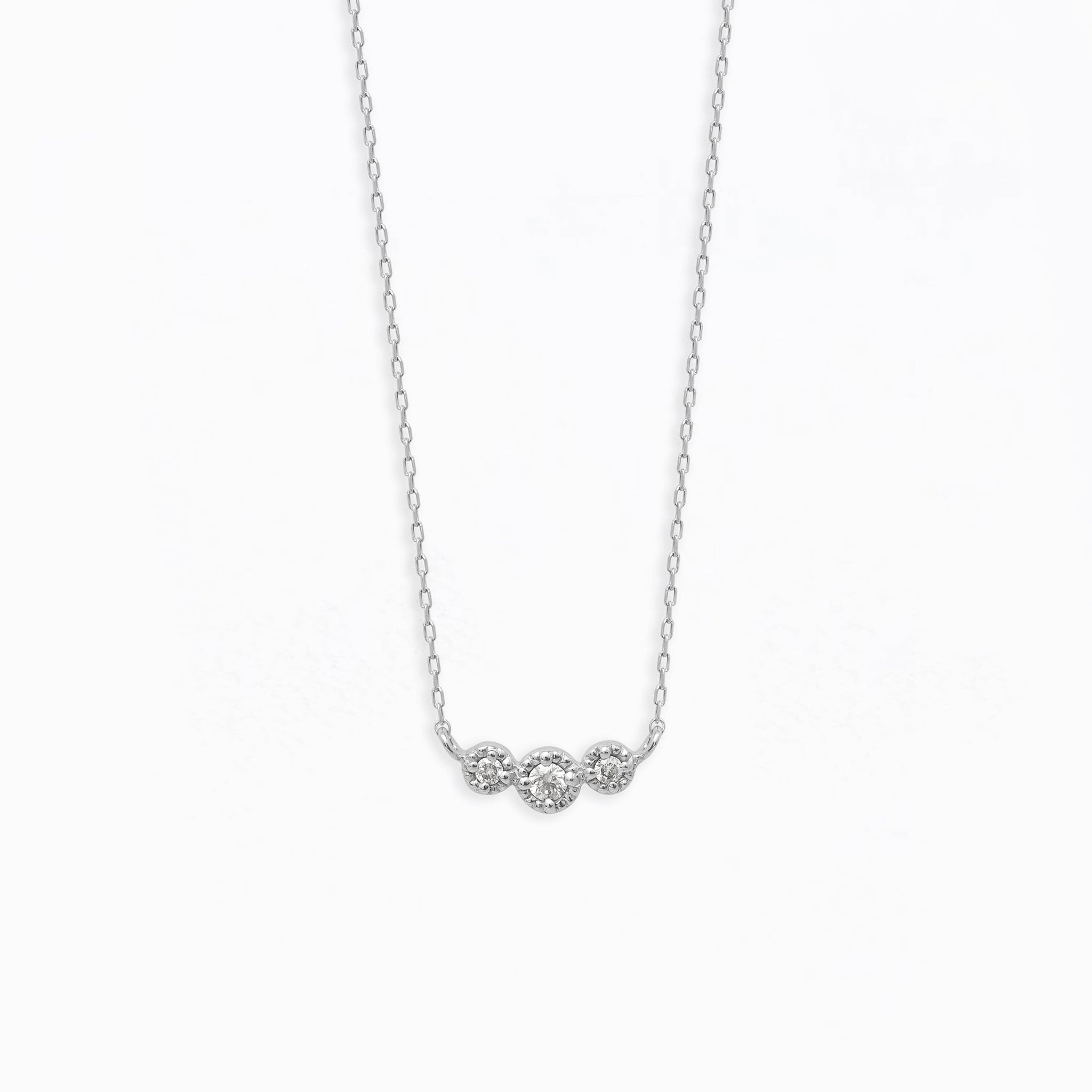 美しい輝きが永久的に続くダイヤモンドをシンプルにデザインしたホワイトゴールドのネックレス。