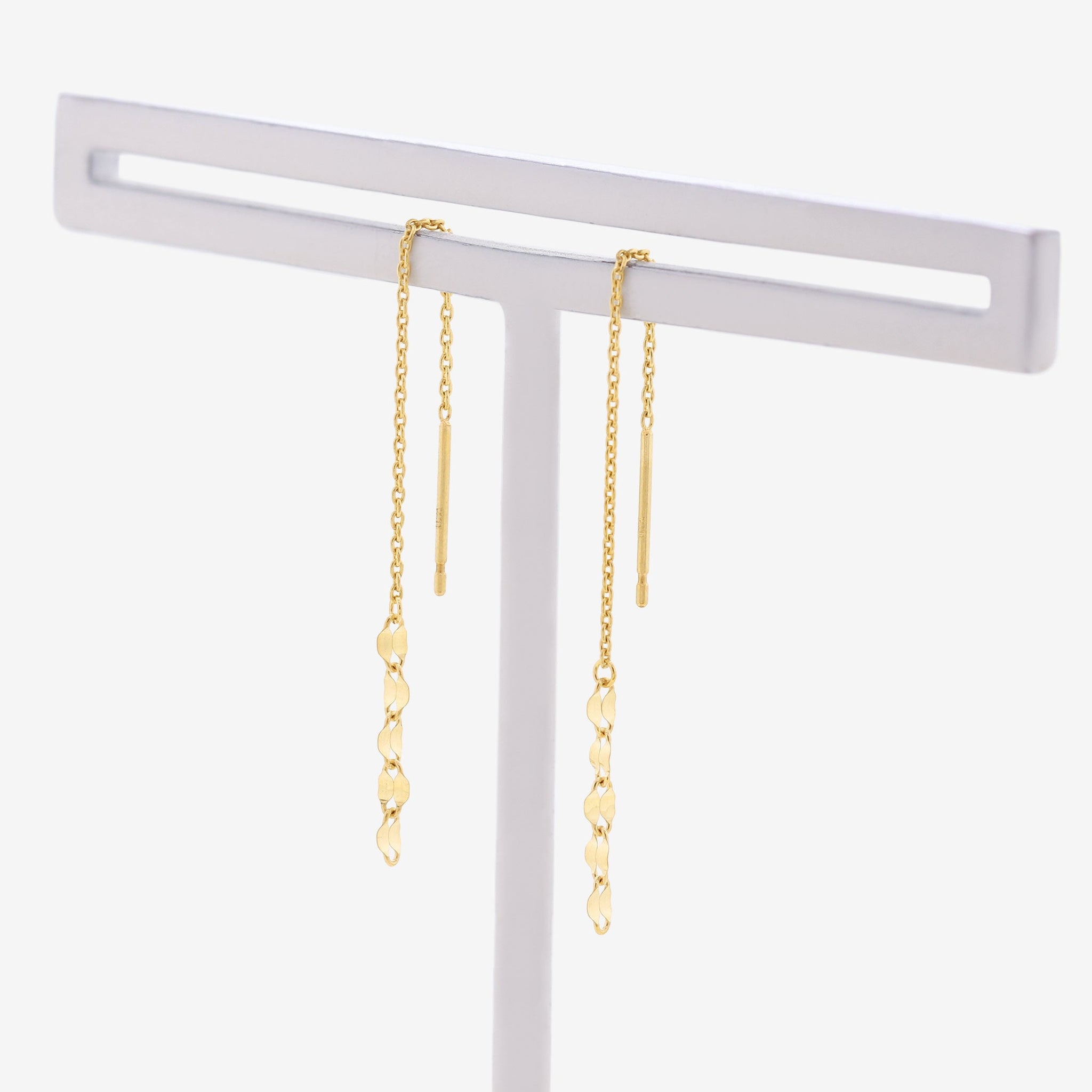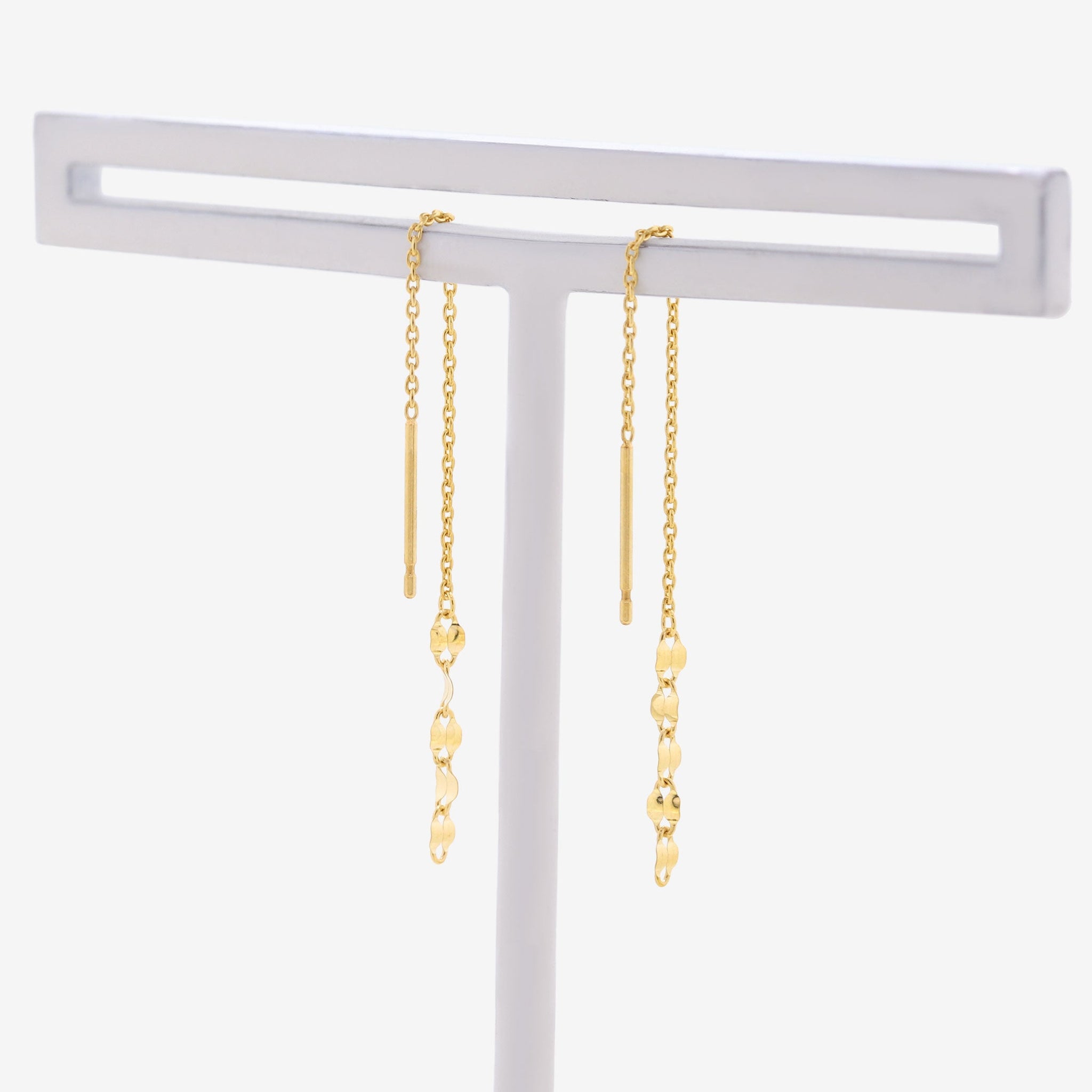 動くたびに繊細に揺れ動くイエローゴールドのチェーンが、華やかな印象に。