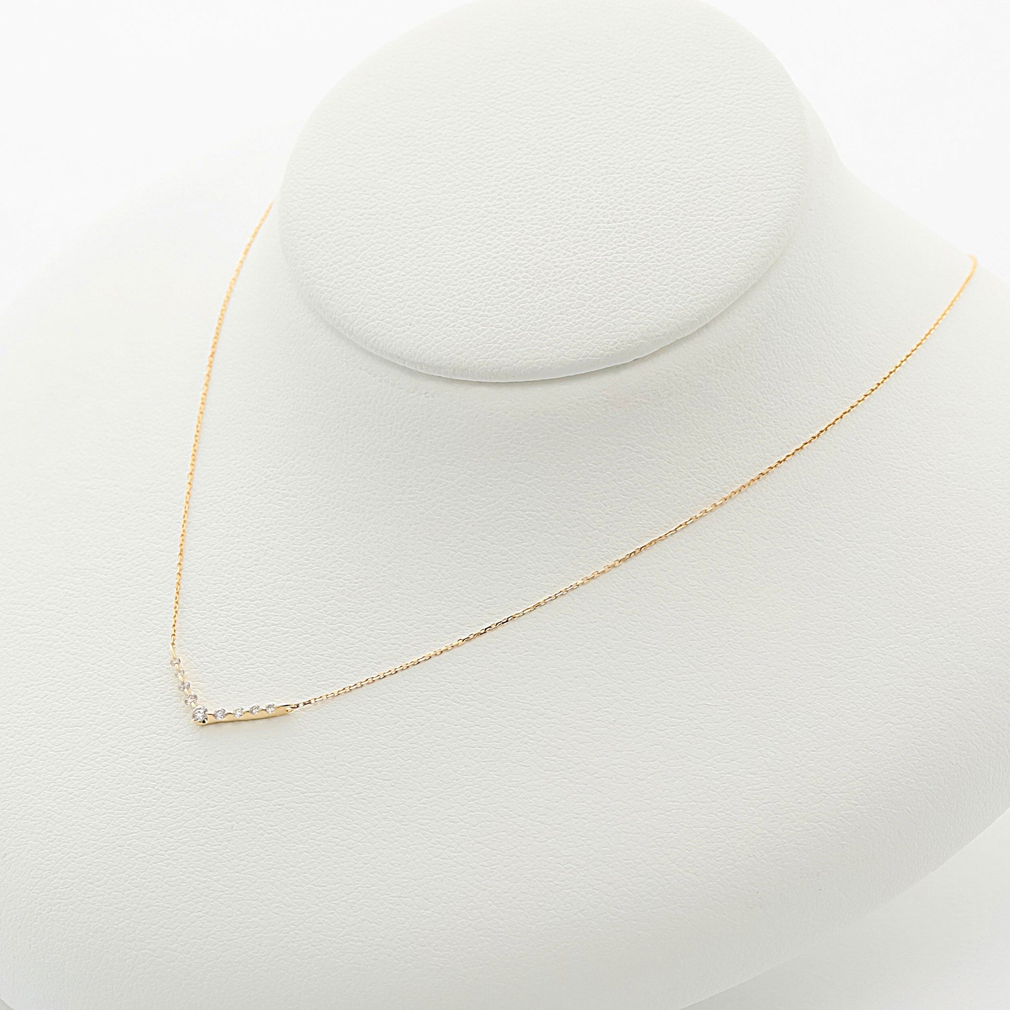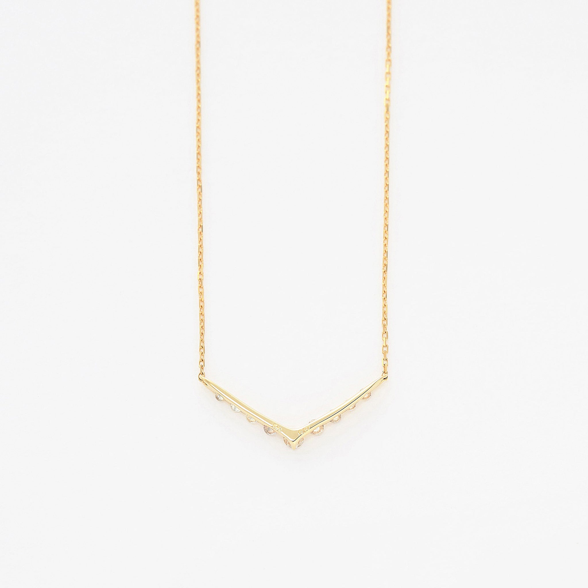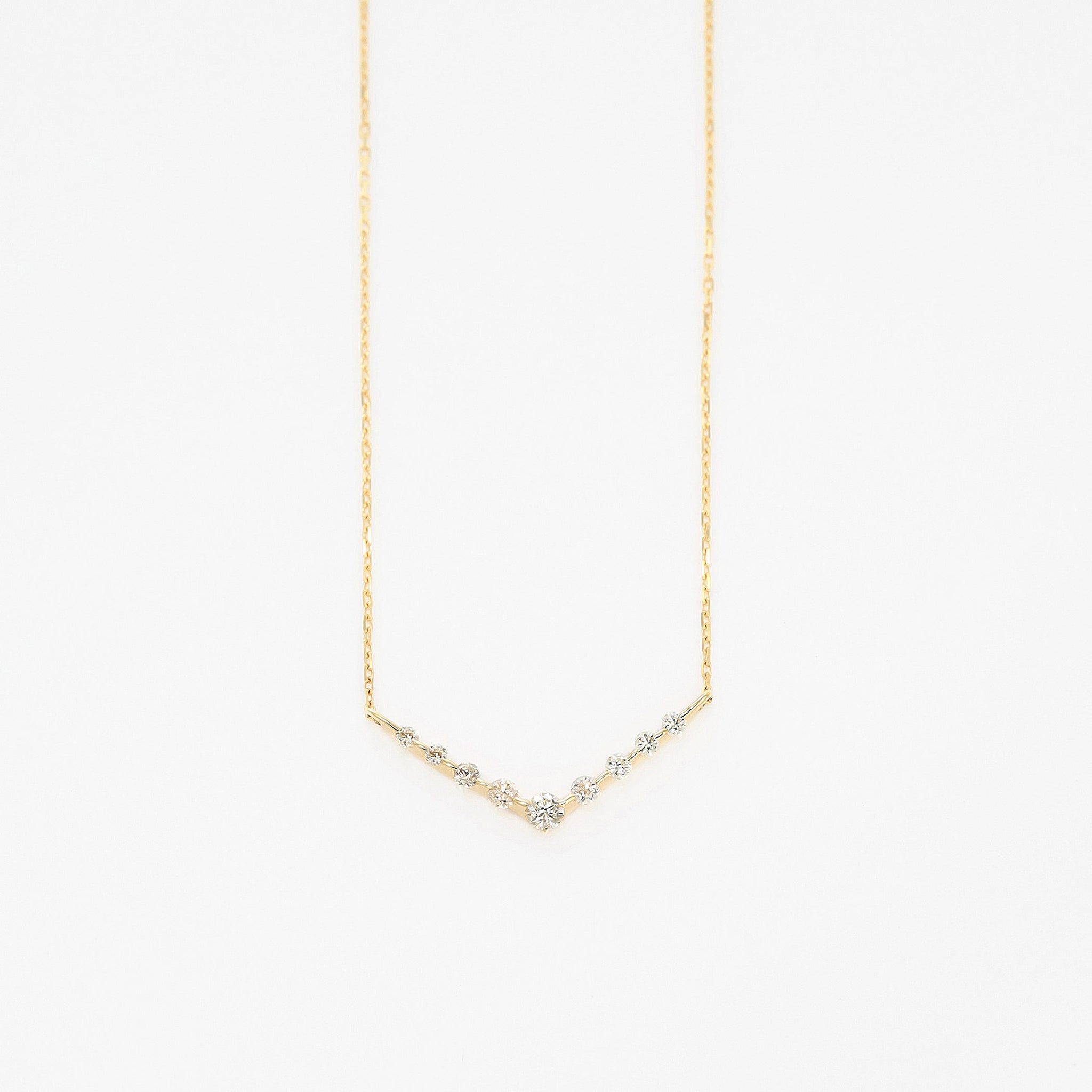 ダイヤモンドを並べたV字のラインが印象的なイエローゴールドのネックレス。