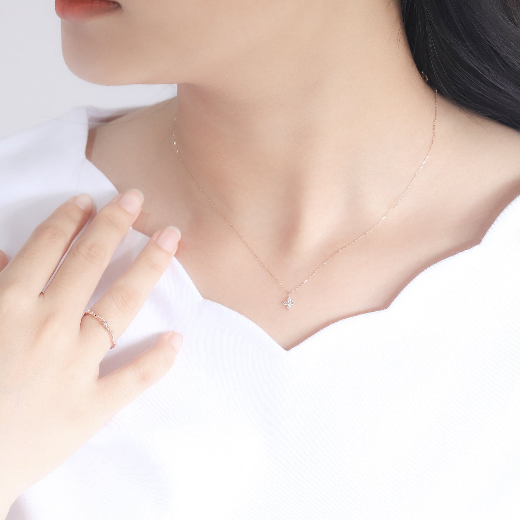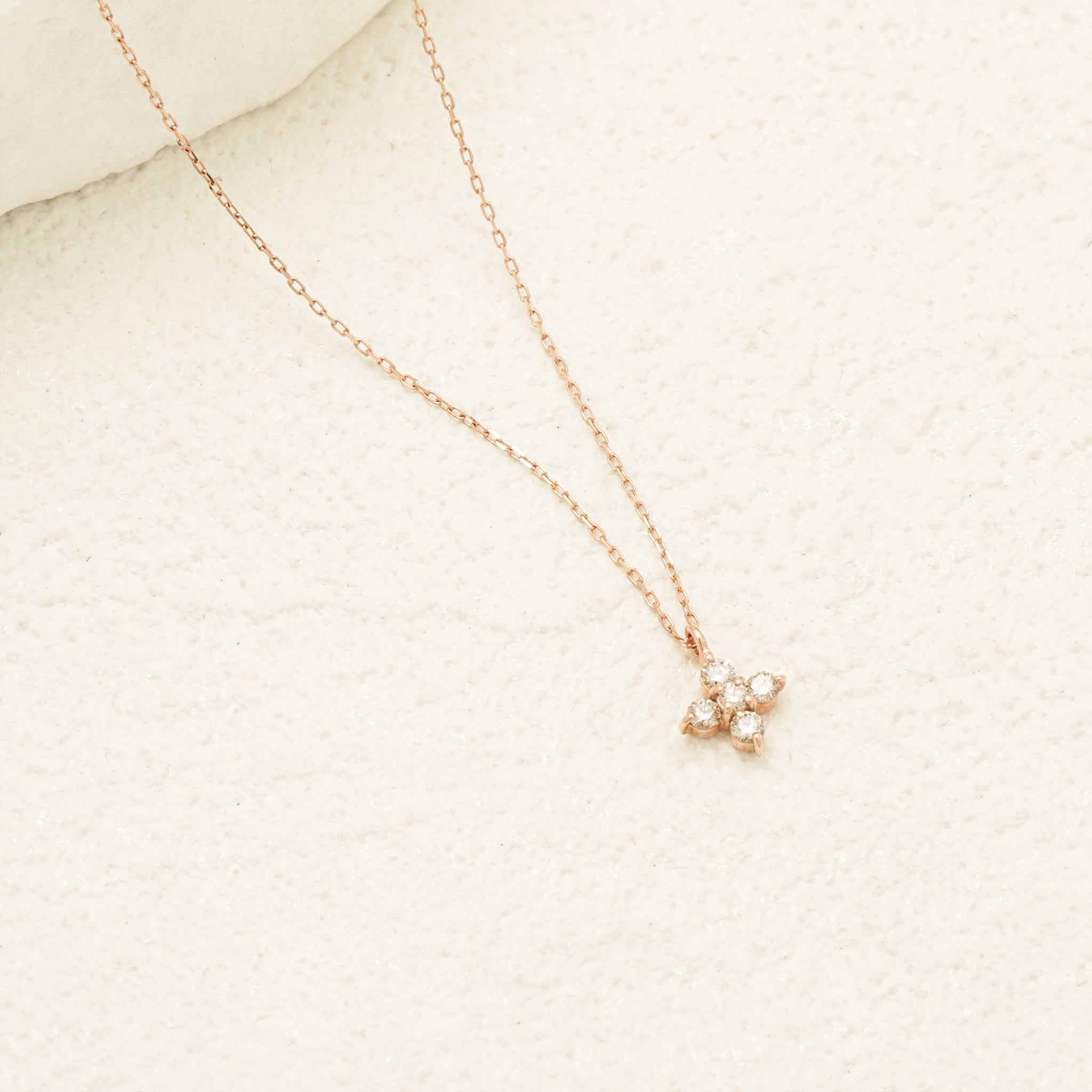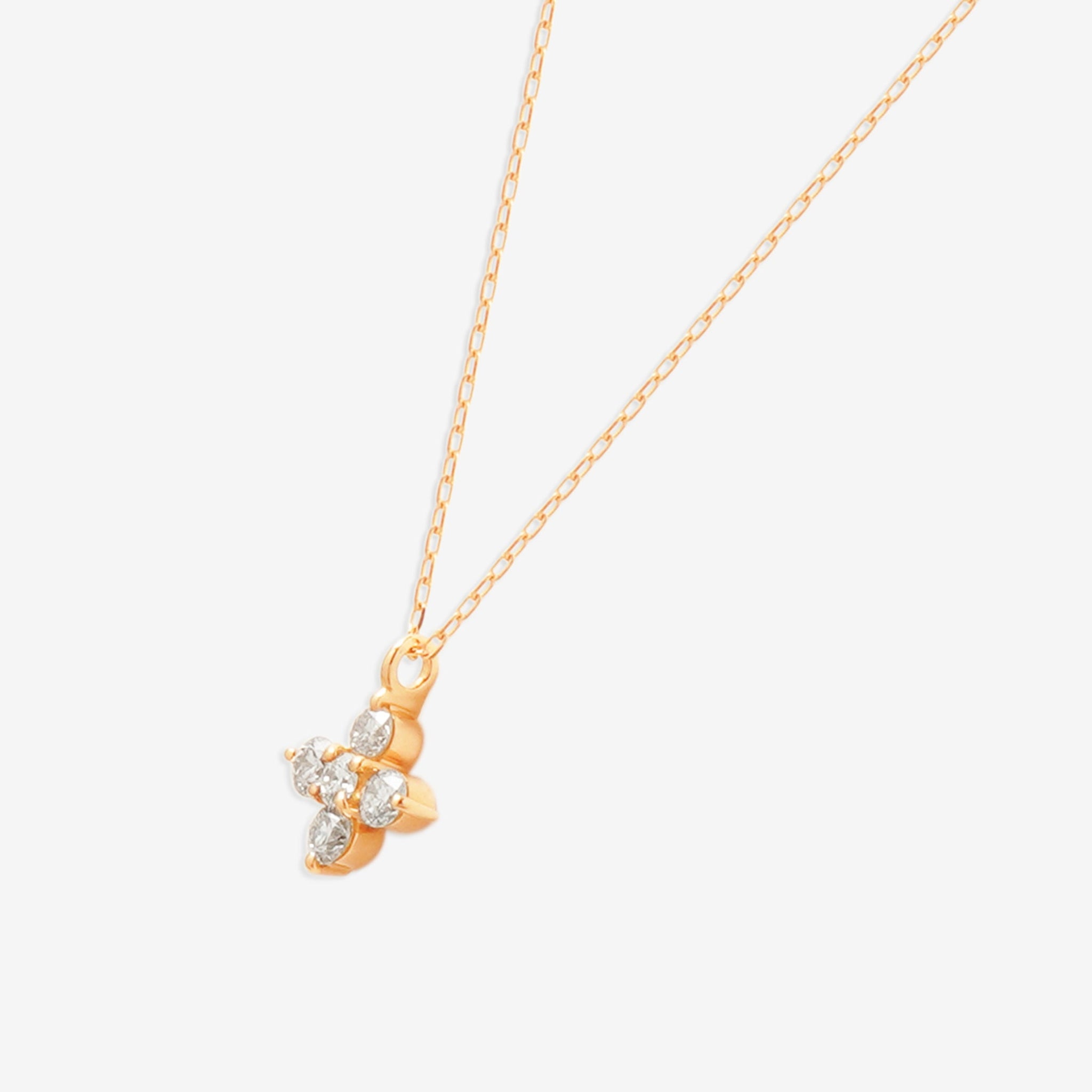 フラワーモチーフでダイヤモンドがきらめく、ピンクゴールドのネックレス。