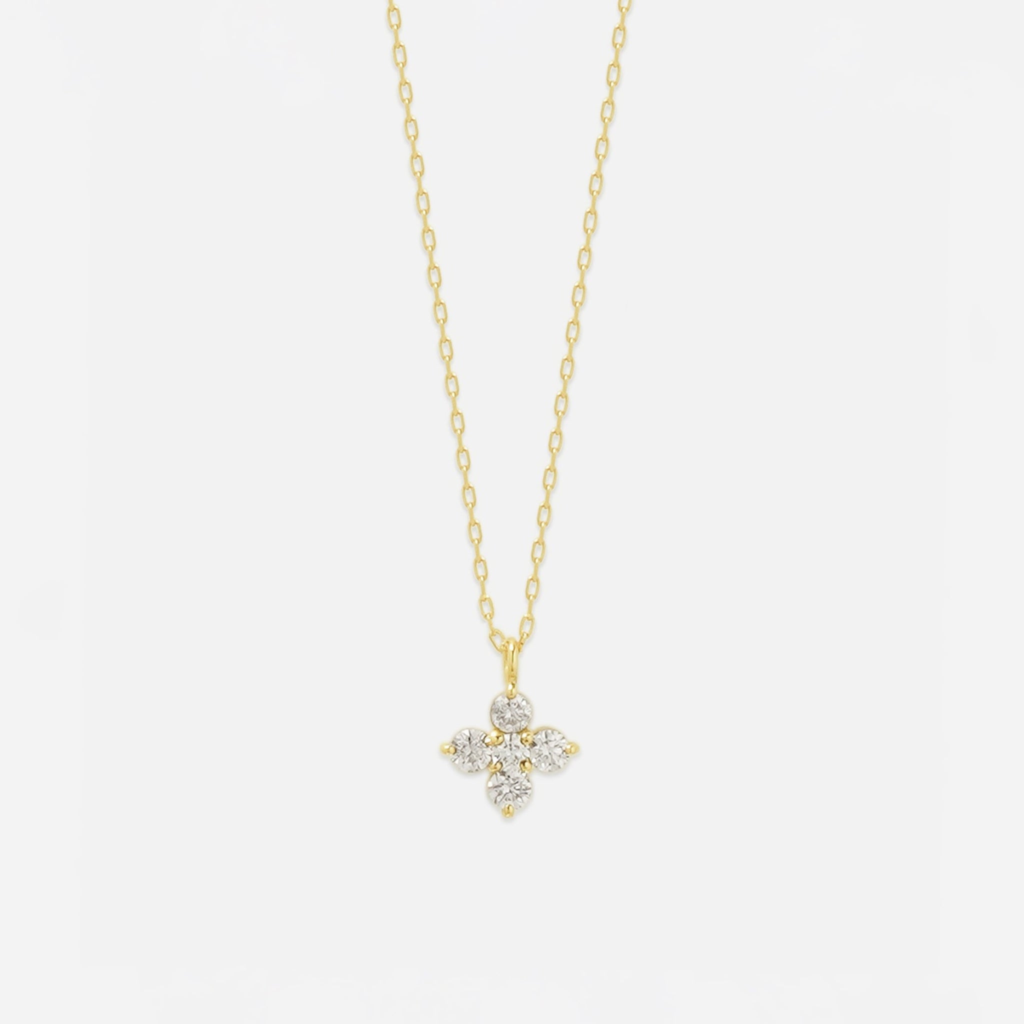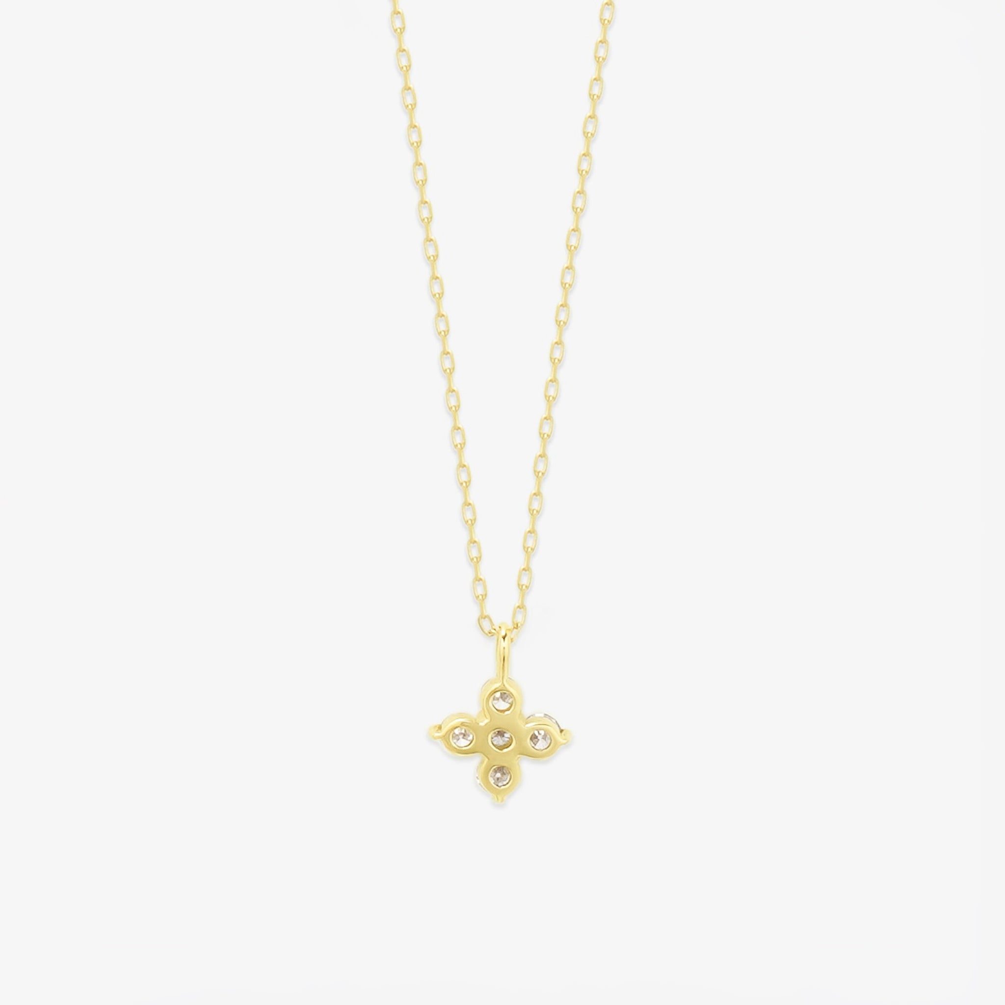 フラワーモチーフでダイヤモンドがきらめく、イエローゴールドのネックレス。