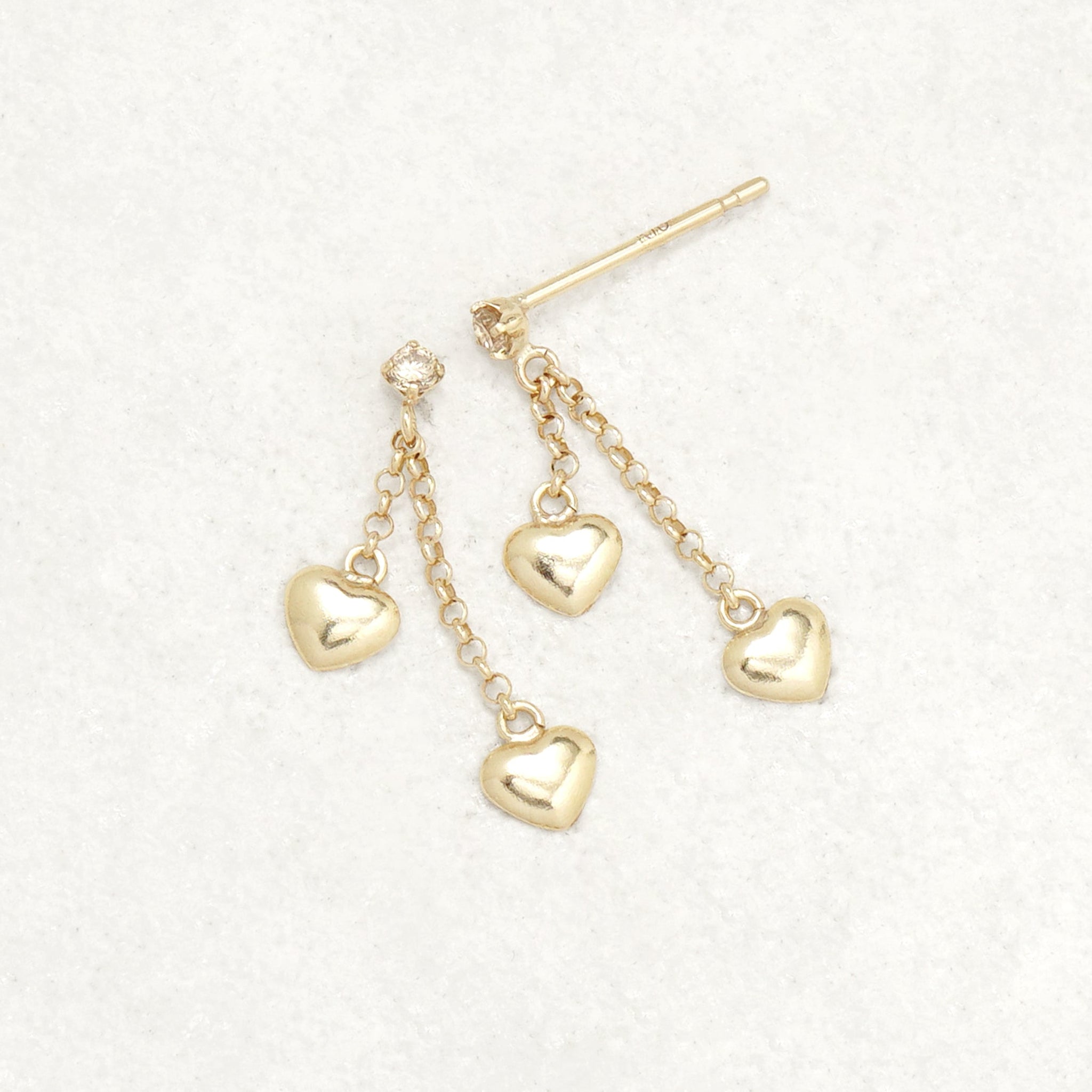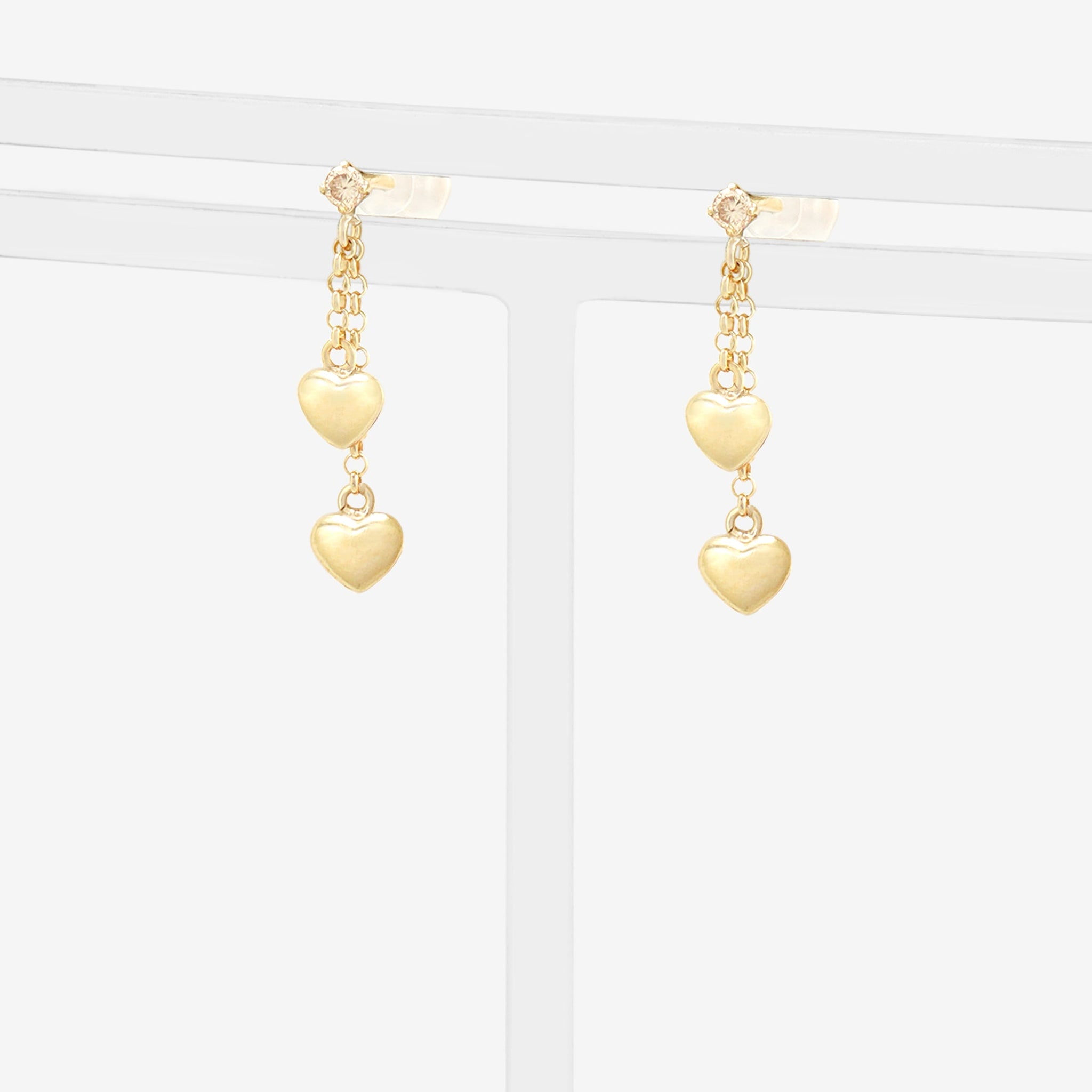 華やかで上品な輝きを放つ、イエローゴールドのハートピアス。