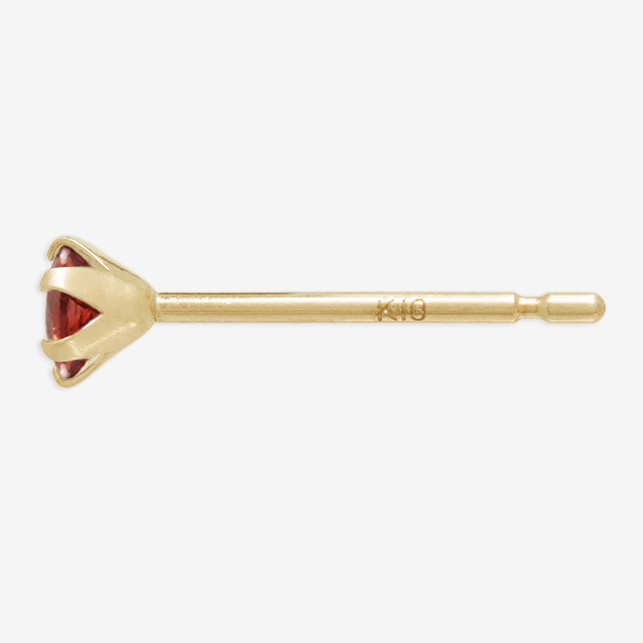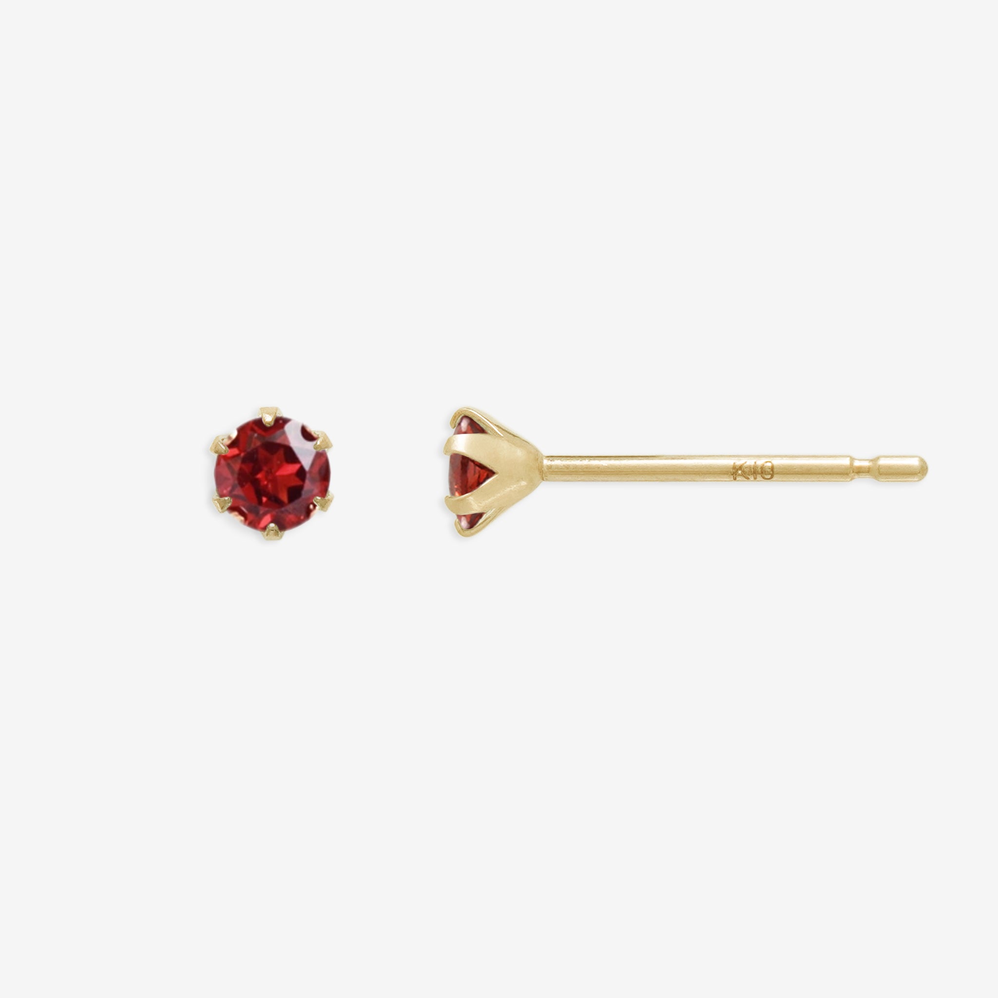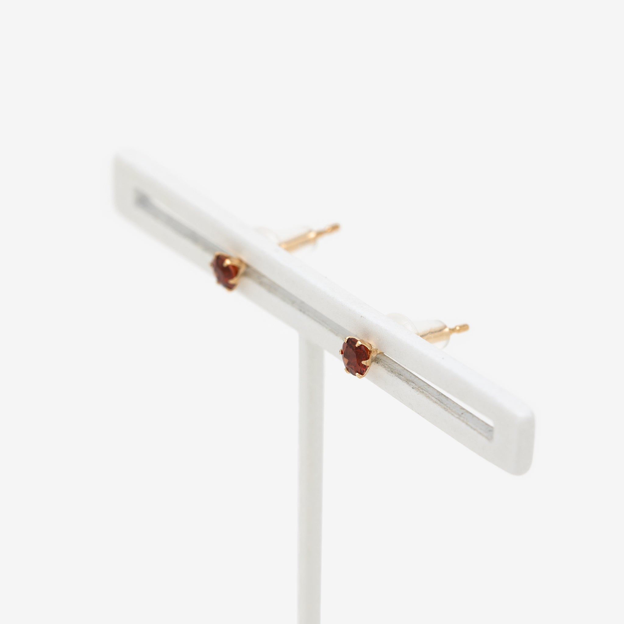 シンプルな一粒のスタッドピアスは、どんな装いにも合わせやすく、赤いガーネットが耳元のアクセントに。