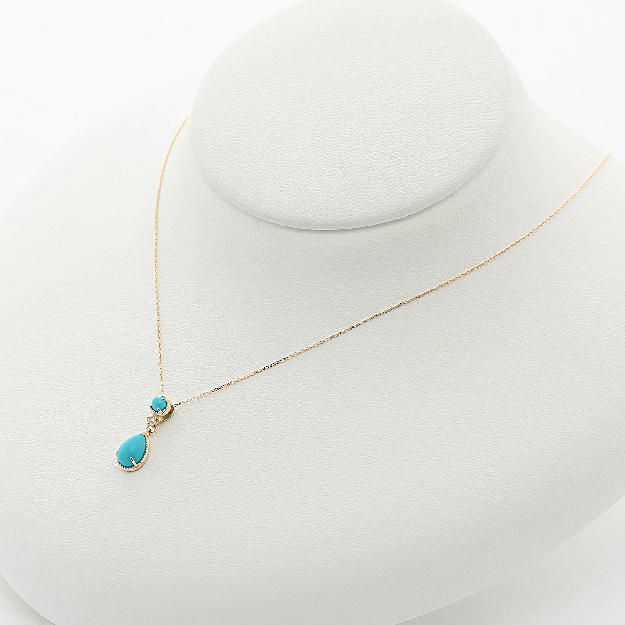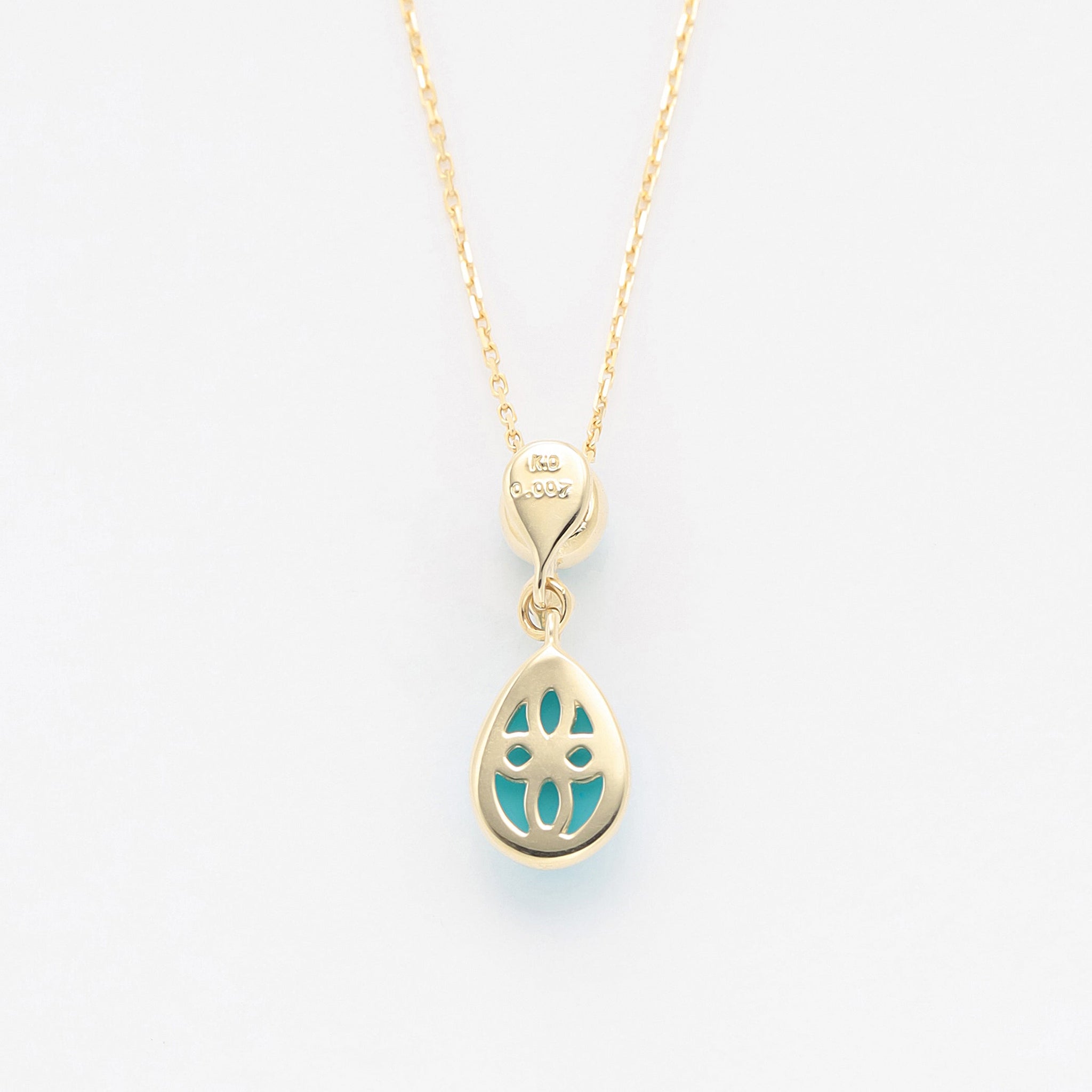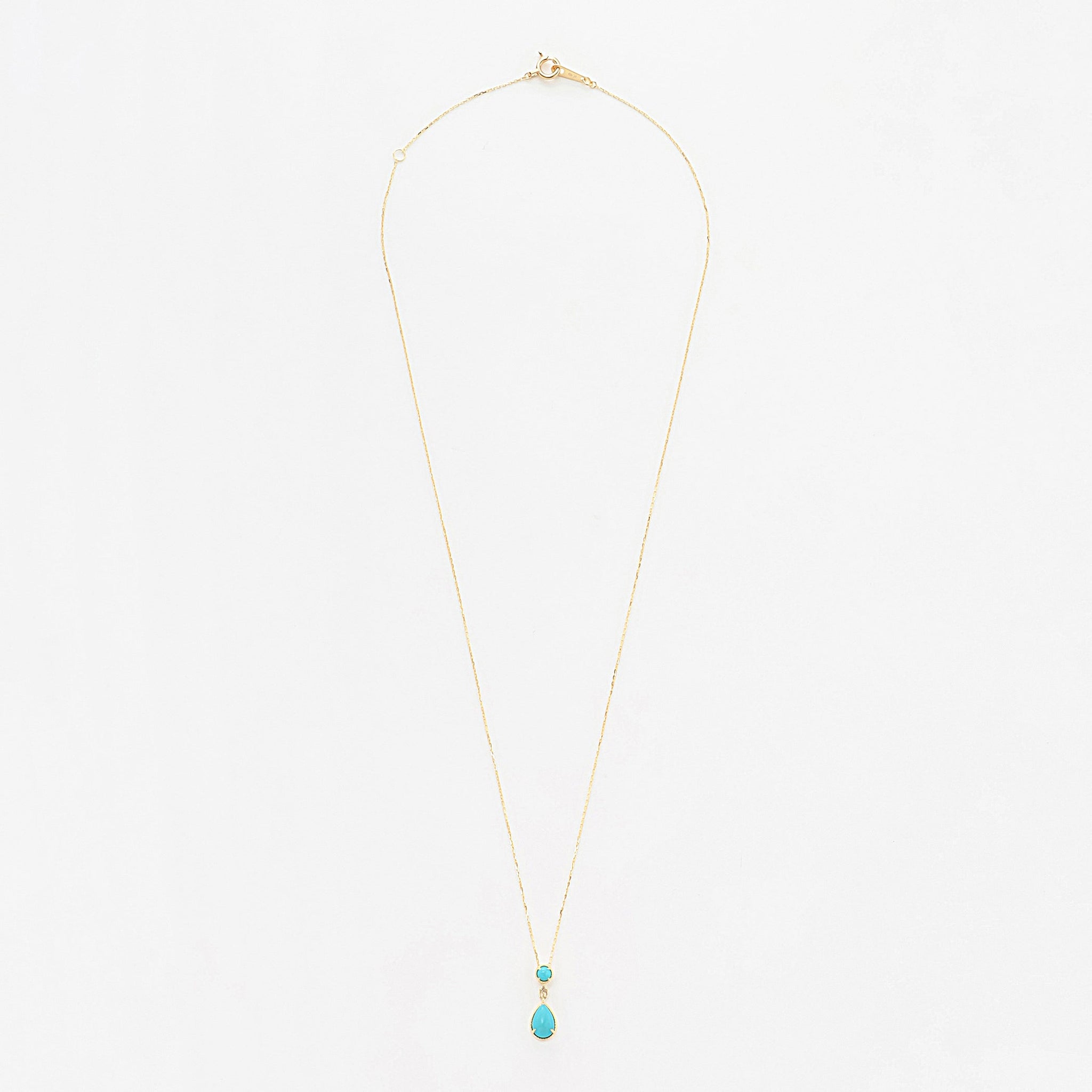 鮮やかなターコイズをイエローゴールドで包み込んだ、洗練されたネックレス。