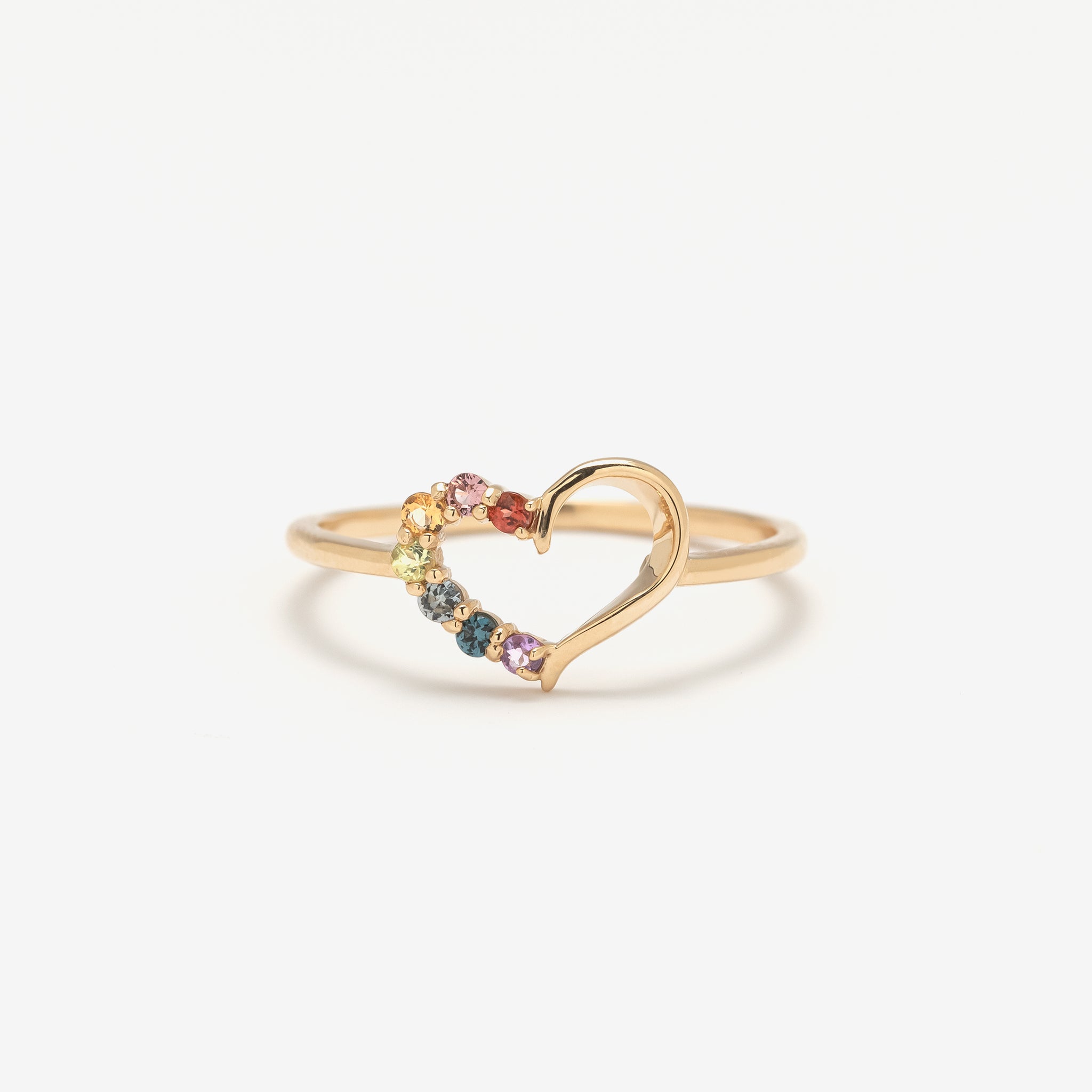 やわらかな輝きを放つイエローゴールドに、色とりどりの天然石をあしらったハートモチーフのネックレス。