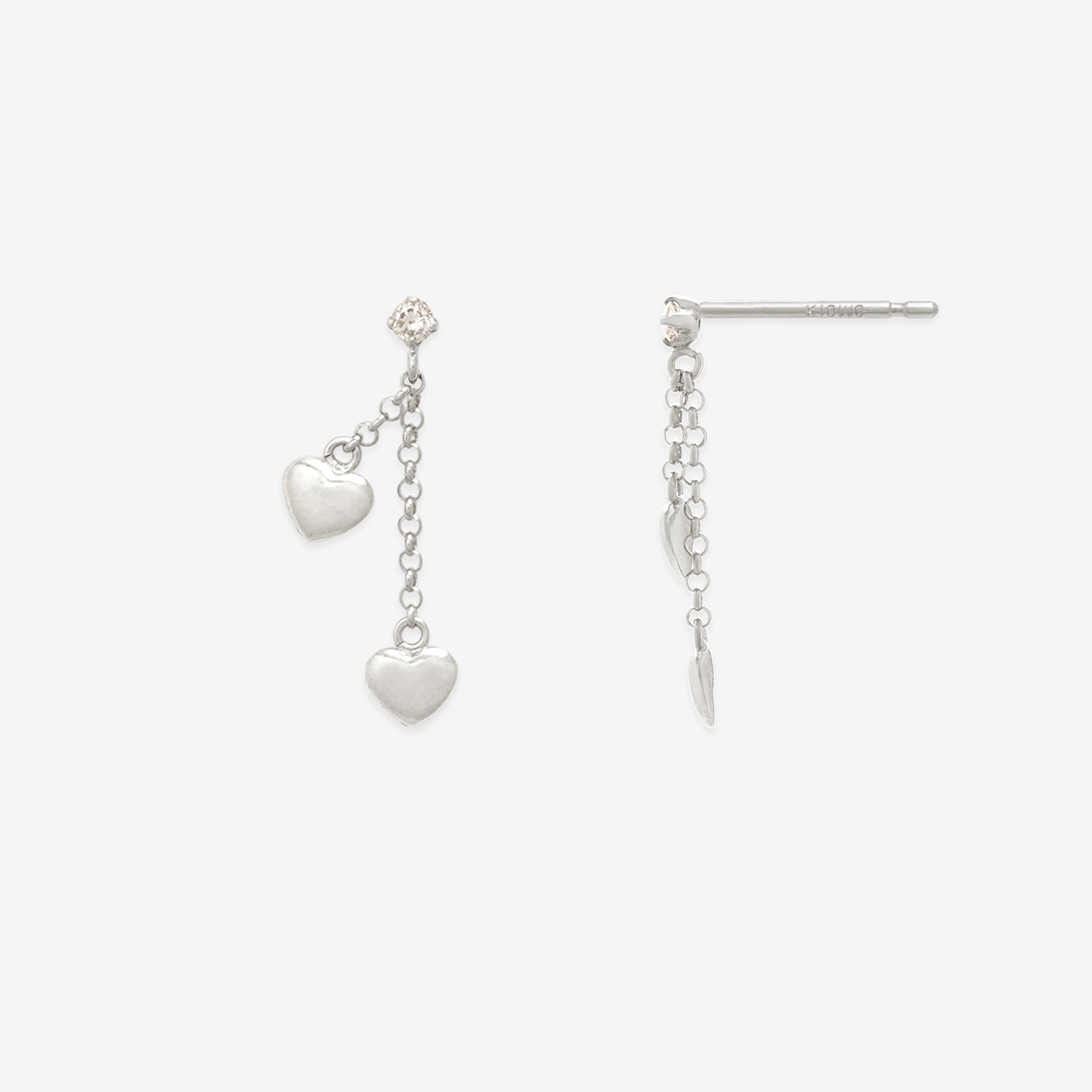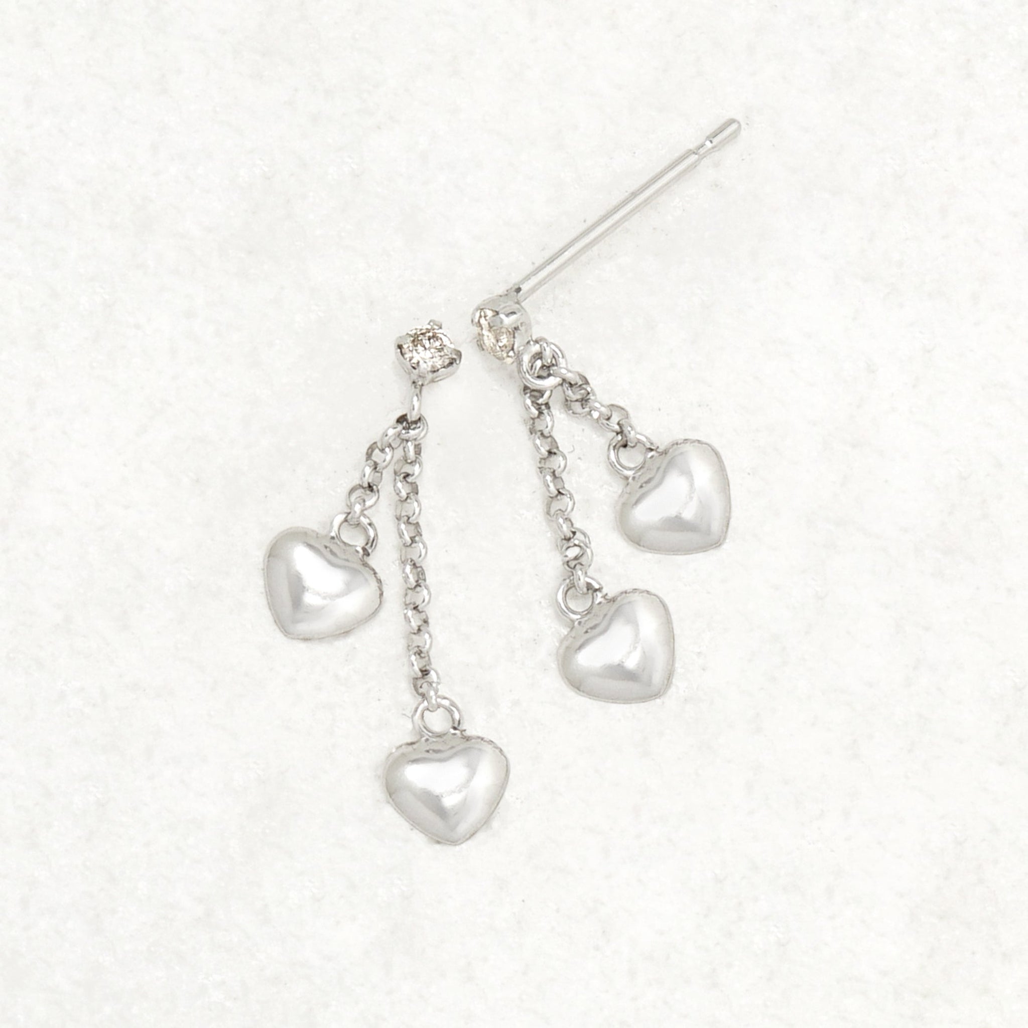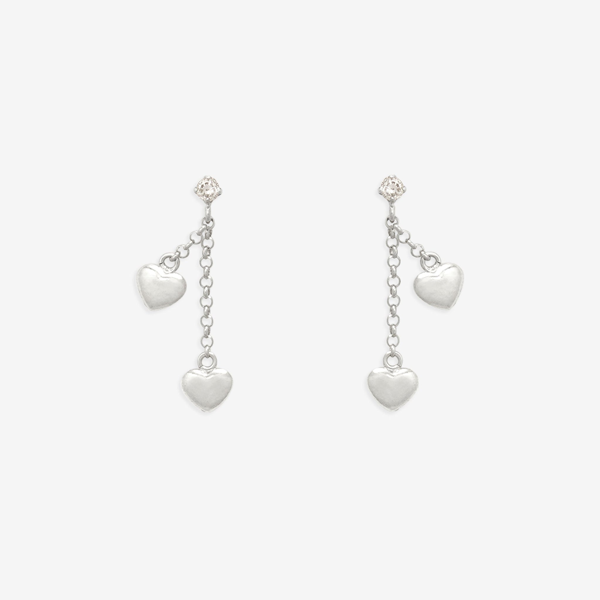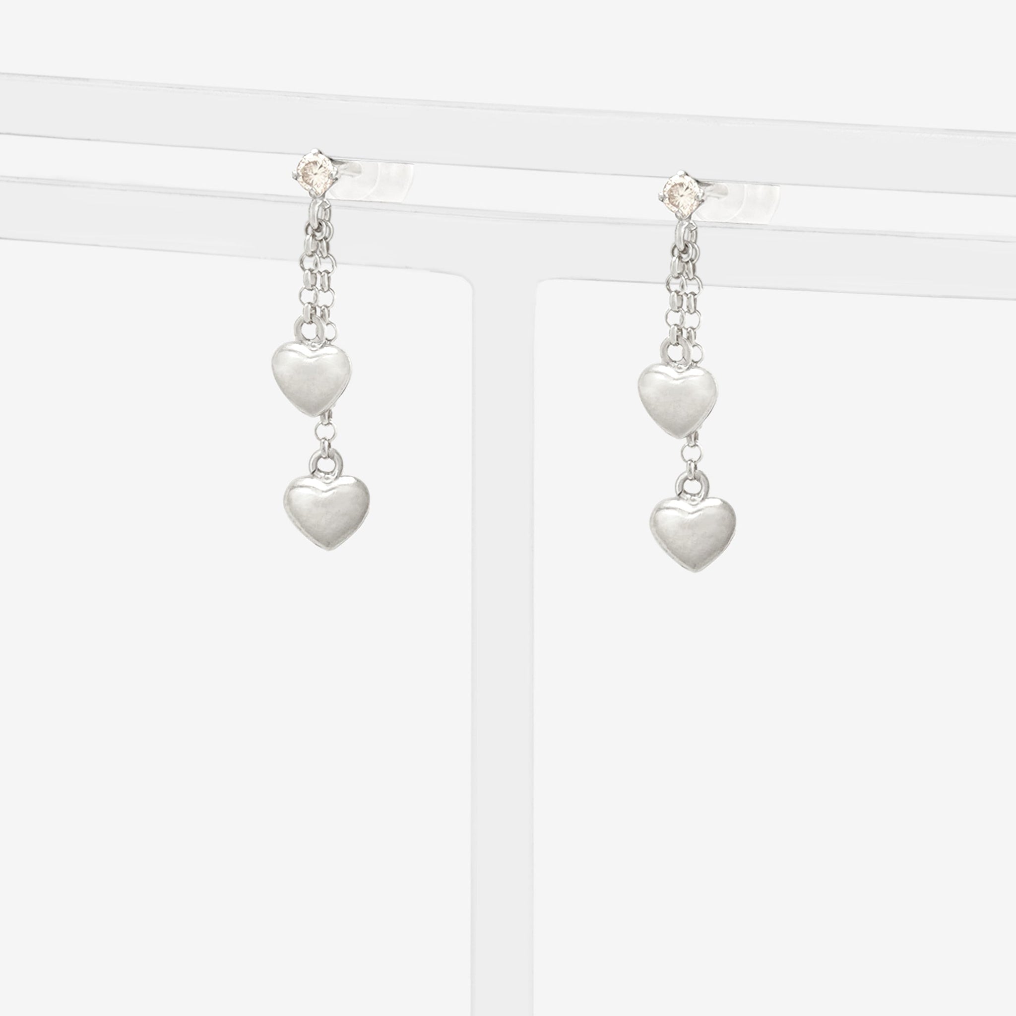清楚で洗練された輝きを放つ、ホワイトゴールドのハートピアス。