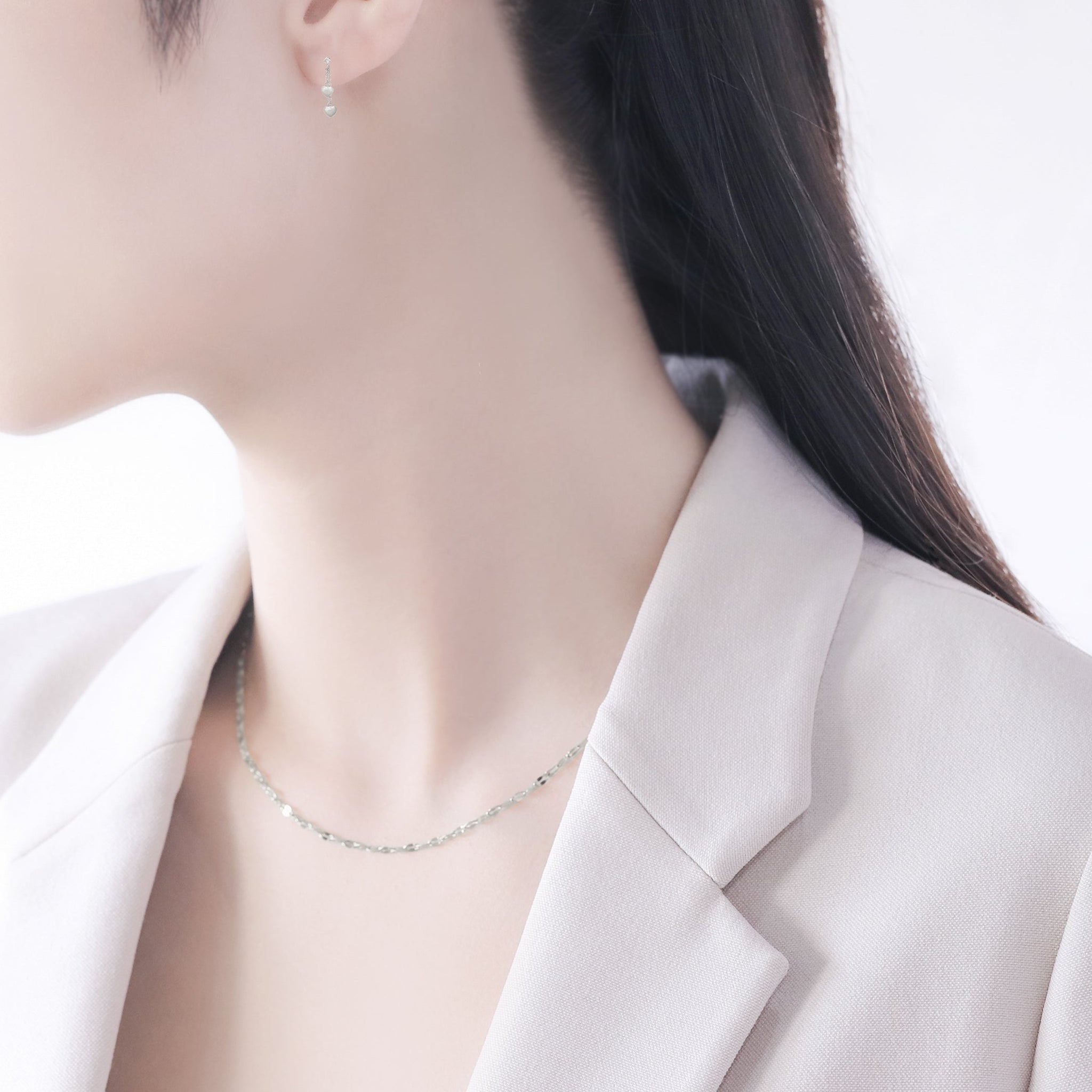 シルバーのように澄んだ輝きが肌を明るく見せ、フォーマルにもカジュアルにも映えるデザインです。
