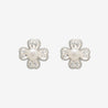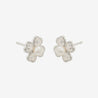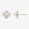 四つ葉のクローバーに淡水パールをあしらった、上品なホワイトゴールドのピアス。