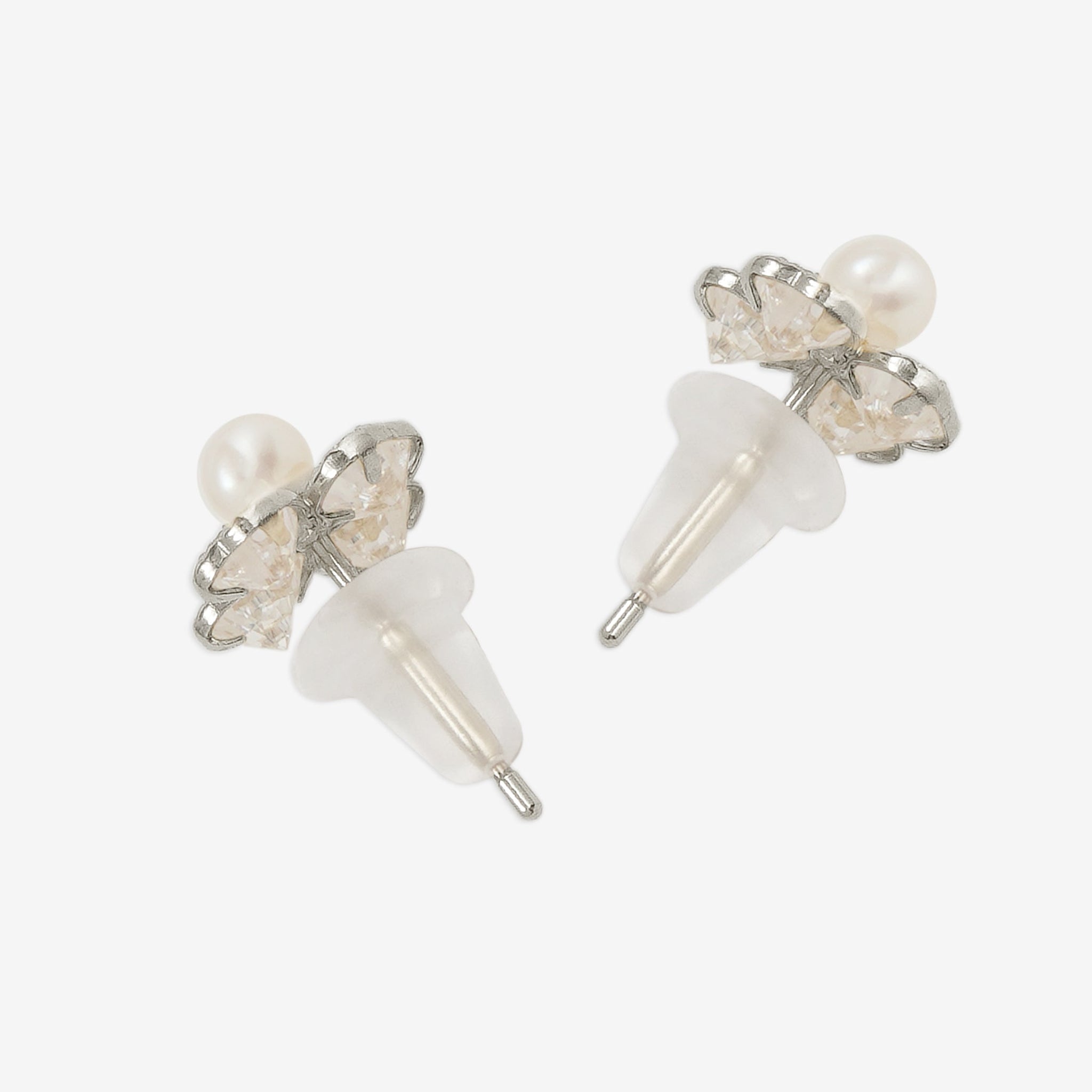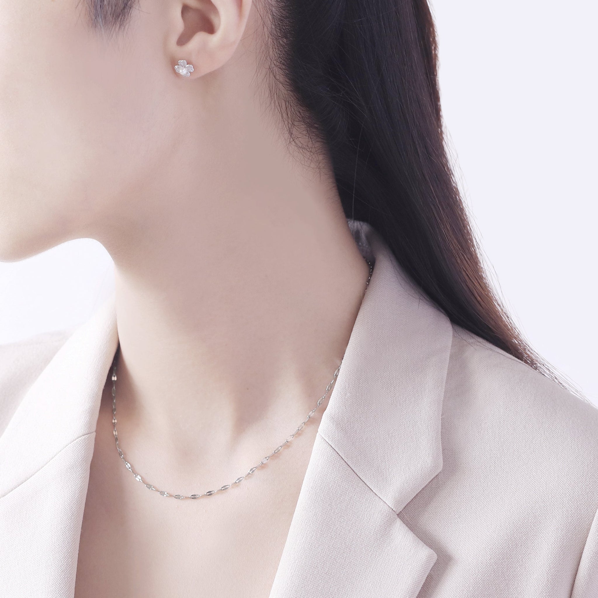 ホワイトゴールドの清楚な輝きが、耳元にさりげない上品さをプラス。