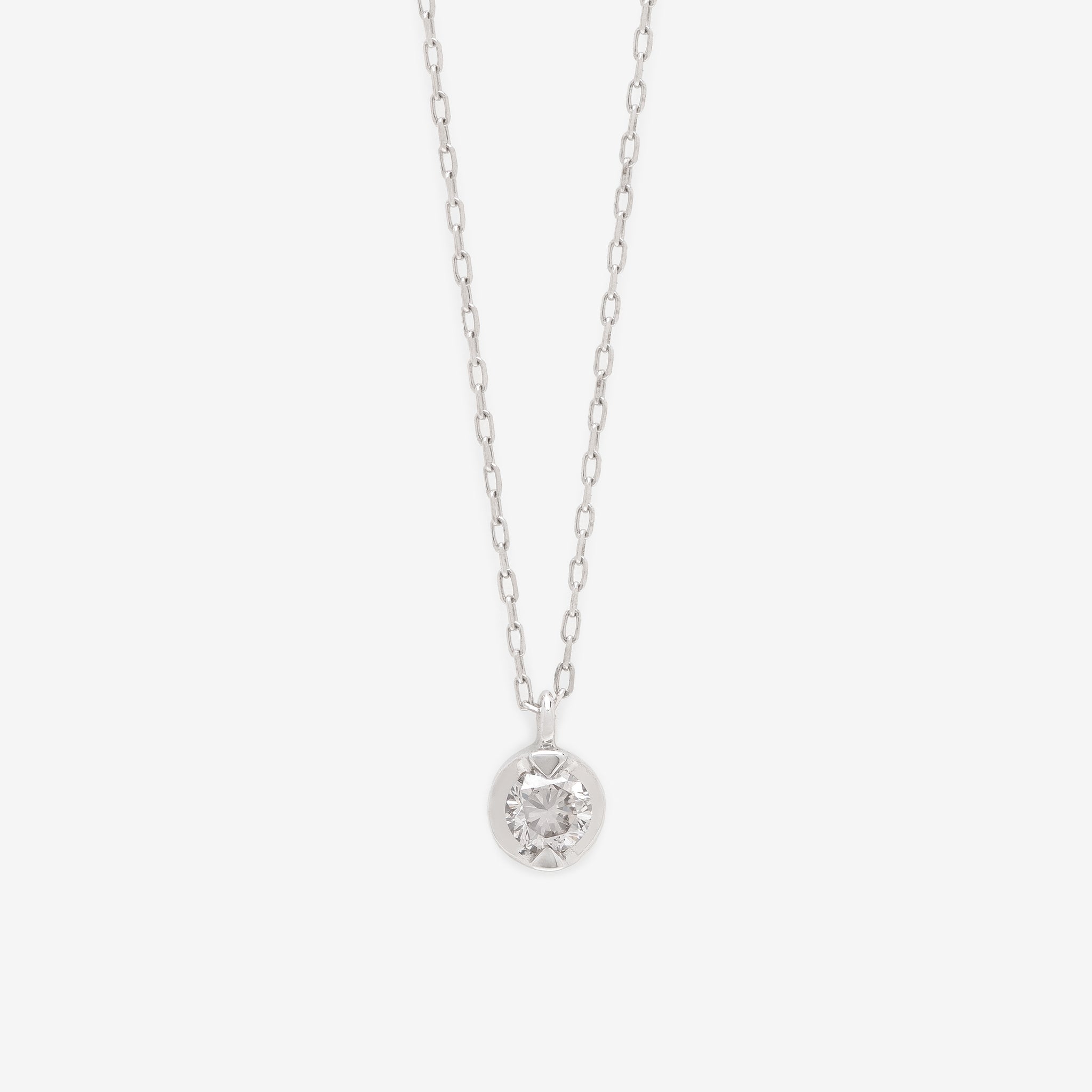 ダイヤモンドを留める2点の爪がすっきりとした印象の一粒ダイヤモンドネックレス。
