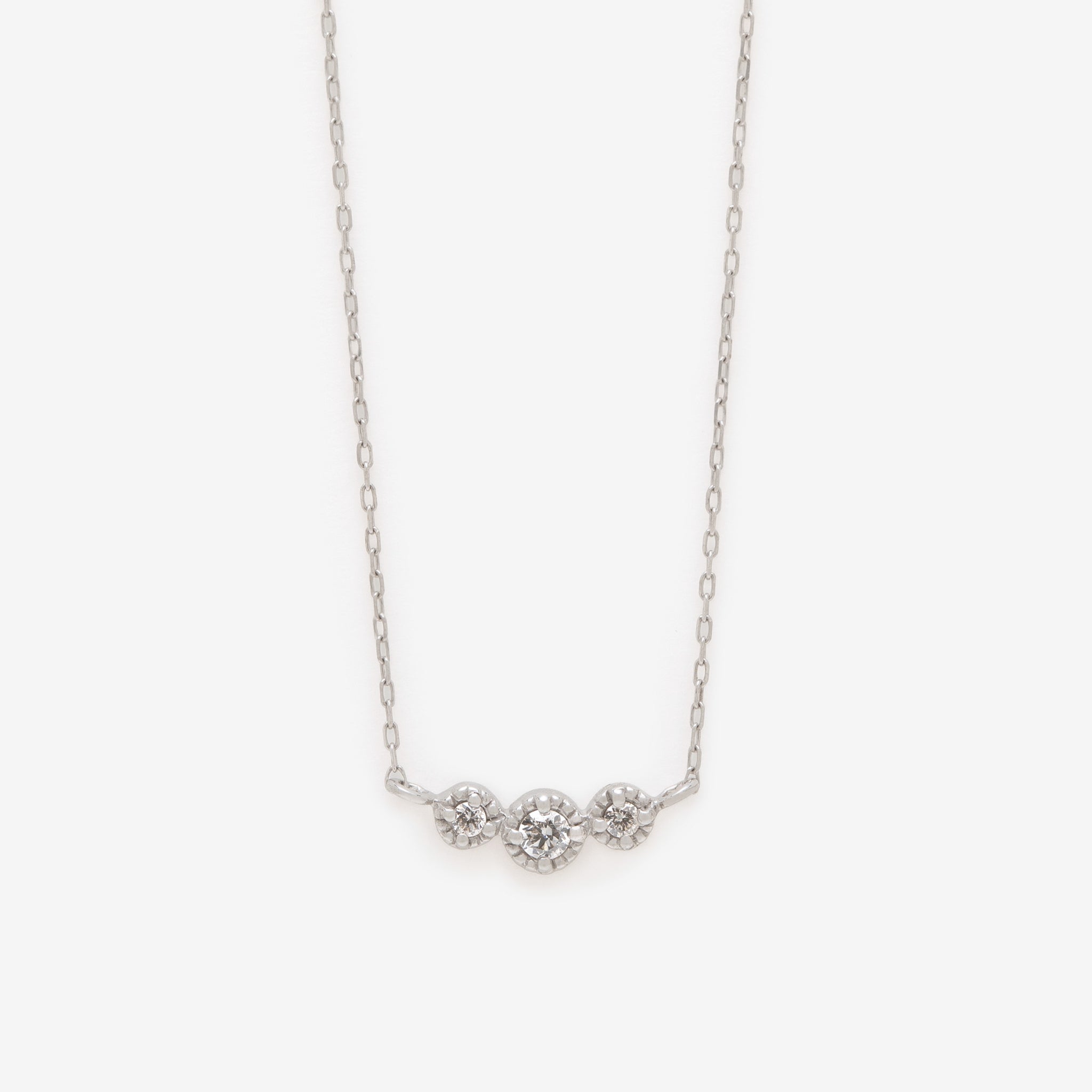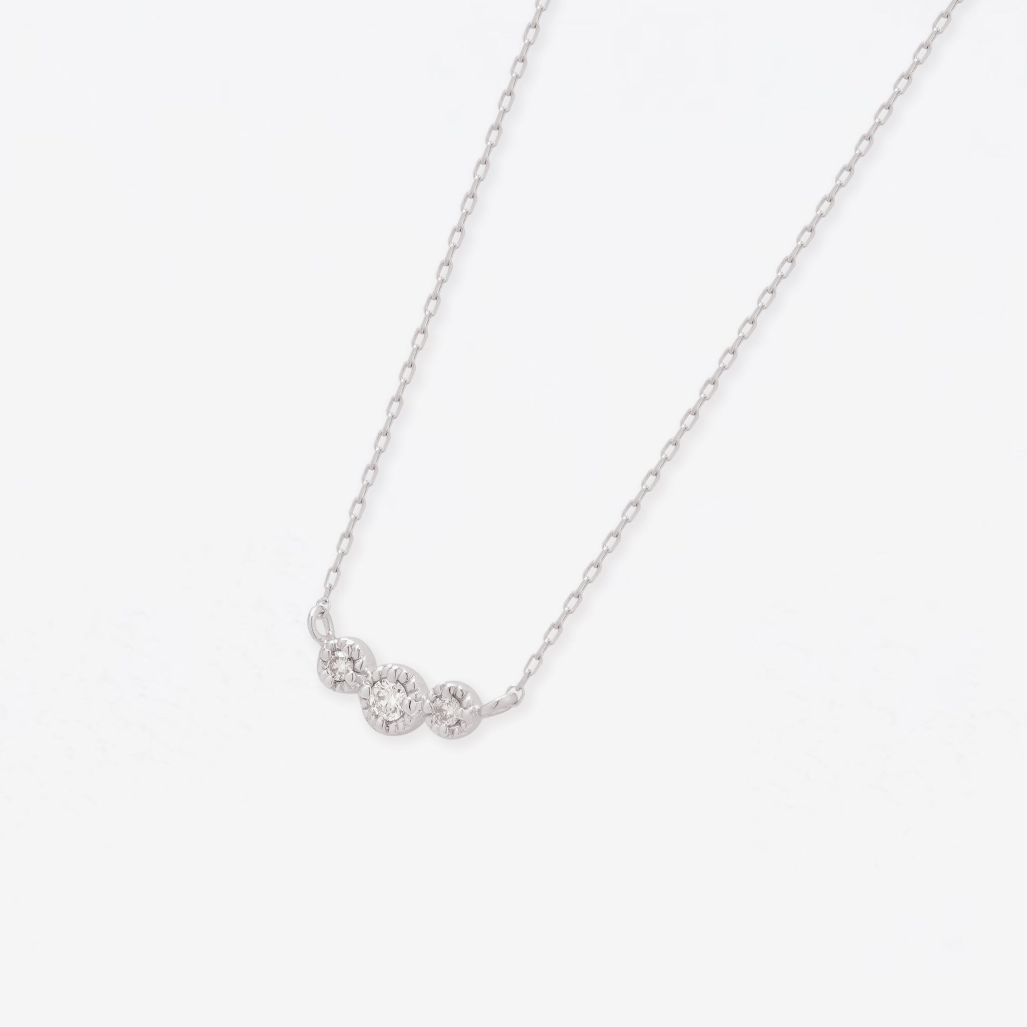 美しい輝きが永久的に続くダイヤモンドをシンプルにデザインしたホワイトゴールドのネックレス。