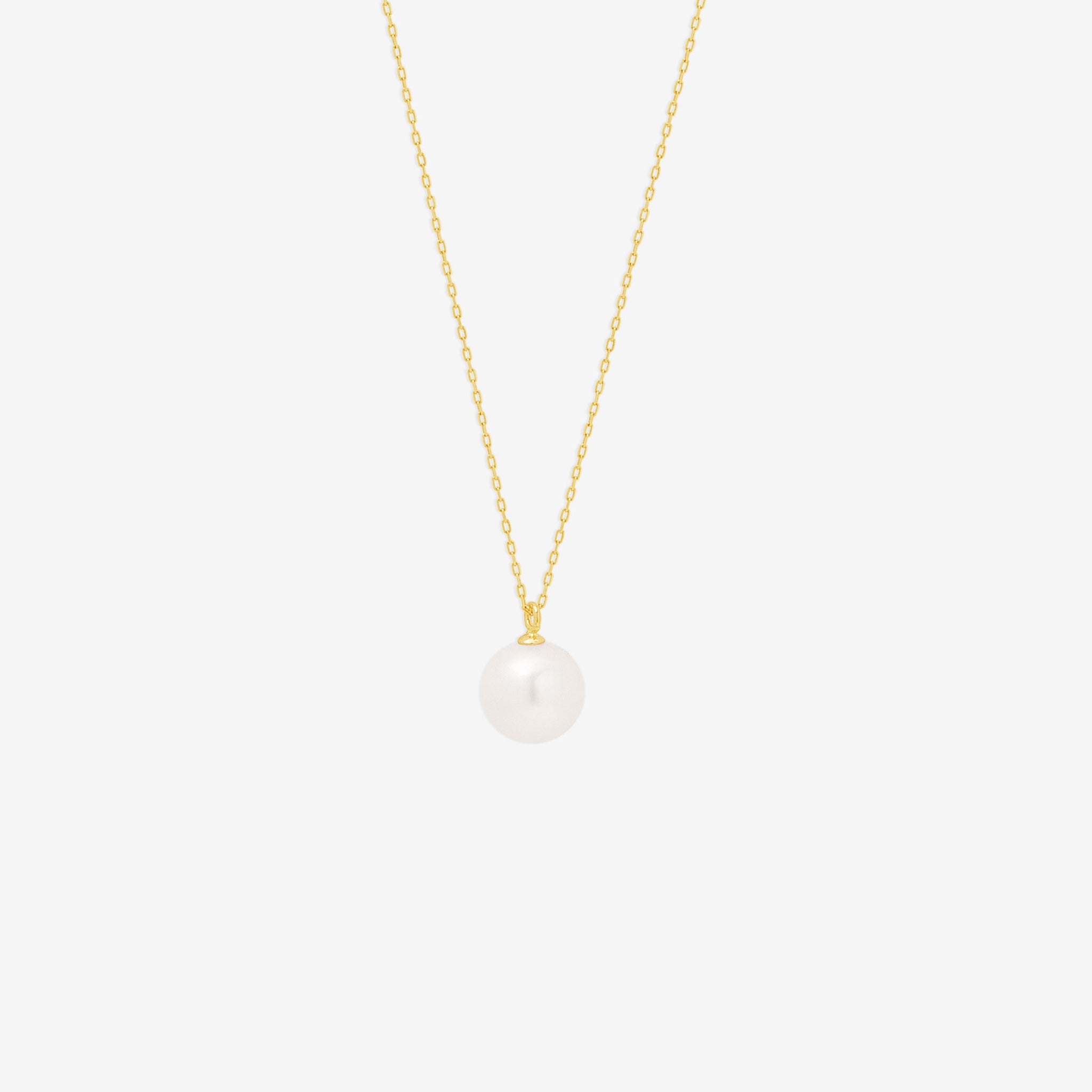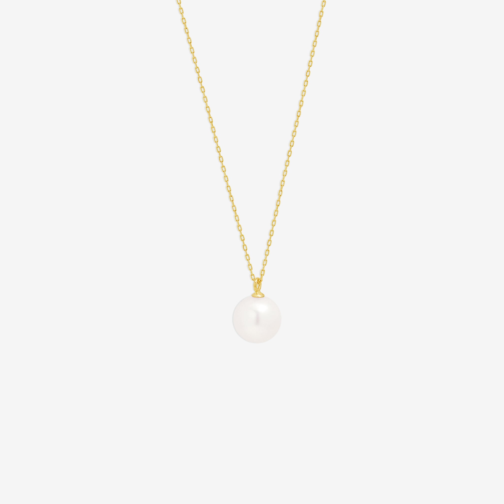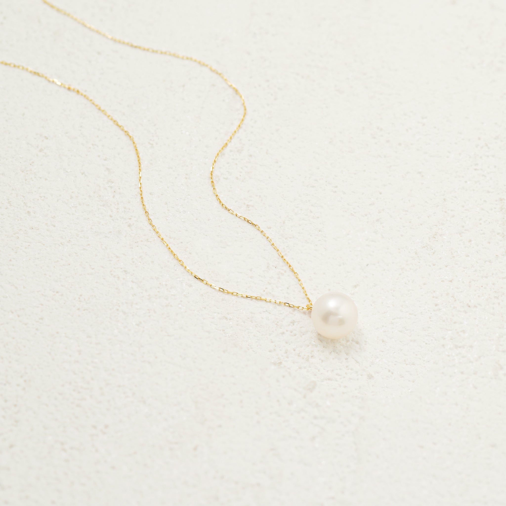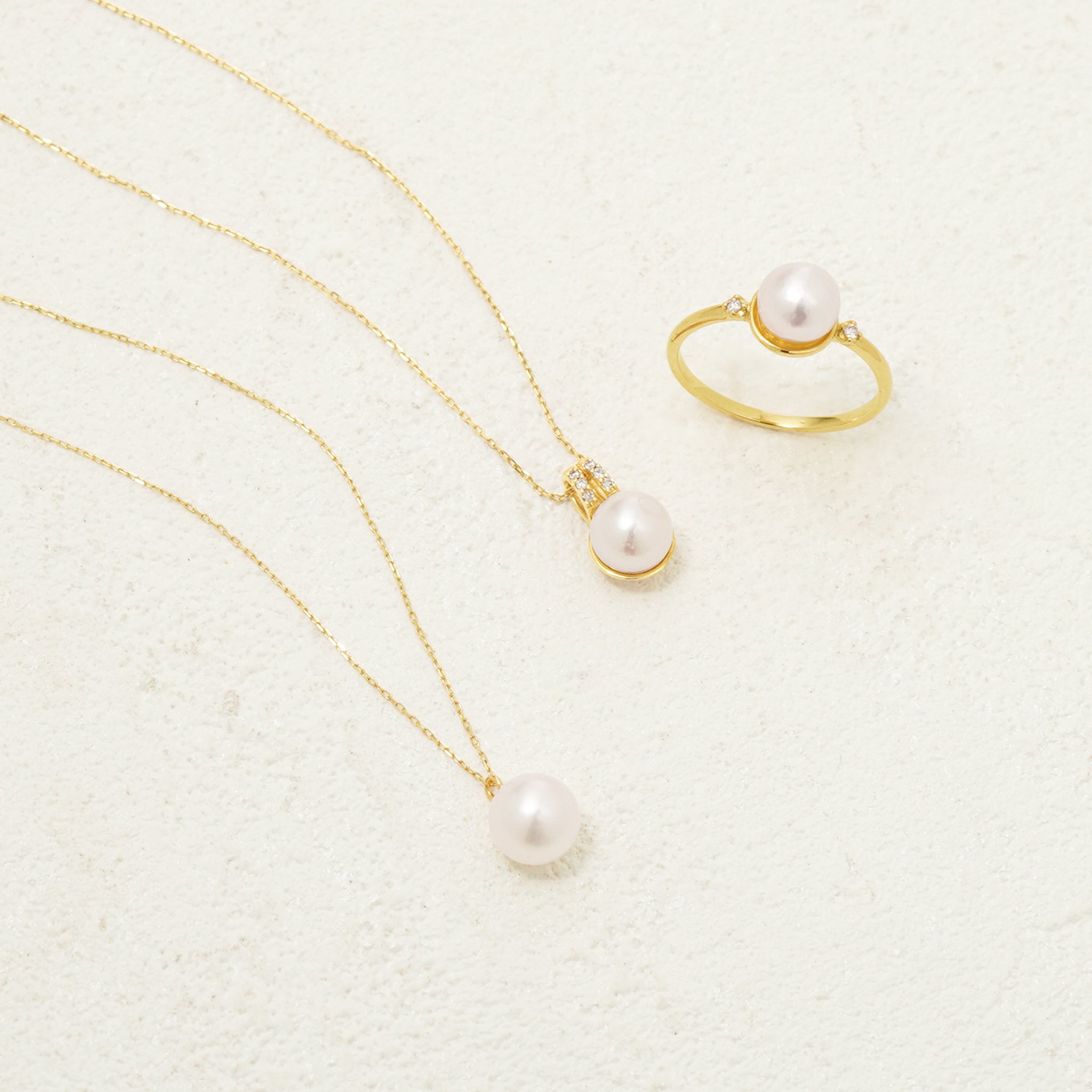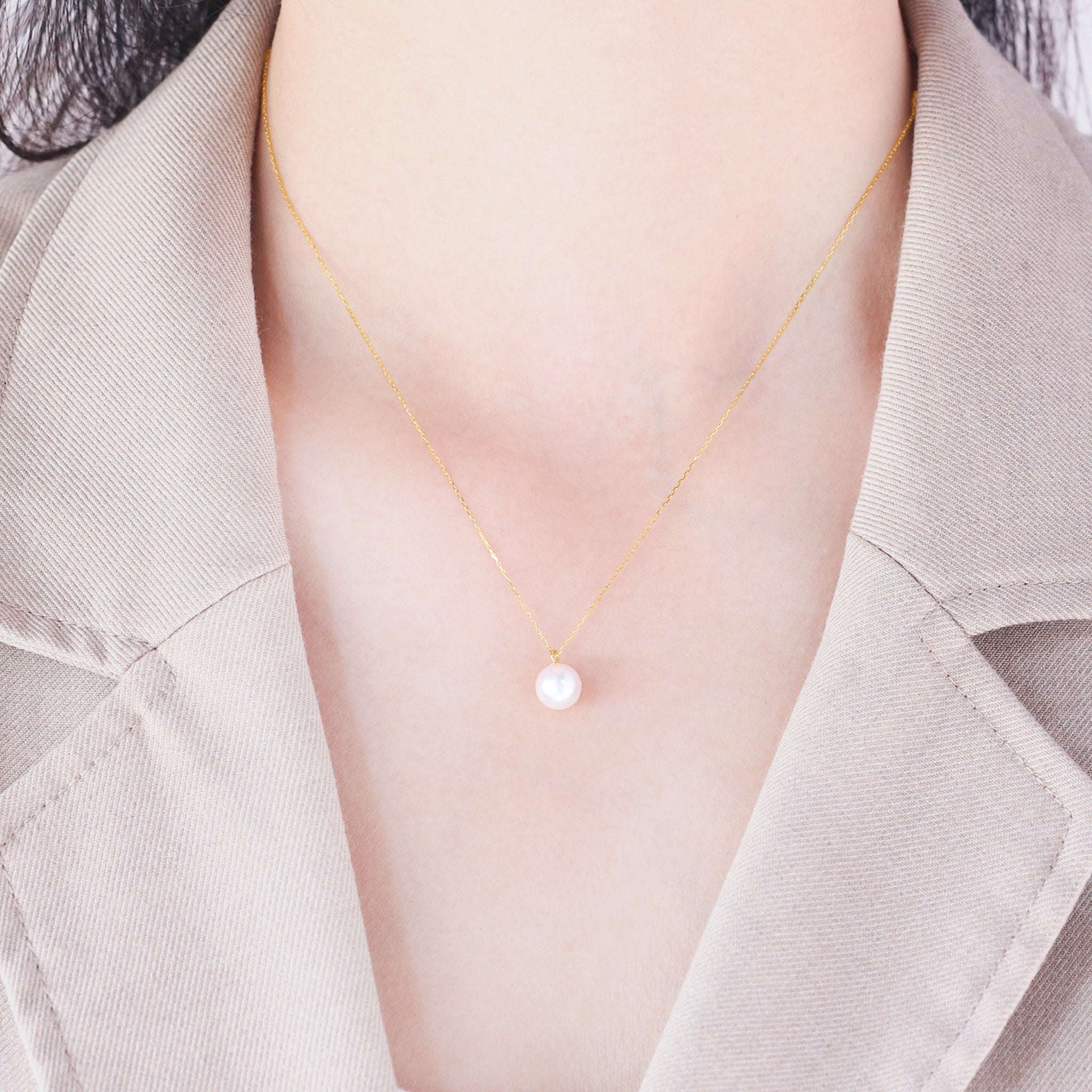 1粒のあこや真珠を使用した、イエローゴールドのネックレス。