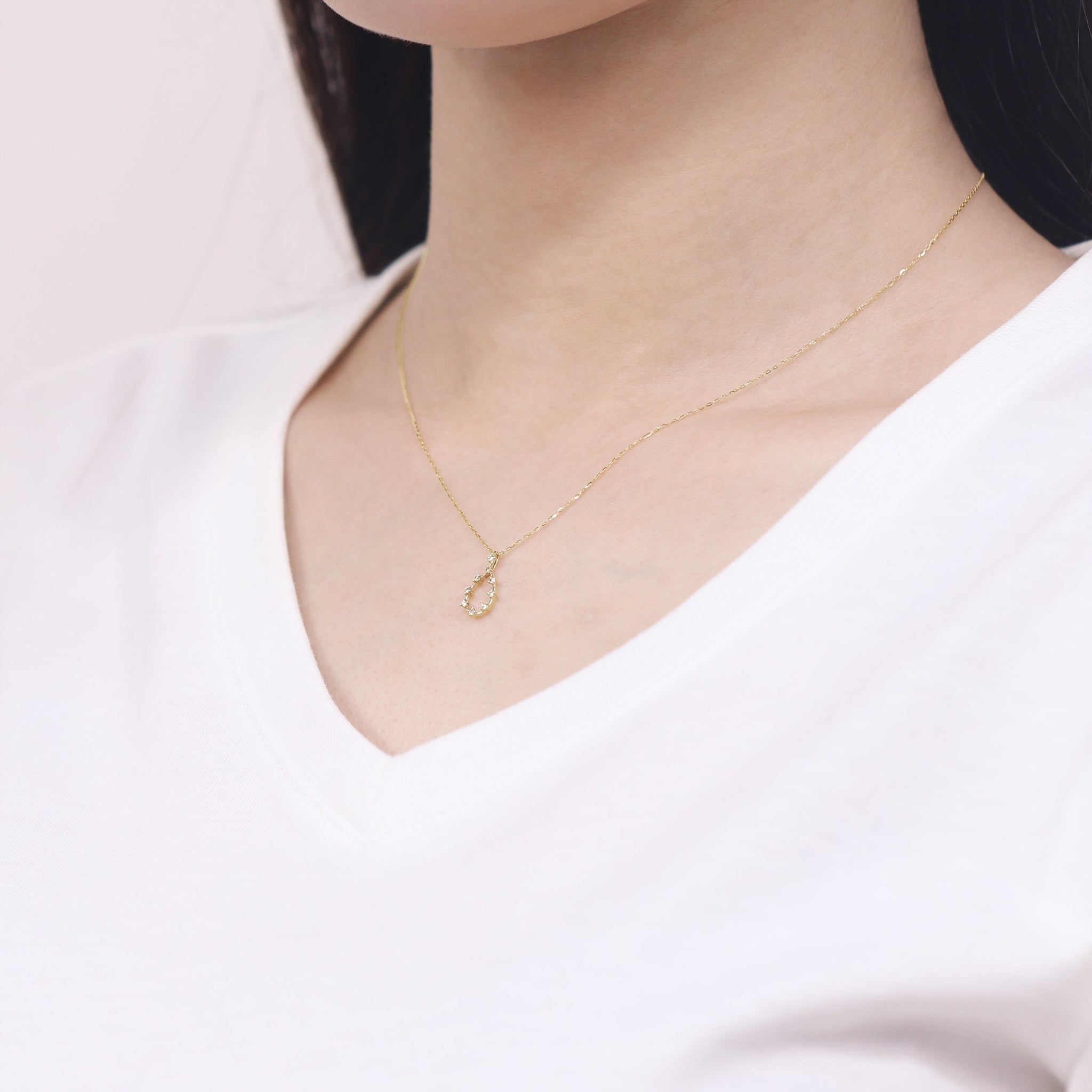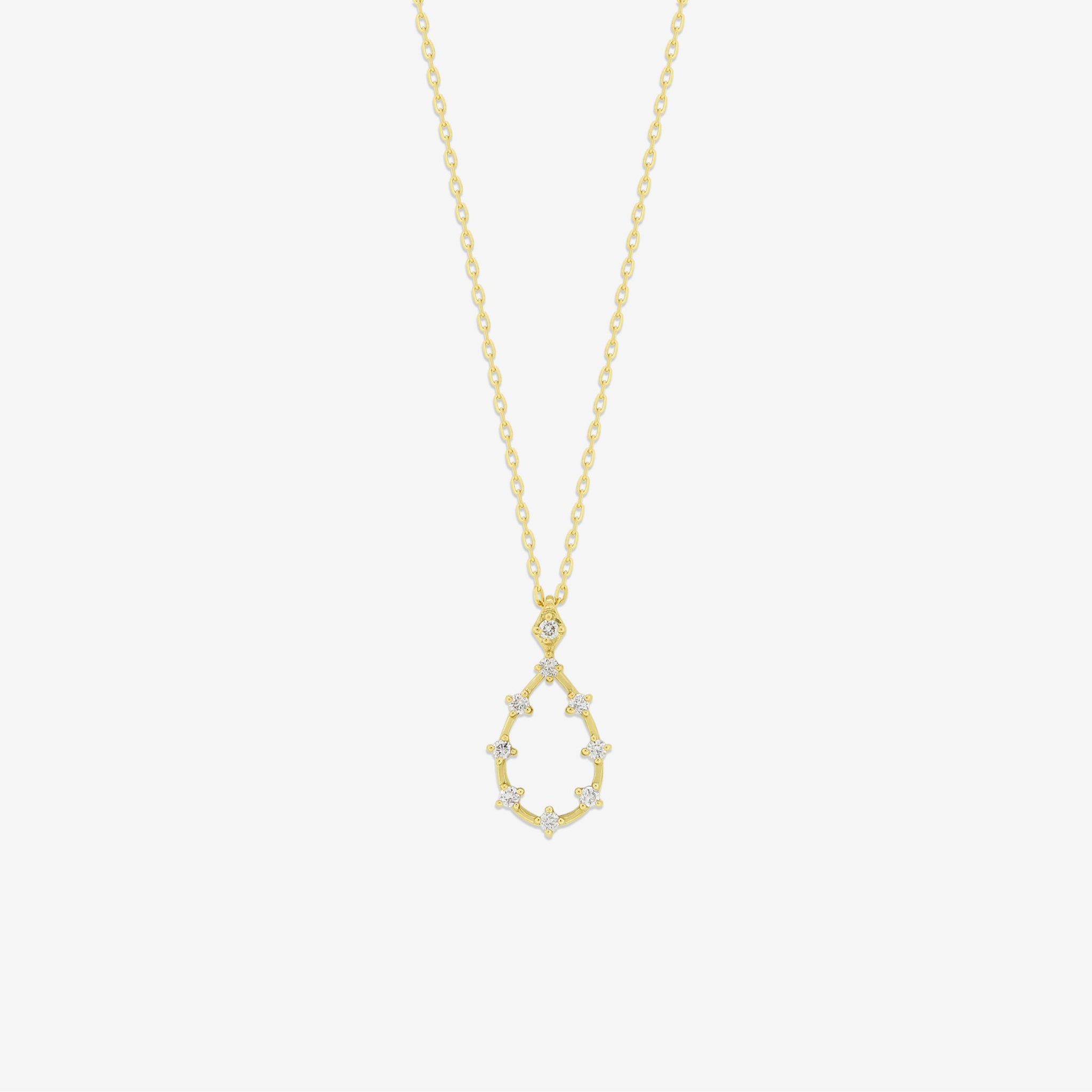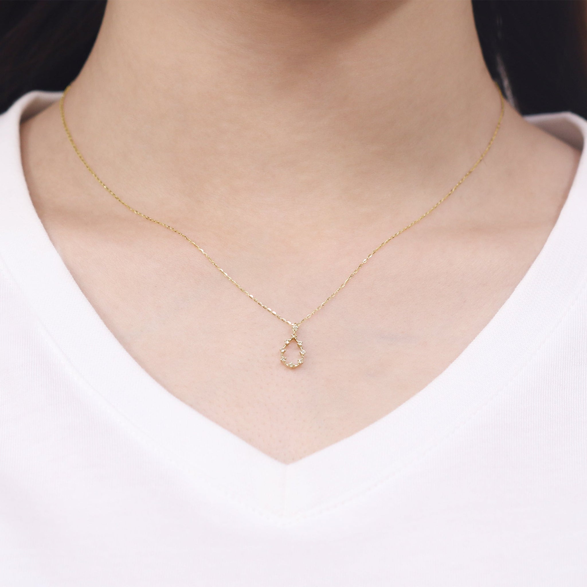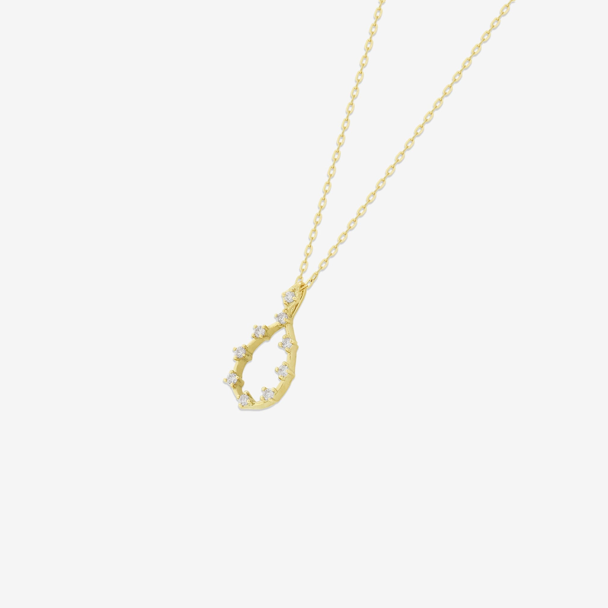 しずくのフォルムにダイヤモンドの繊細な輝きを閉じ込めた、イエローゴールドのネックレス。