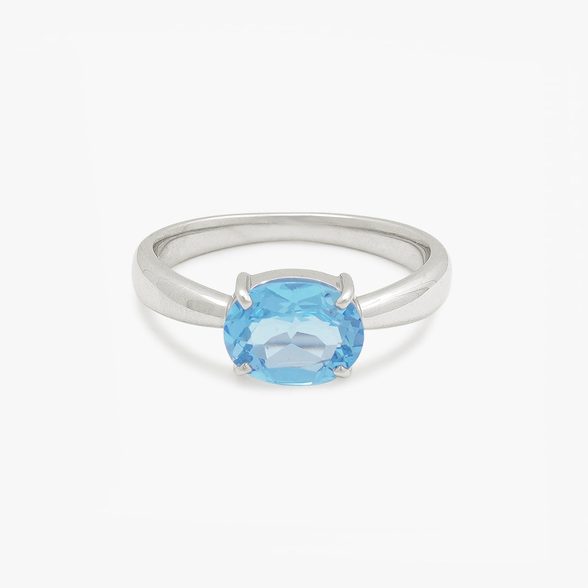 透明感のあるブルートパーズをセンターにあしらった、シンプルで洗練されたデザイン。