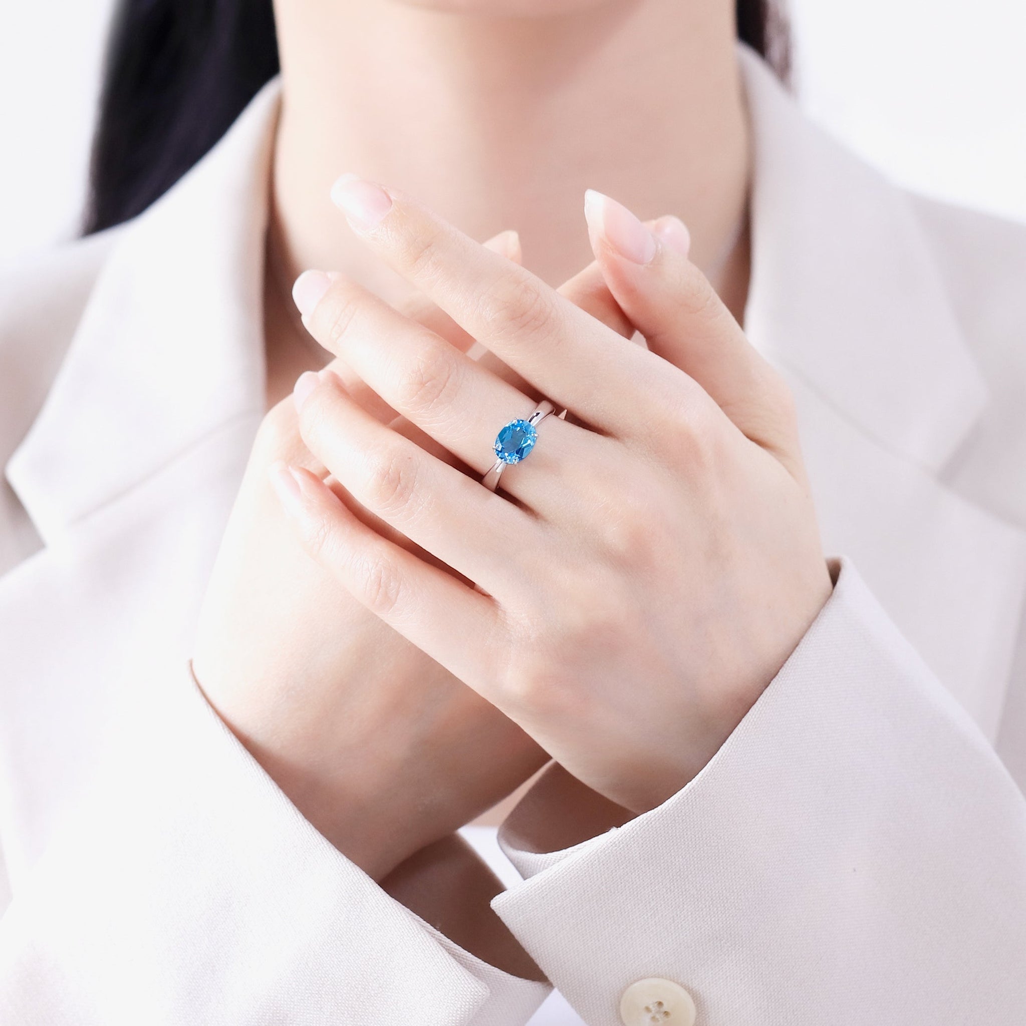 澄んだブルーが指先に輝きを添える、ブルートパーズのリング。